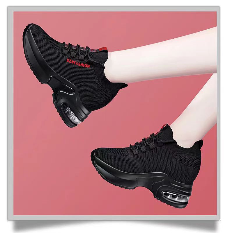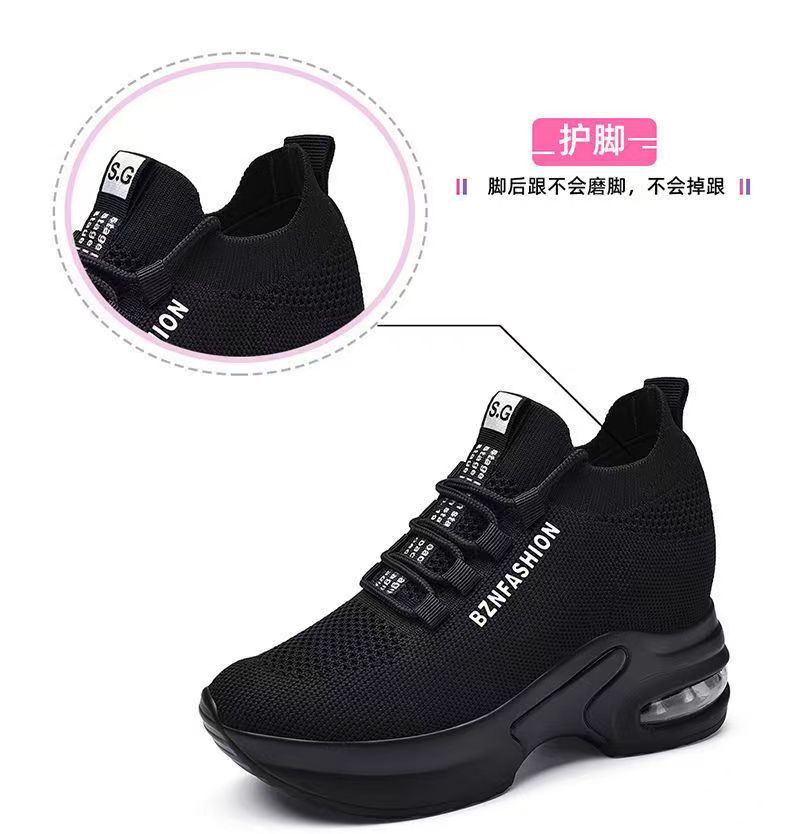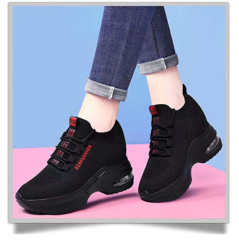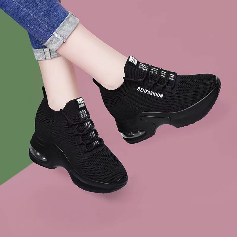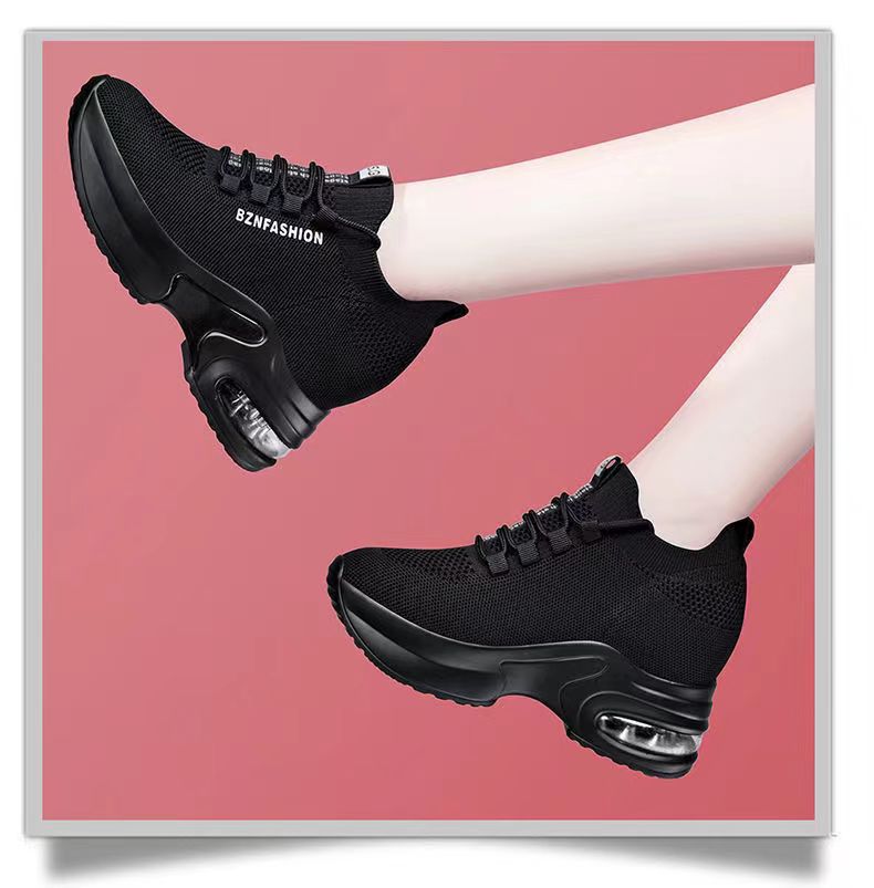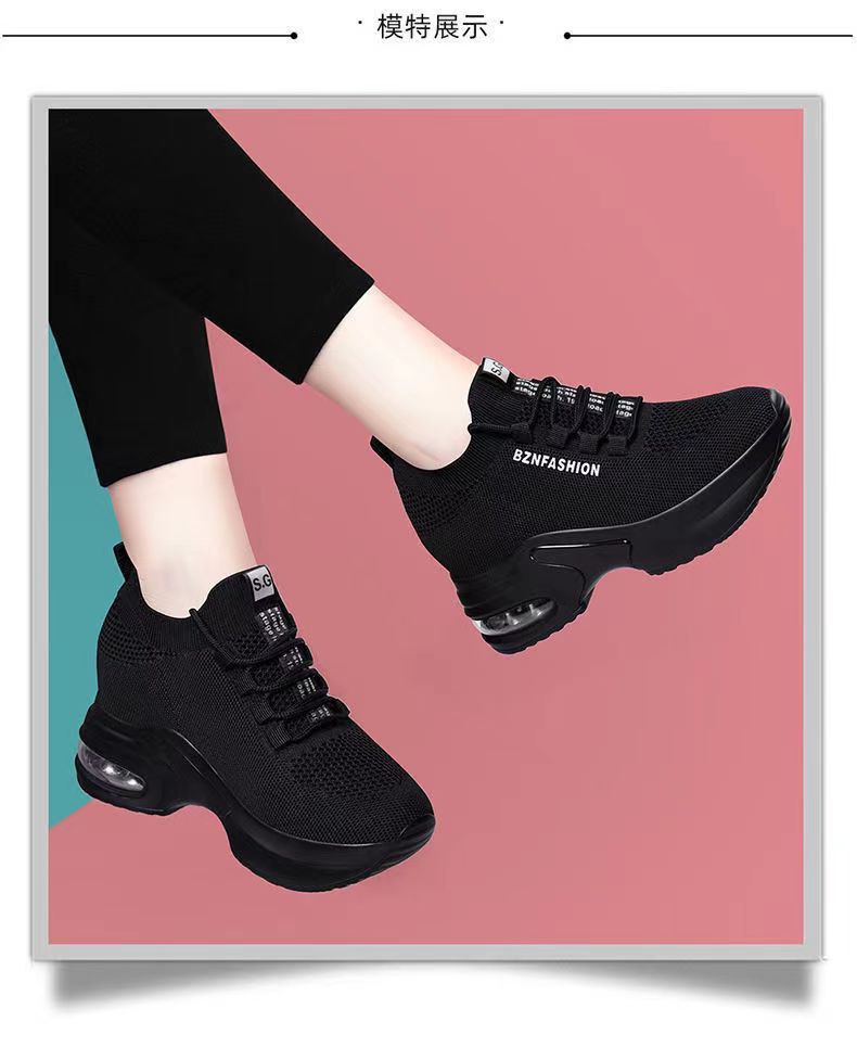 숨겨진 높이 증가 여성 신발 에어 쿠션 두꺼운 바닥 비행 짠 메쉬 표면 통기성 스트레치 스포츠 캐주얼 신발 2024 봄 새로운 부드러운 바닥