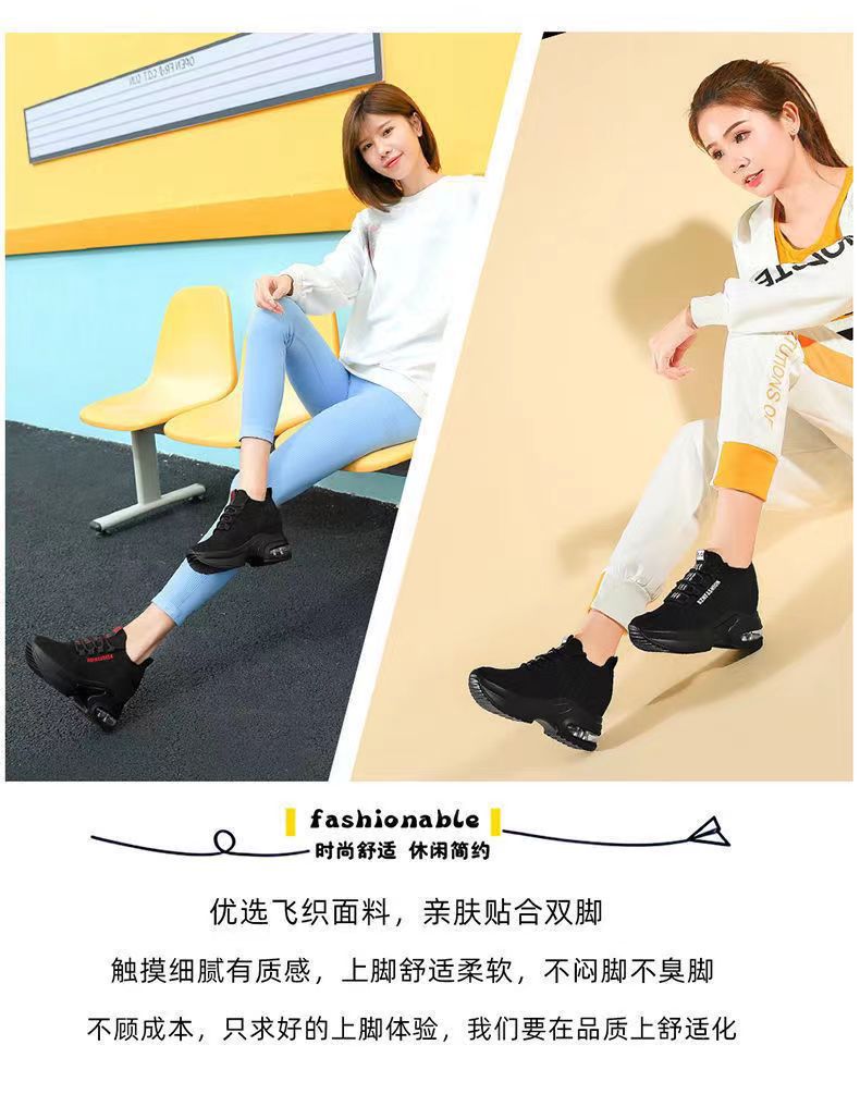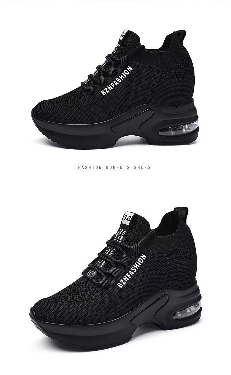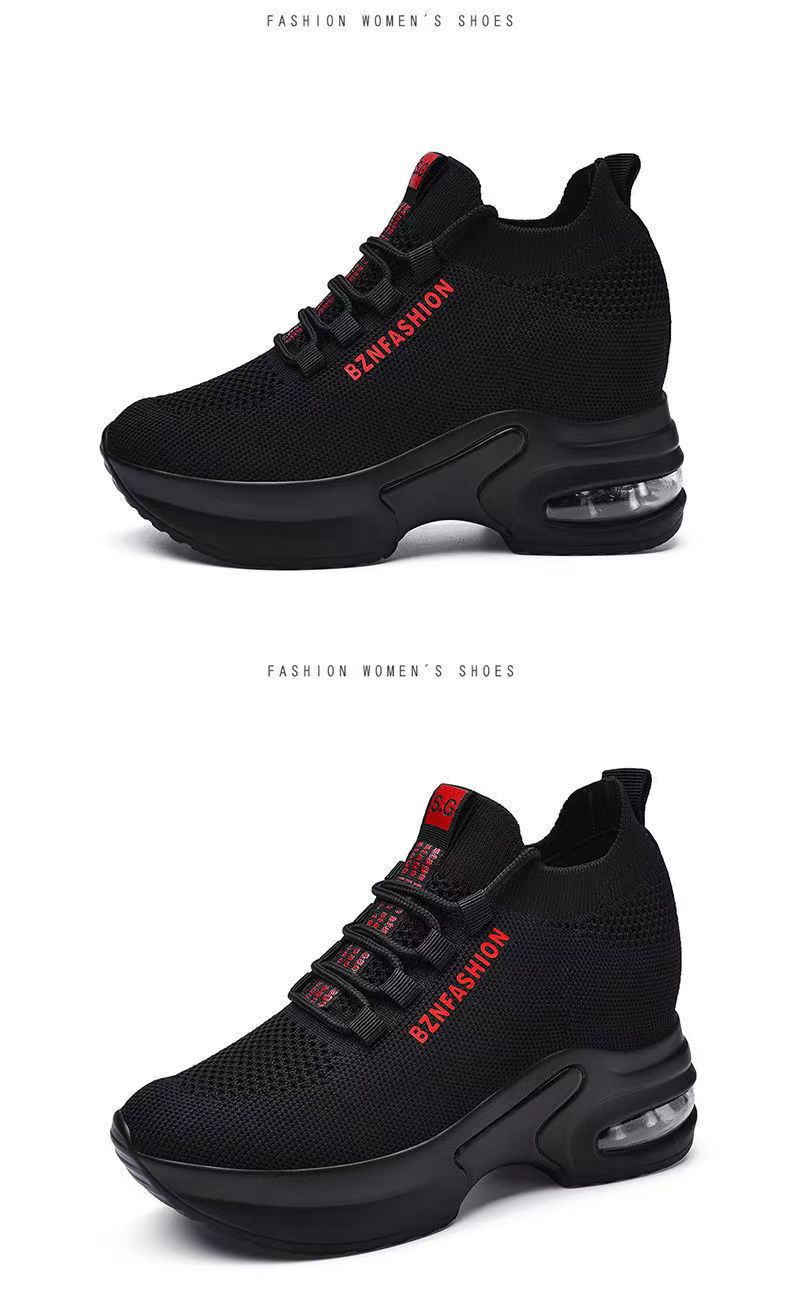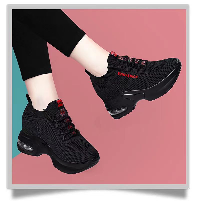 숨겨진 높이 증가 여성 신발 에어 쿠션 두꺼운 바닥 비행 짠 메쉬 표면 통기성 스트레치 스포츠 캐주얼 신발 2024 봄 새로운 부드러운 바닥