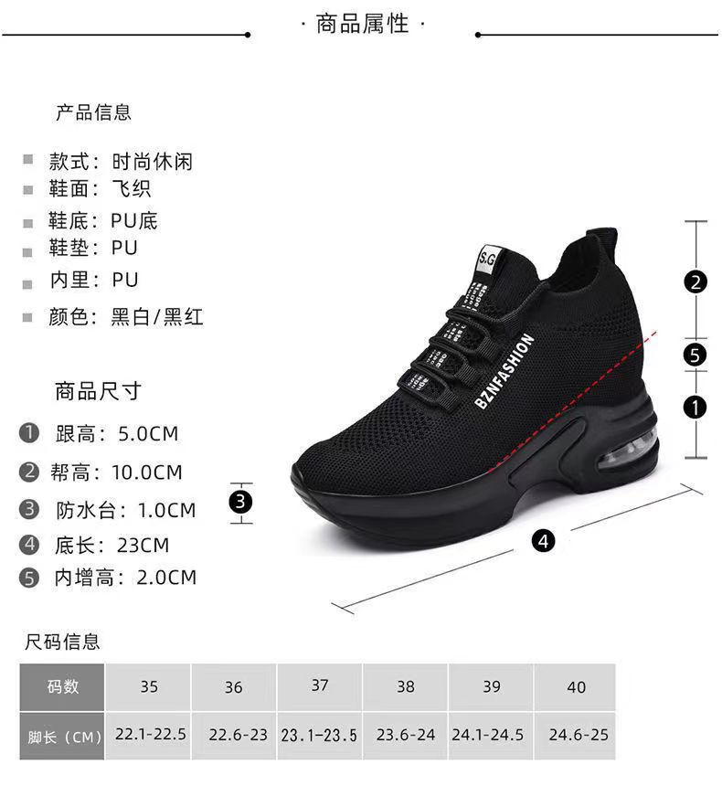숨겨진 높이 증가 여성 신발 에어 쿠션 두꺼운 바닥 비행 짠 메쉬 표면 통기성 스트레치 스포츠 캐주얼 신발 2024 봄 새로운 부드러운 바닥스토어 가기