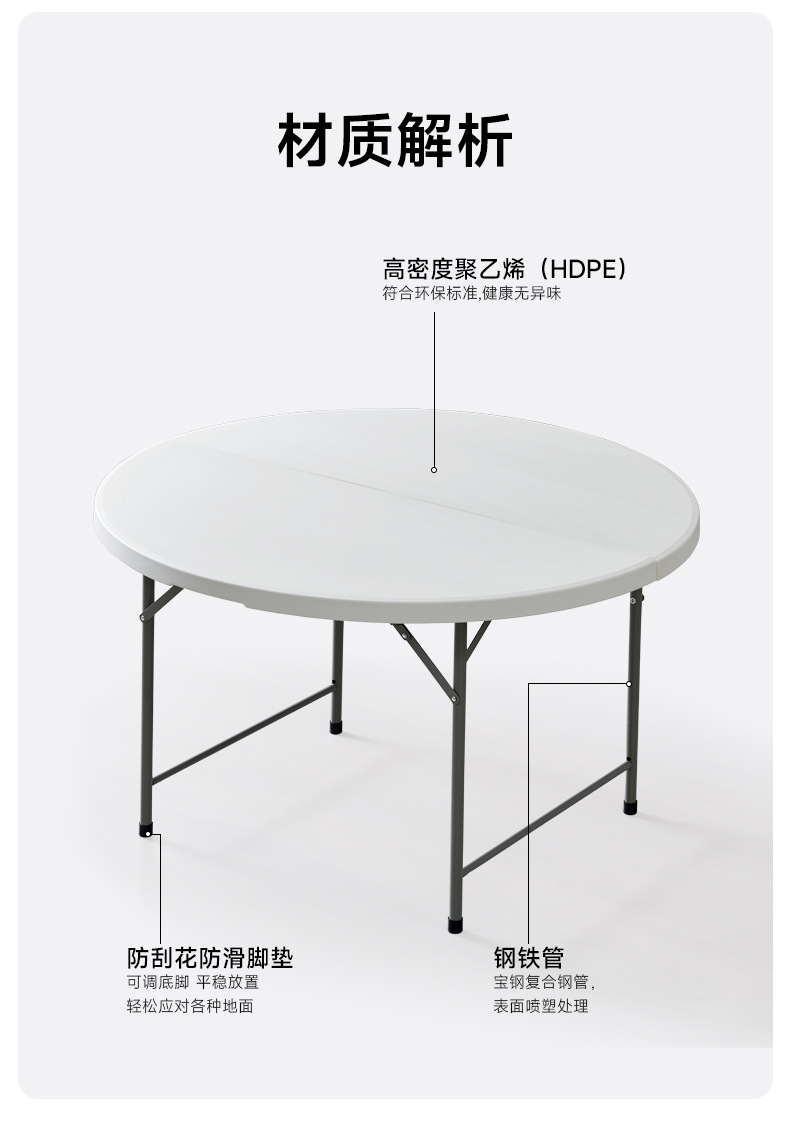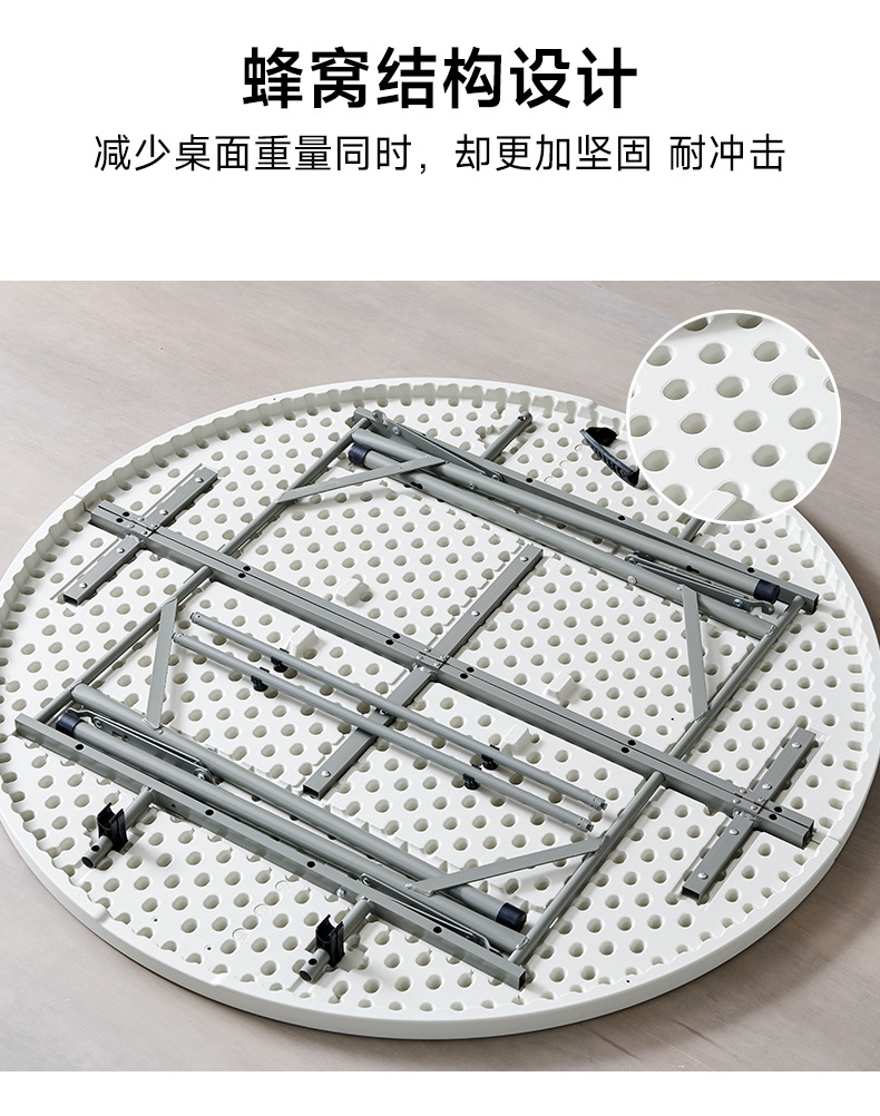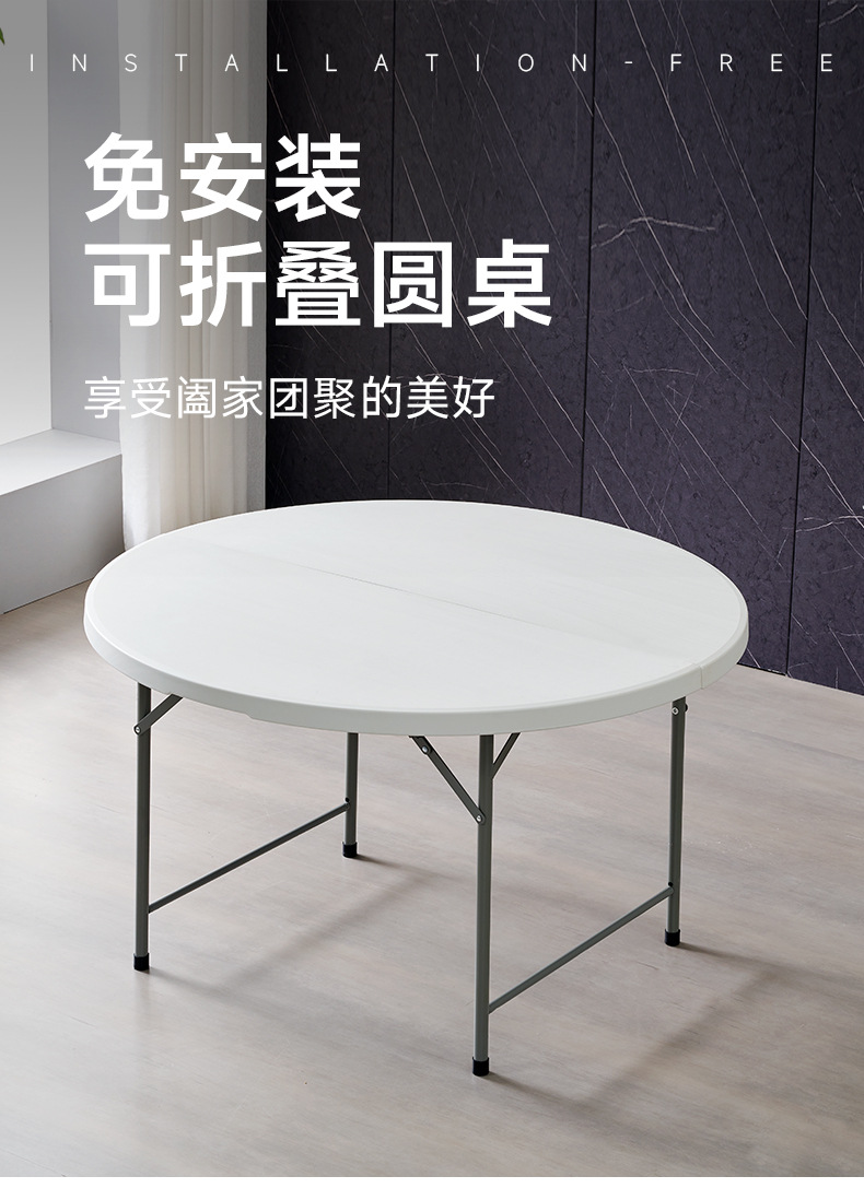 • 150CM 원형 테이블(테이블 상판은 반으로 접히지 않음)