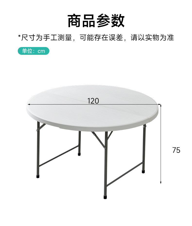 • 120CM 원형 테이블(테이블 상판은 반으로 접히지 않음)