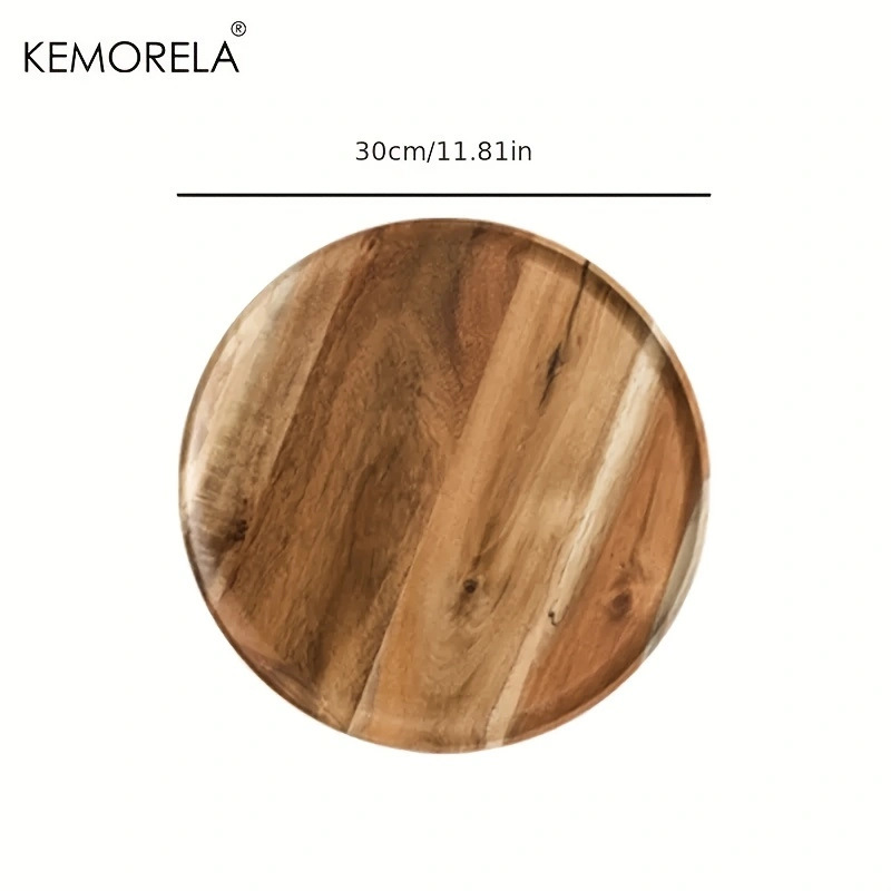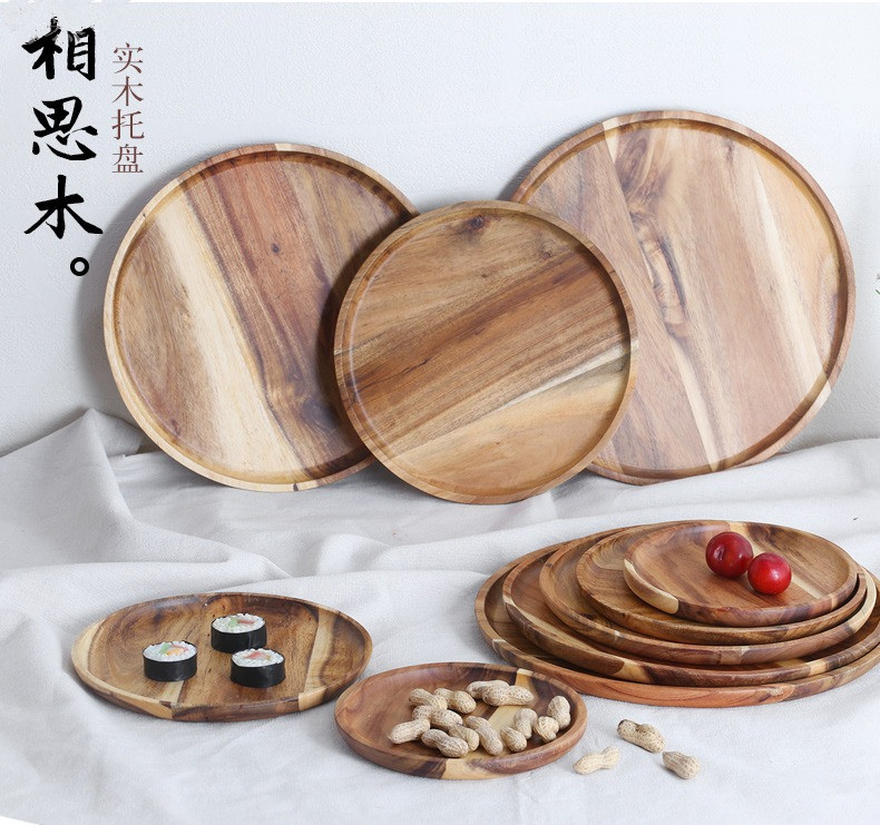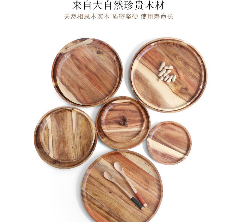 크로스보더 아카시아 나무 접시, 원형 차 접시, 나무 식사 접시, 서빙 접시, 스낵 접시, 빵/건과일/과일 접시, 기성품 식기류스토어 가기