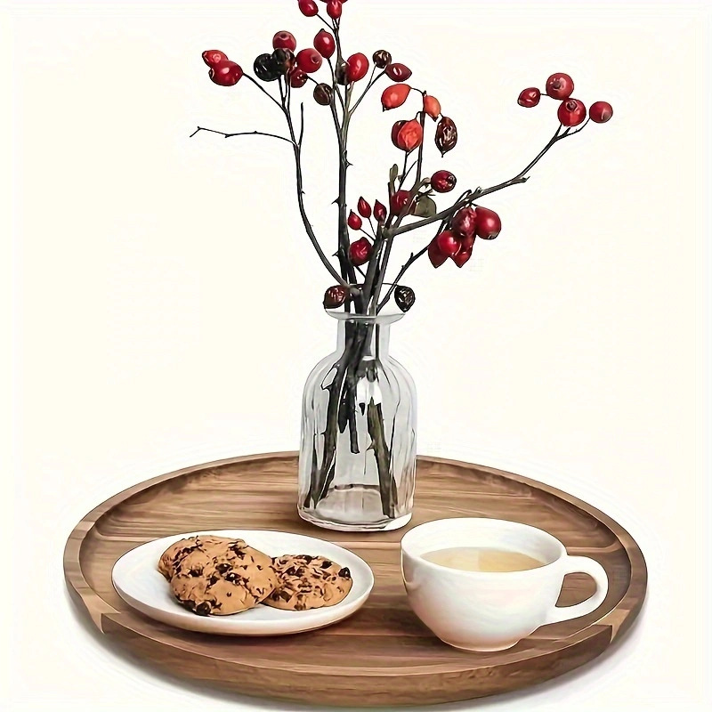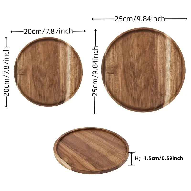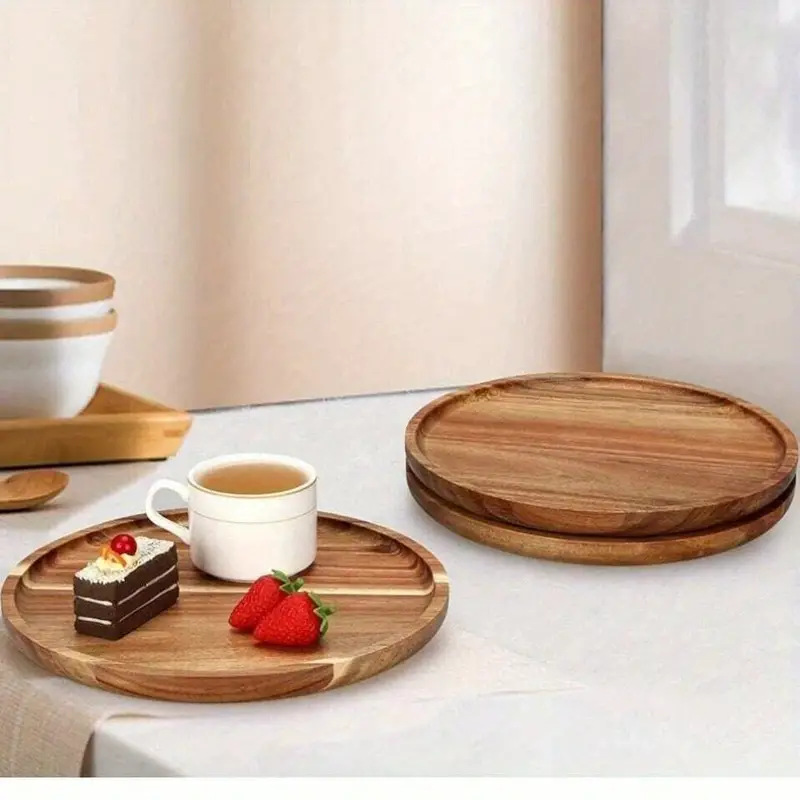 크로스보더 아카시아 나무 접시, 원형 차 접시, 나무 식사 접시, 서빙 접시, 스낵 접시, 빵/건과일/과일 접시, 기성품 식기류