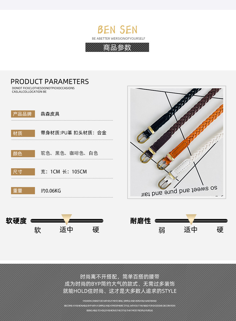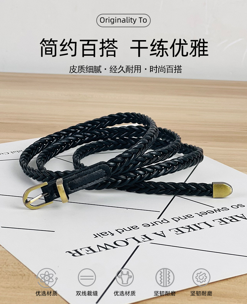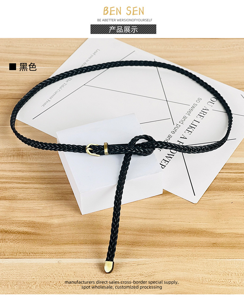 펀치 프리 짠 벨트 여성용 핀 버클 레트로 캐주얼 올 매치 얇은 벨트 여성용 허리 로프 장식 원피스 도매스토어 가기