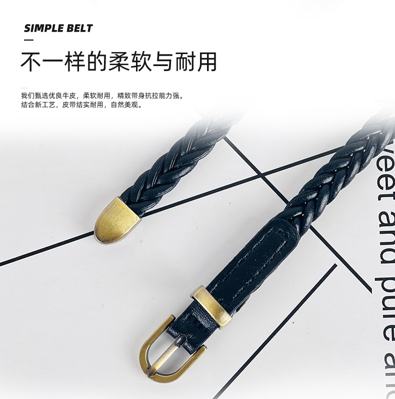펀치 프리 짠 벨트 여성용 핀 버클 레트로 캐주얼 올 매치 얇은 벨트 여성용 허리 로프 장식 원피스 도매