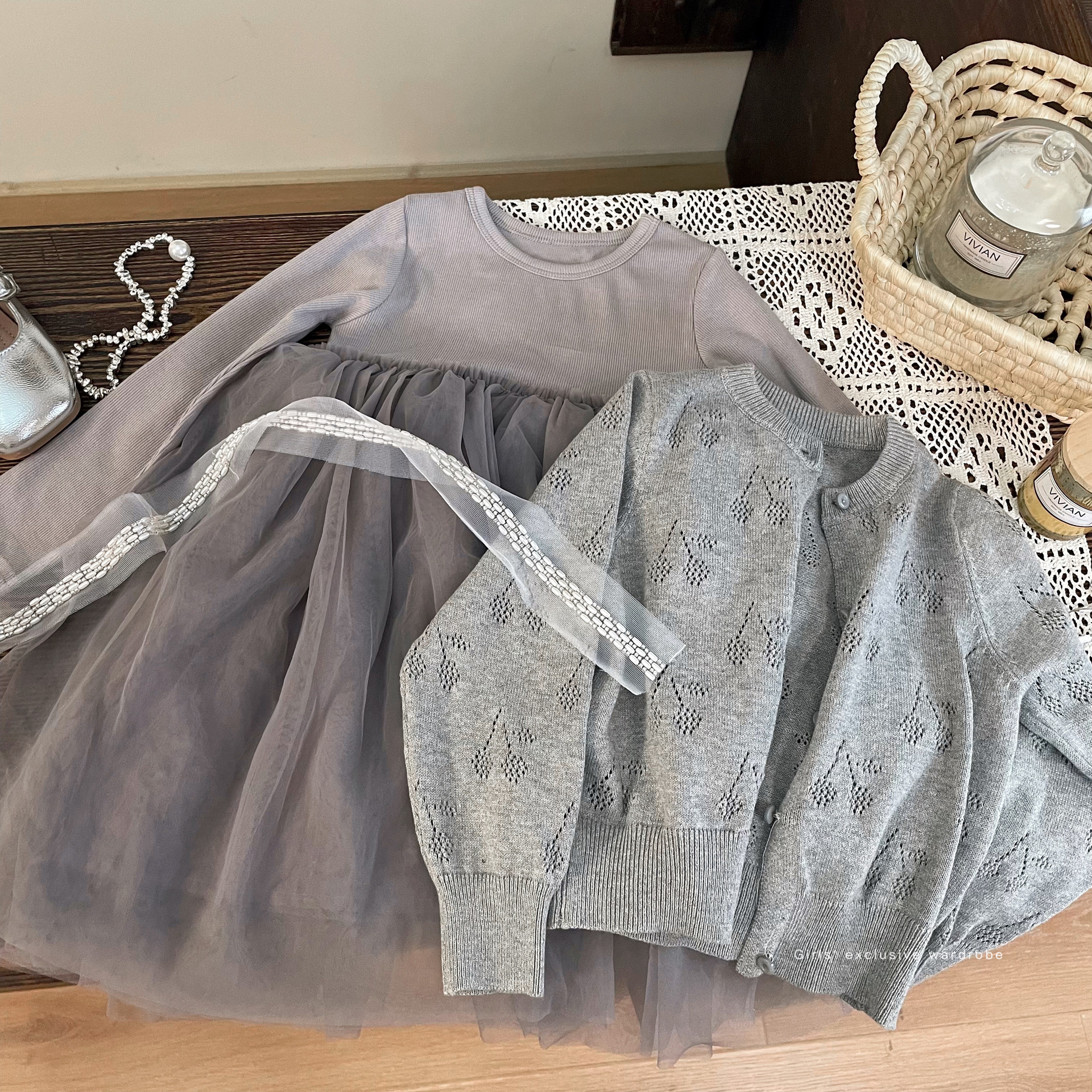 • 회색 카디건