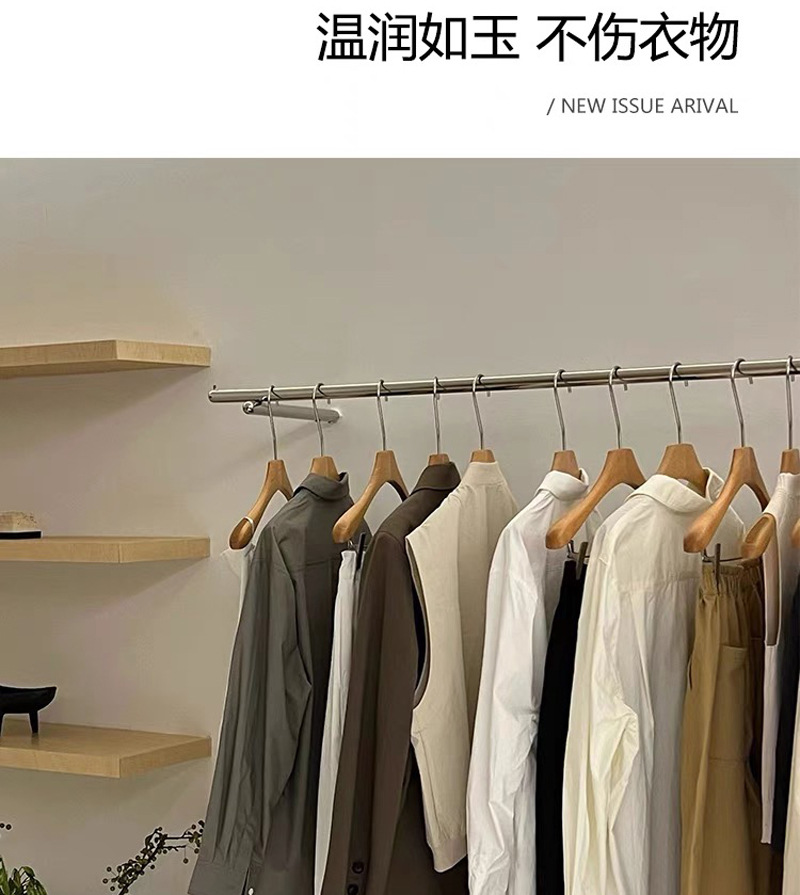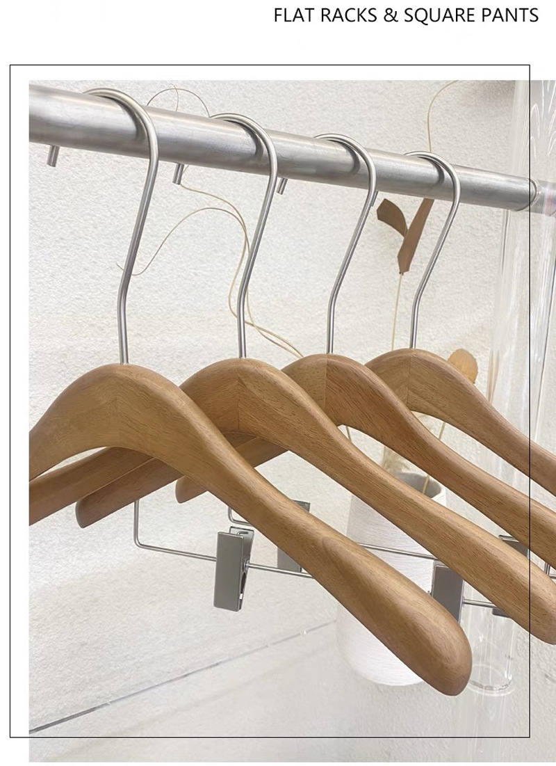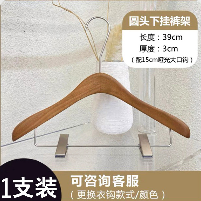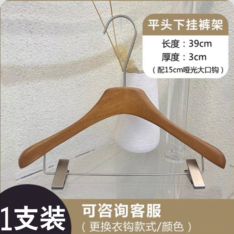 호두색 의류 매장 나무 옷걸이 레터링 인터넷 연예인 단단한 나무 미끄럼 방지 옷 지지대 여성용 올인원 바지 걸이 옷걸이스토어 가기