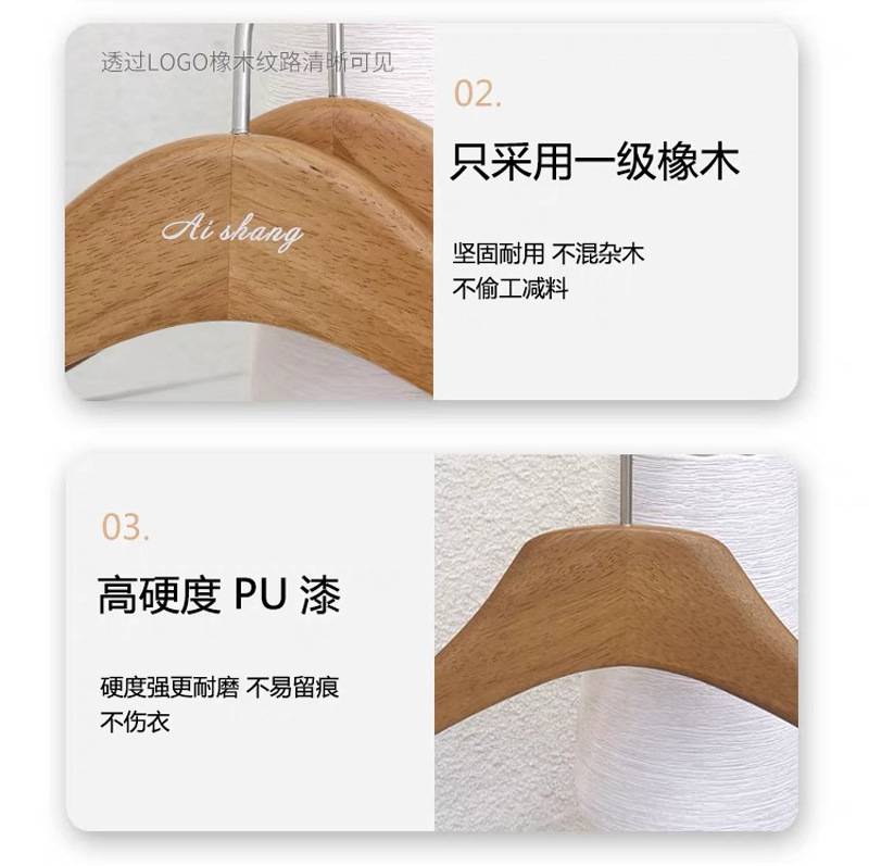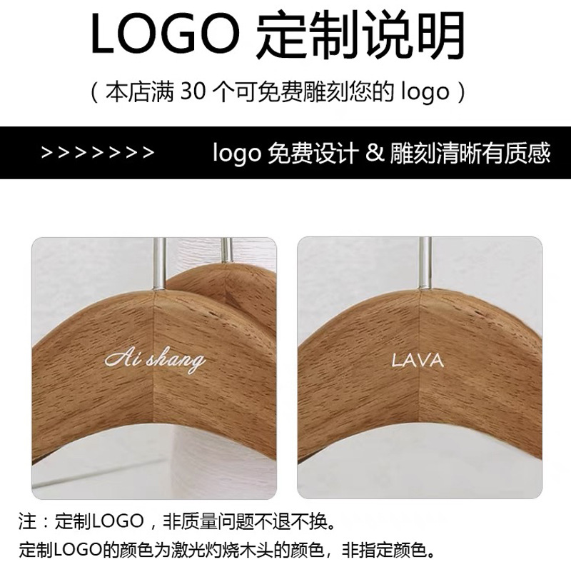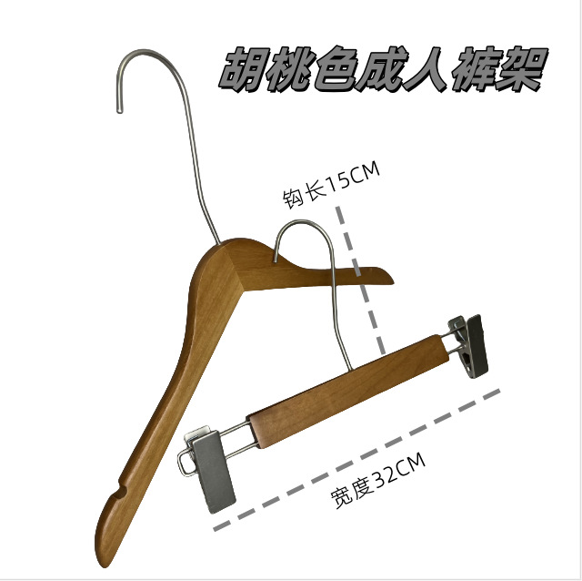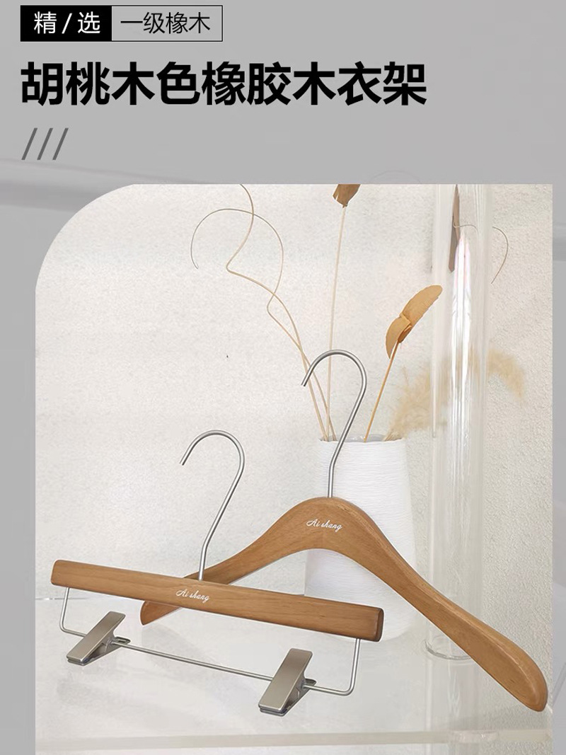 호두색 의류 매장 나무 옷걸이 레터링 인터넷 연예인 단단한 나무 미끄럼 방지 옷 지지대 여성용 올인원 바지 걸이 옷걸이