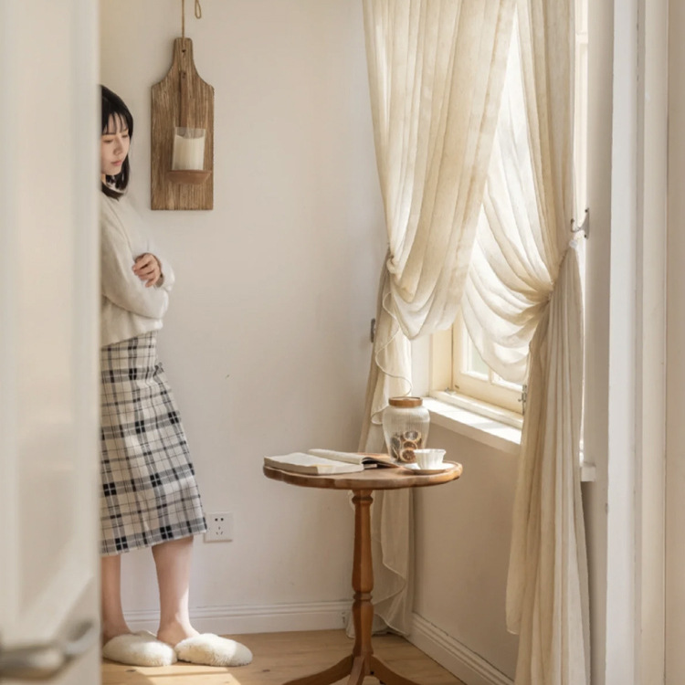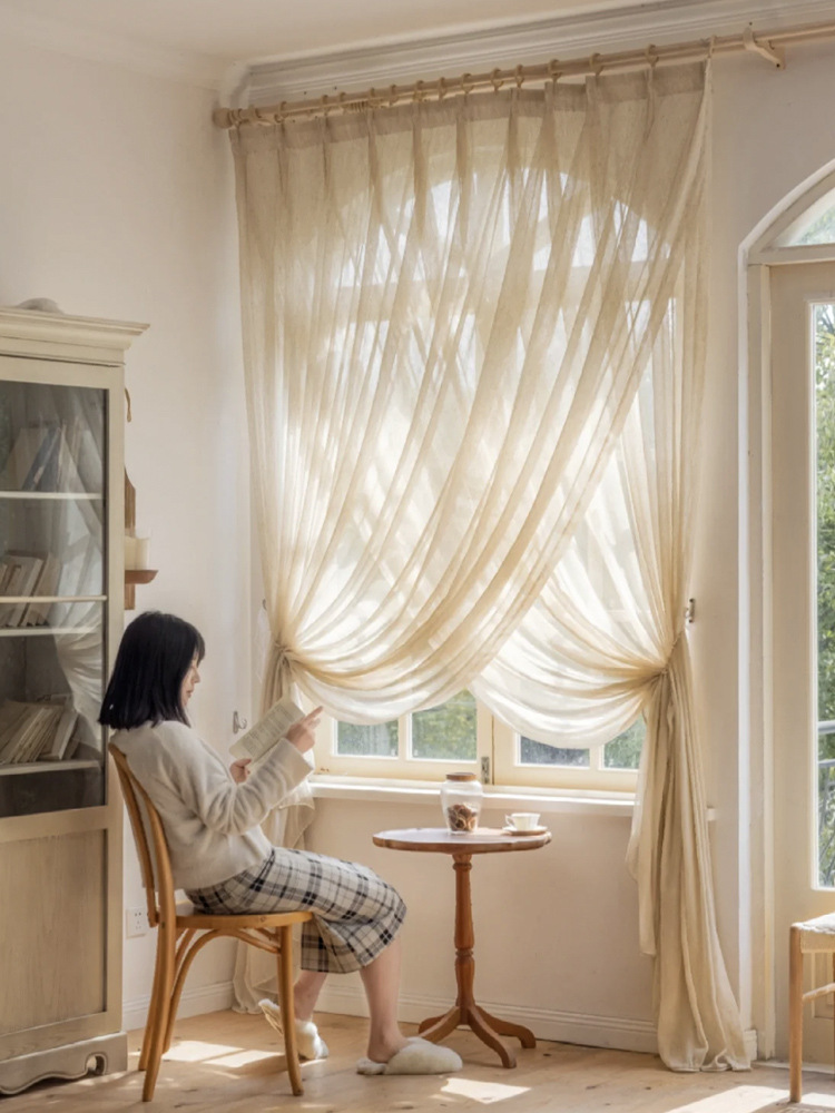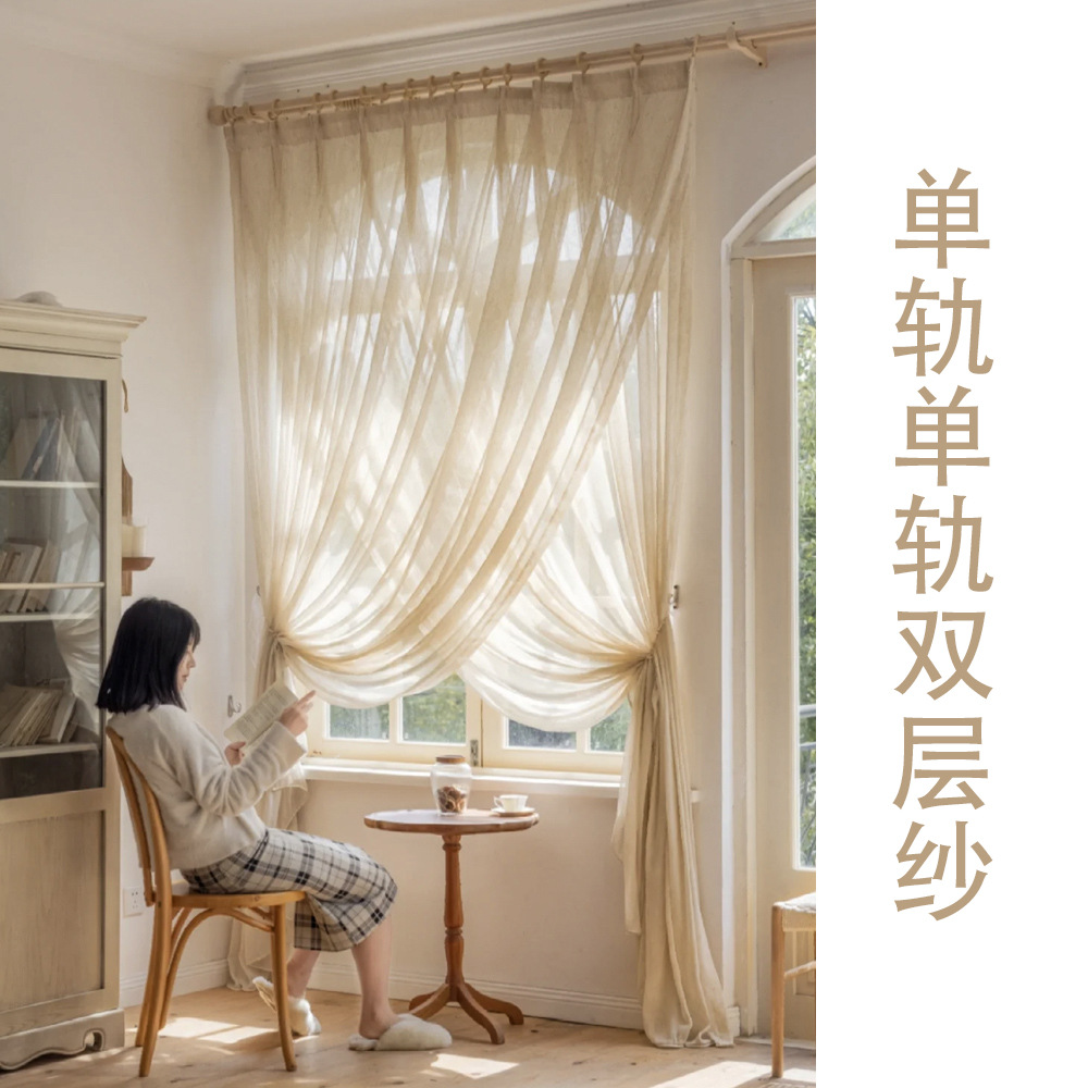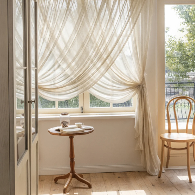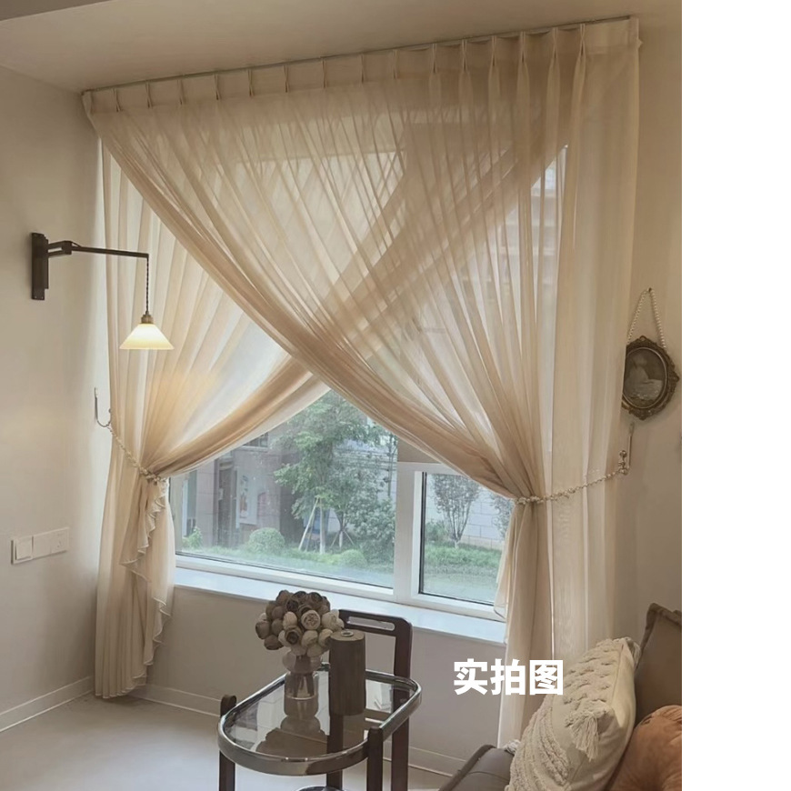 판타지 프랑스 복고풍 더블 레이어 크로스 크림 스타일 거즈 커튼 소녀 침실 연구 투명 흰색 거즈 커튼