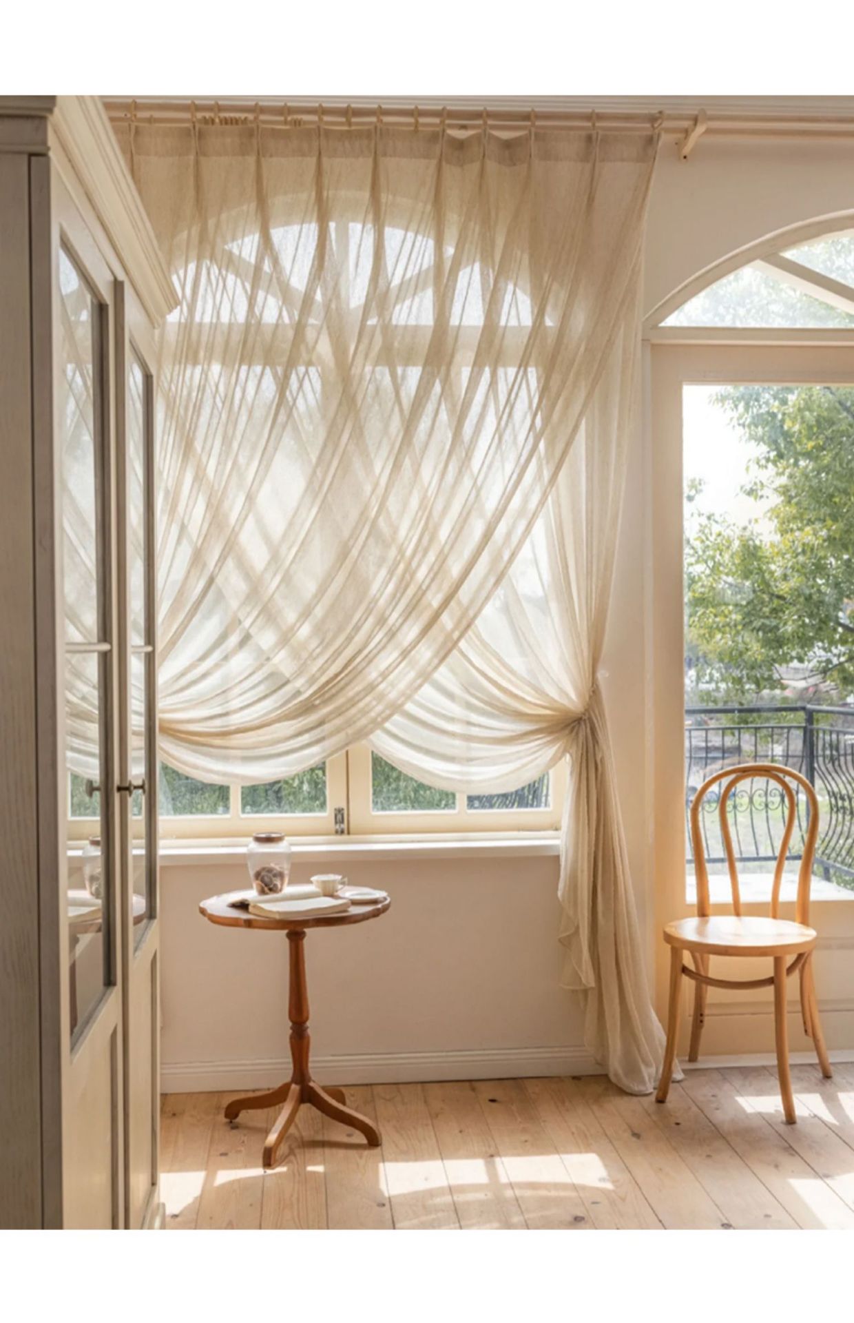 판타지 프랑스 복고풍 더블 레이어 크로스 크림 스타일 거즈 커튼 소녀 침실 연구 투명 흰색 거즈 커튼스토어 가기