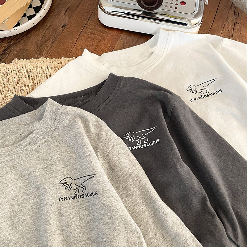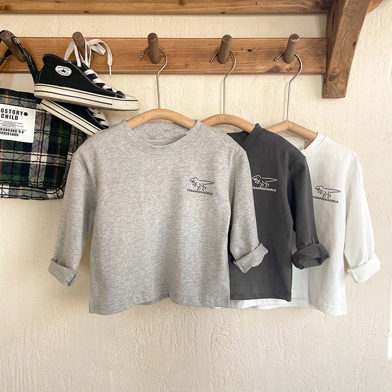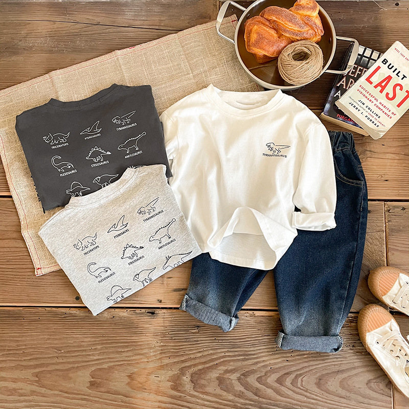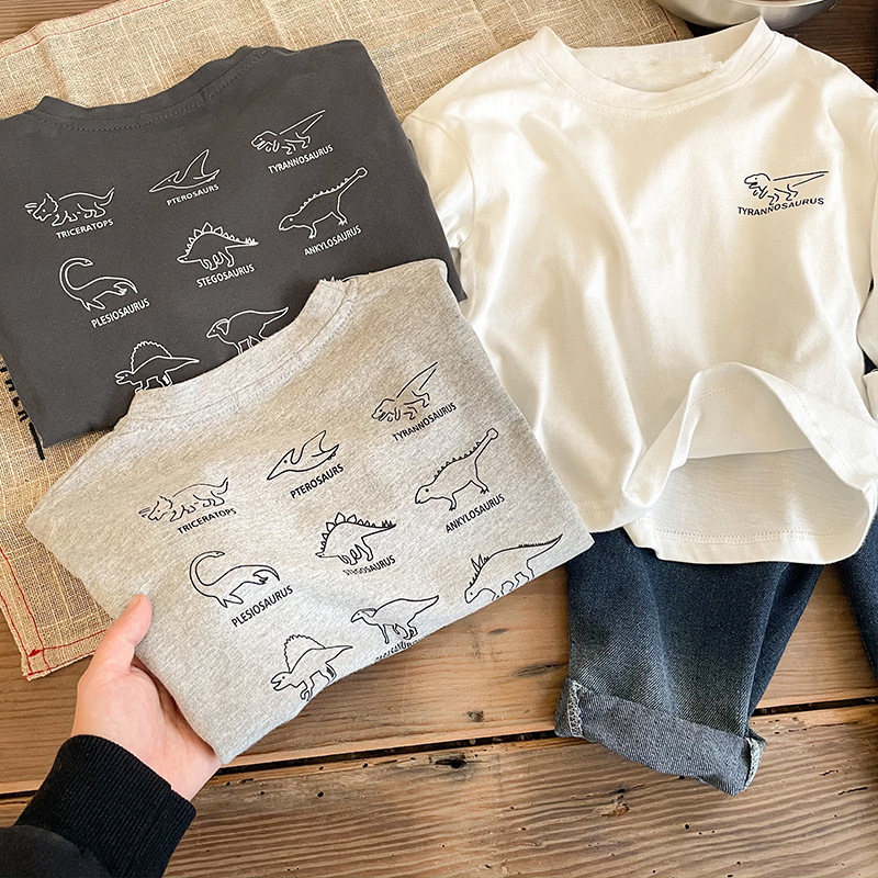 2025 봄 새로운 아동 의류 소년 공룡 긴팔 티셔츠 어린이 베이비 라운드 넥 순수 코튼 바닥 셔츠 탑 의류스토어 가기