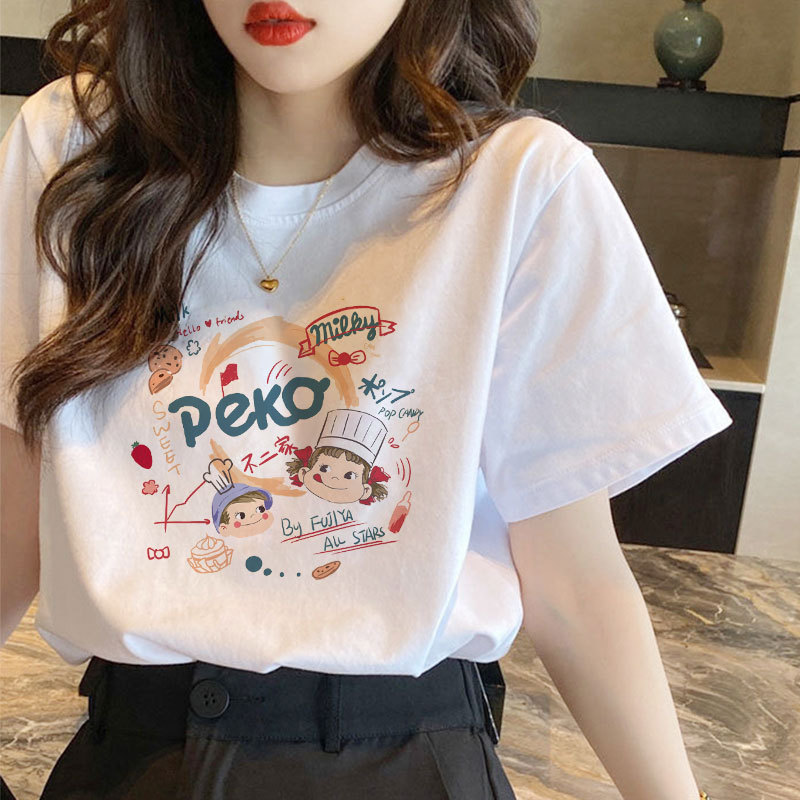 화이트 코튼 반팔 티셔츠 여성용 2024 년 새 여름 레트로 홍콩 스타일의 세련된 틈새 디자인 센스 숄더 탑스토어 가기