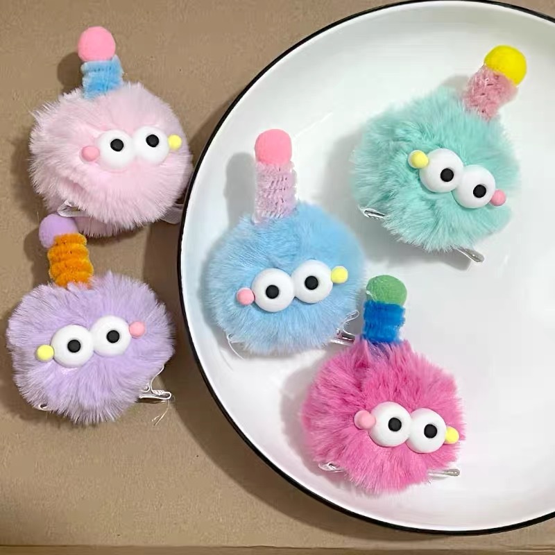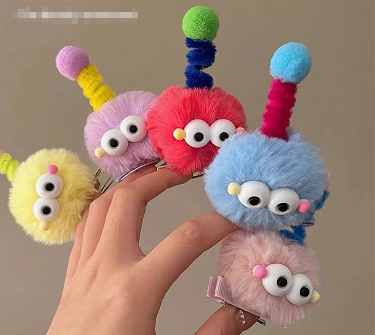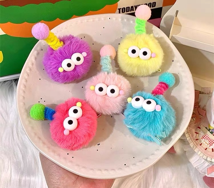 재고 귀여운 안테나 아기 미운 인형 헤어핀 석탄 볼 트위스터 재미 소녀 못생긴 귀여운 헤드웨어스토어 가기