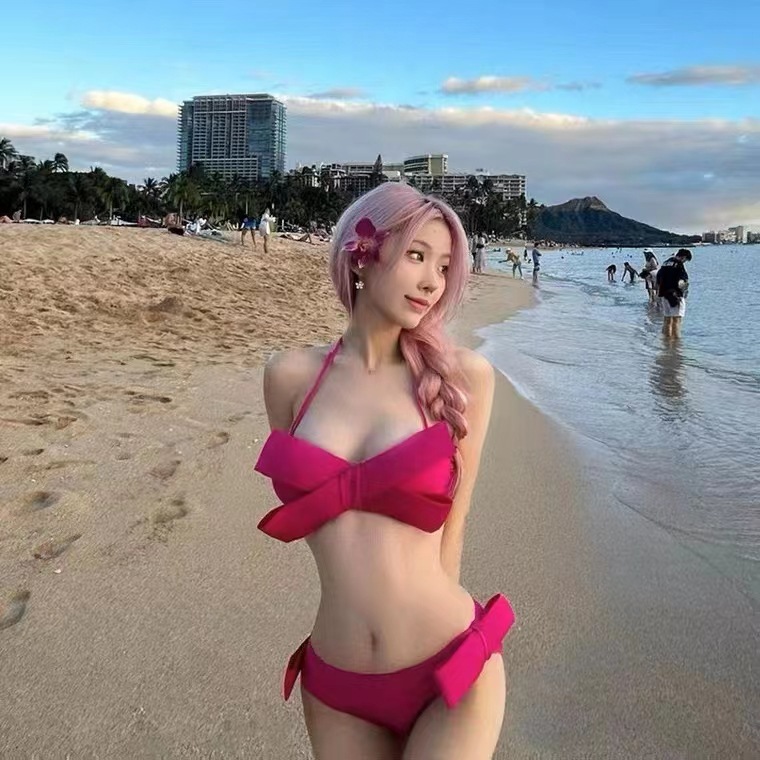 핑크 ~ 순수한 욕망 바람 핑크 흰색 3 차원 큰 활 수영복 여성 스파이스 소녀 작은 가슴 강철 브래킷 수집 비키니스토어 가기