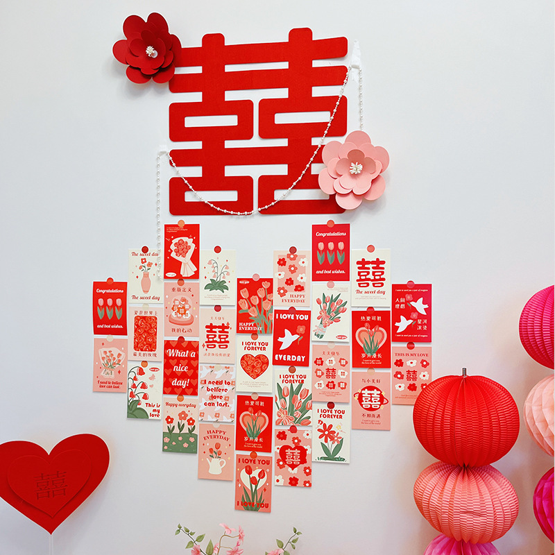 결혼식 레이아웃 세트 Xi 단어 엽서 웨딩 카드 남자 새 집 거실 침실 화환 배경 벽 장식스토어 가기