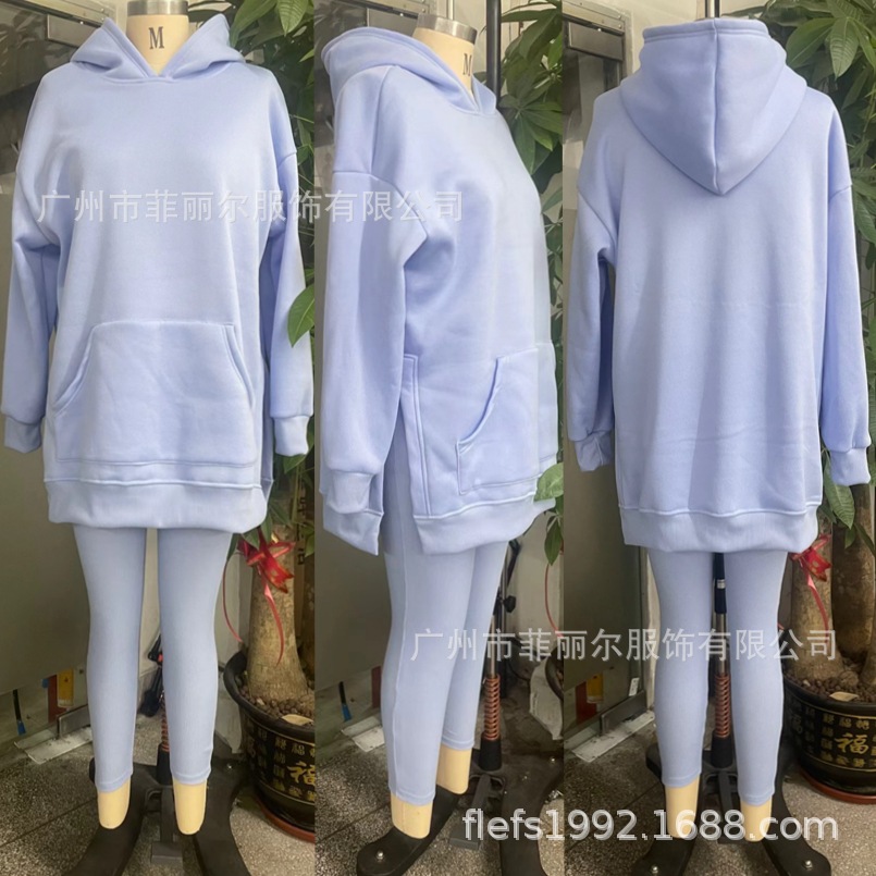 국경 간 여성 의류 2024 아마존 유럽 및 미국 스포츠 레저 후드 스웨터 두꺼운 실 레깅스 투피스 세트스토어 가기