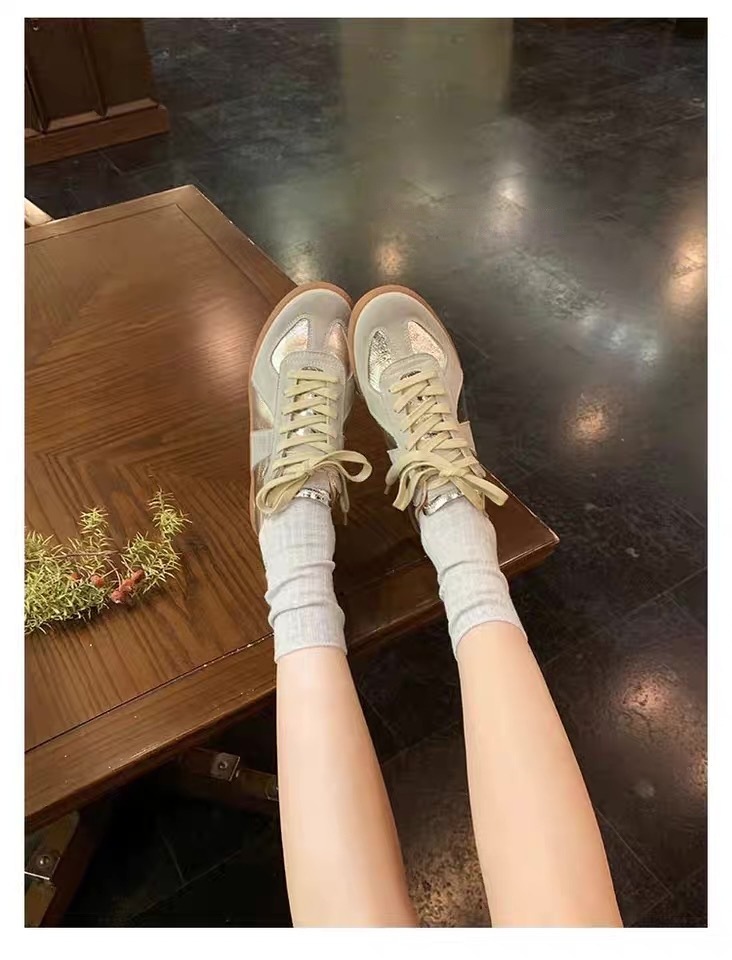 레트로 실버 데훈 슈즈 여성용 2025 신상 한국 스타일 천연 가죽 배색 캐주얼 운동화 다용도 플랫 슈즈 여성용스토어 가기