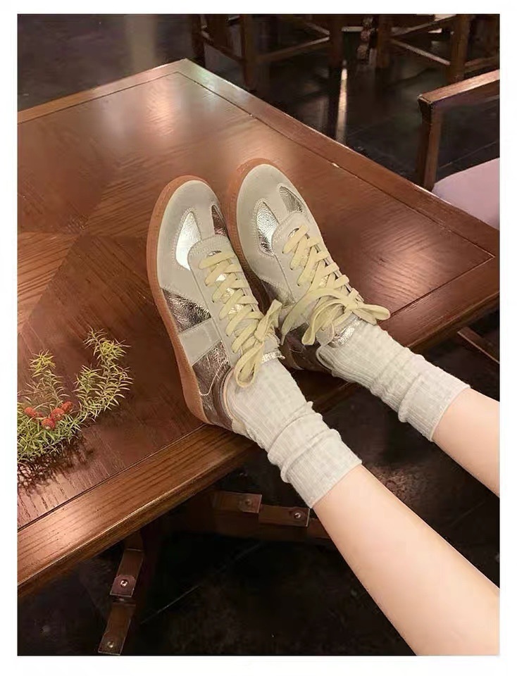 레트로 실버 데훈 슈즈 여성용 2025 신상 한국 스타일 천연 가죽 배색 캐주얼 운동화 다용도 플랫 슈즈 여성용