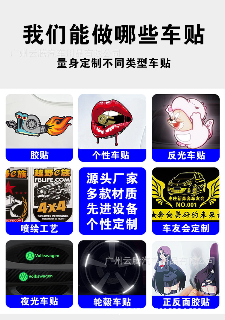 공장 자동차 스티커는 자동차 스티커 패턴 조각 컬러 잉크젯 반사 스티커 투명 스티커 광고 자동차 스티커를 만듭니다.