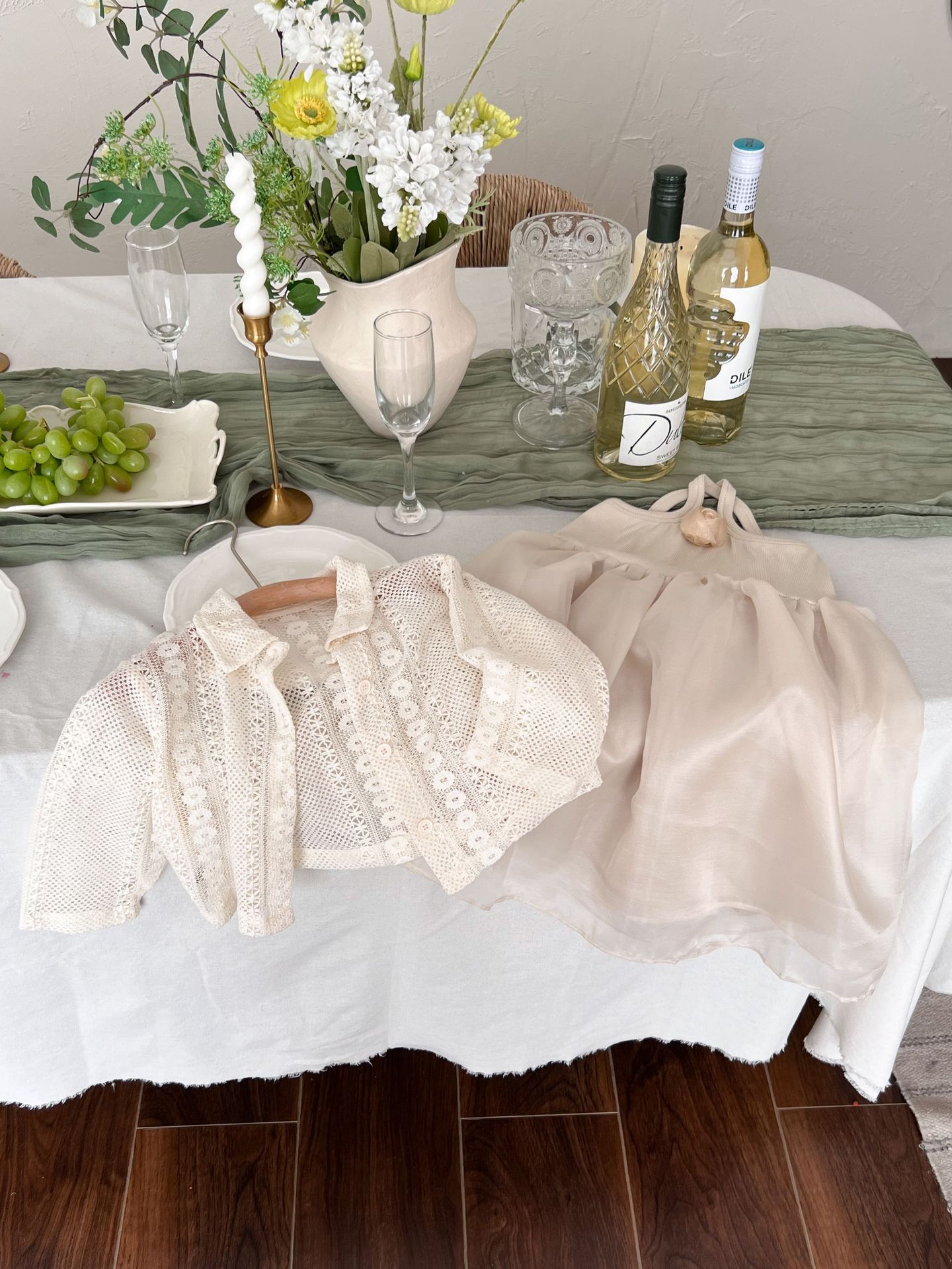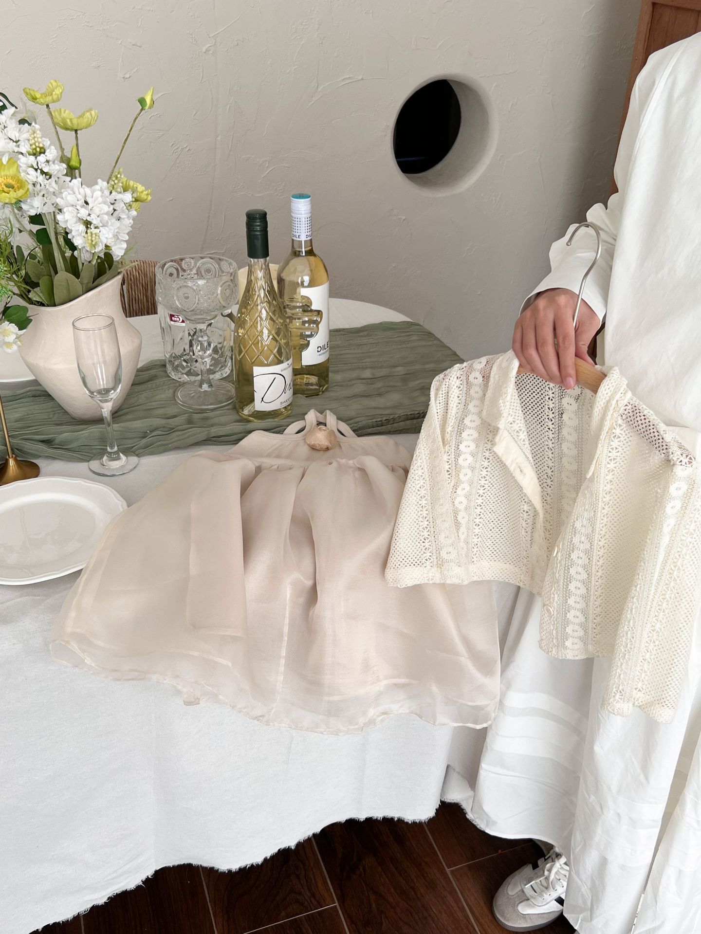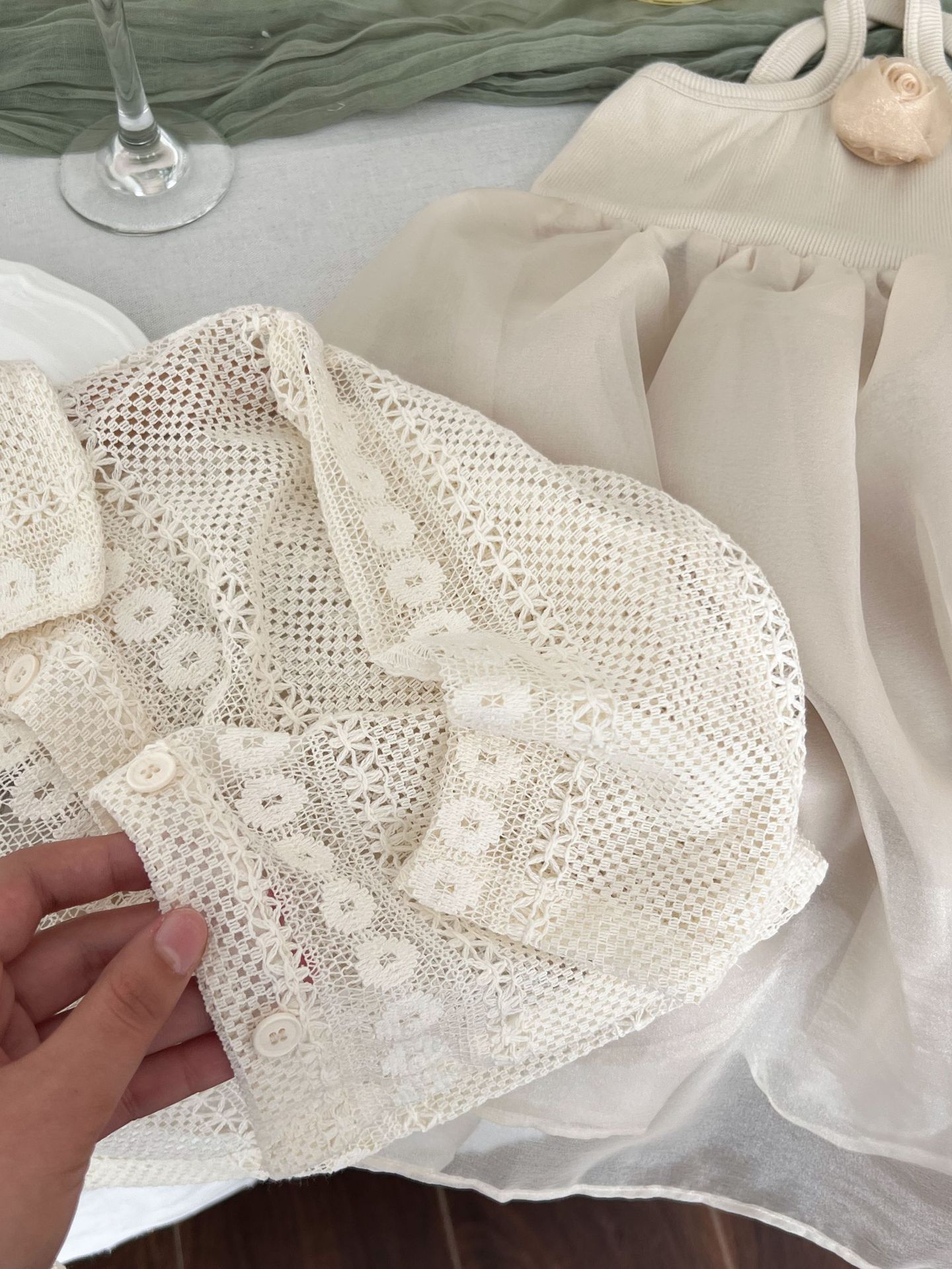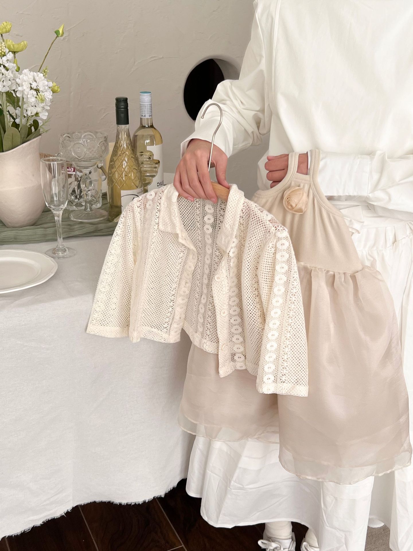 한국 스타일 소녀 세트 25 여름 새로운 레이스 태양 보호 의류 서양식 슬링 스커트 아기 소녀 여름 원피스