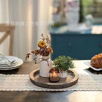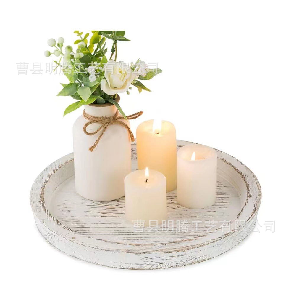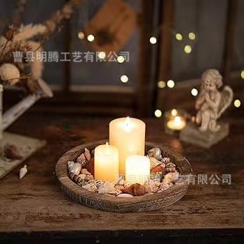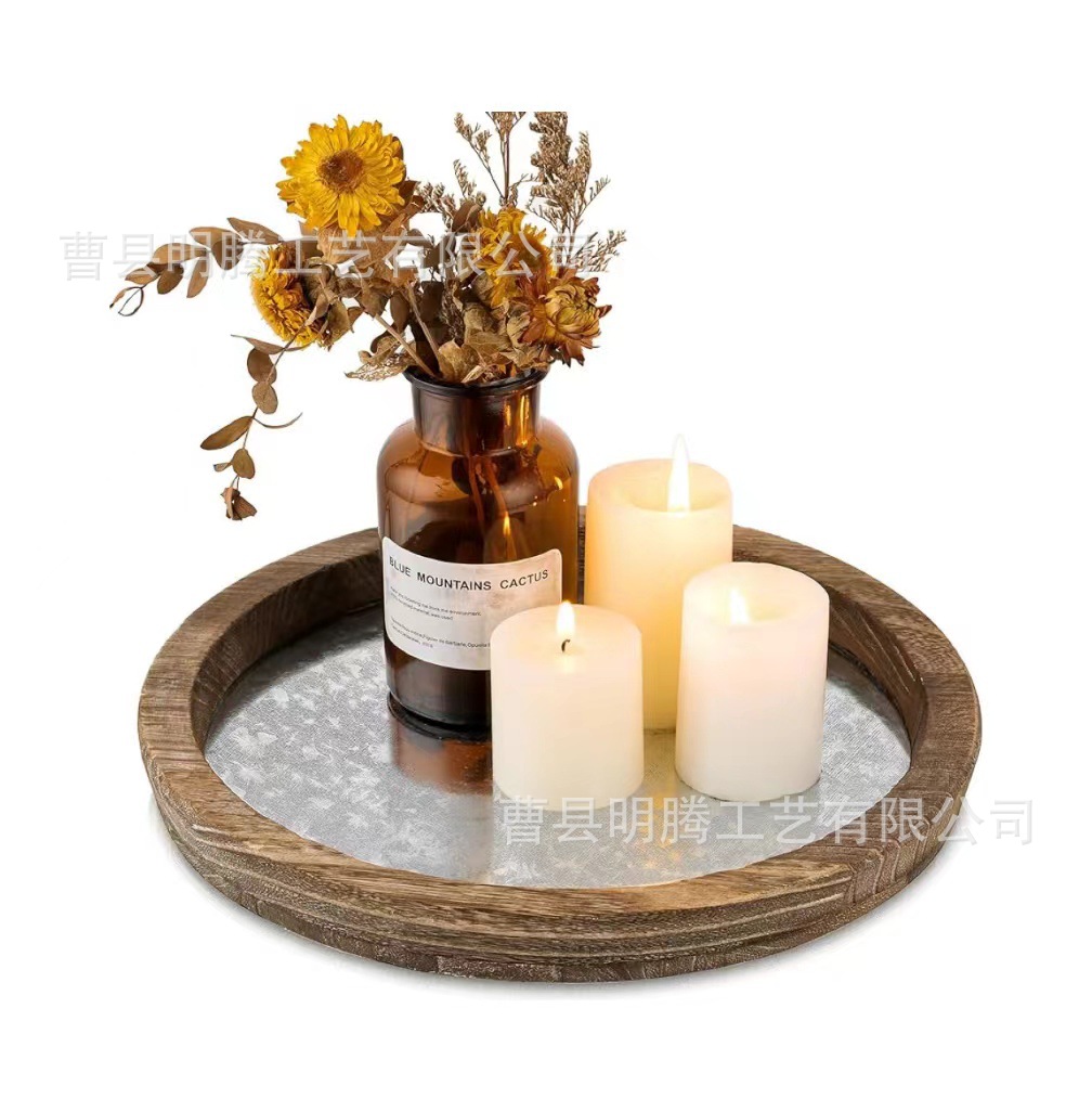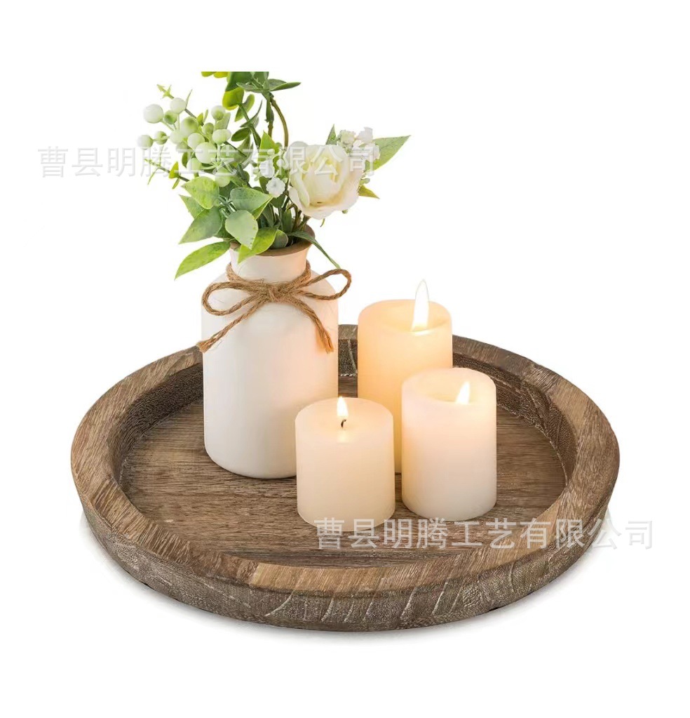 원목 장식 트레이 농가 스타일 빈티지 촛대 받침대 가정용 거실 목재 레트로 수납 트레이 원목 트레이