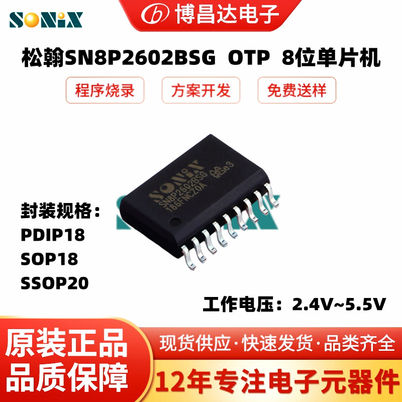원래 정품 송산 SN8P2602BSG SOP-18 2.4V ~ 5.5V 8 비트 MCU 단일 칩 마이크로 컴퓨터스토어 가기