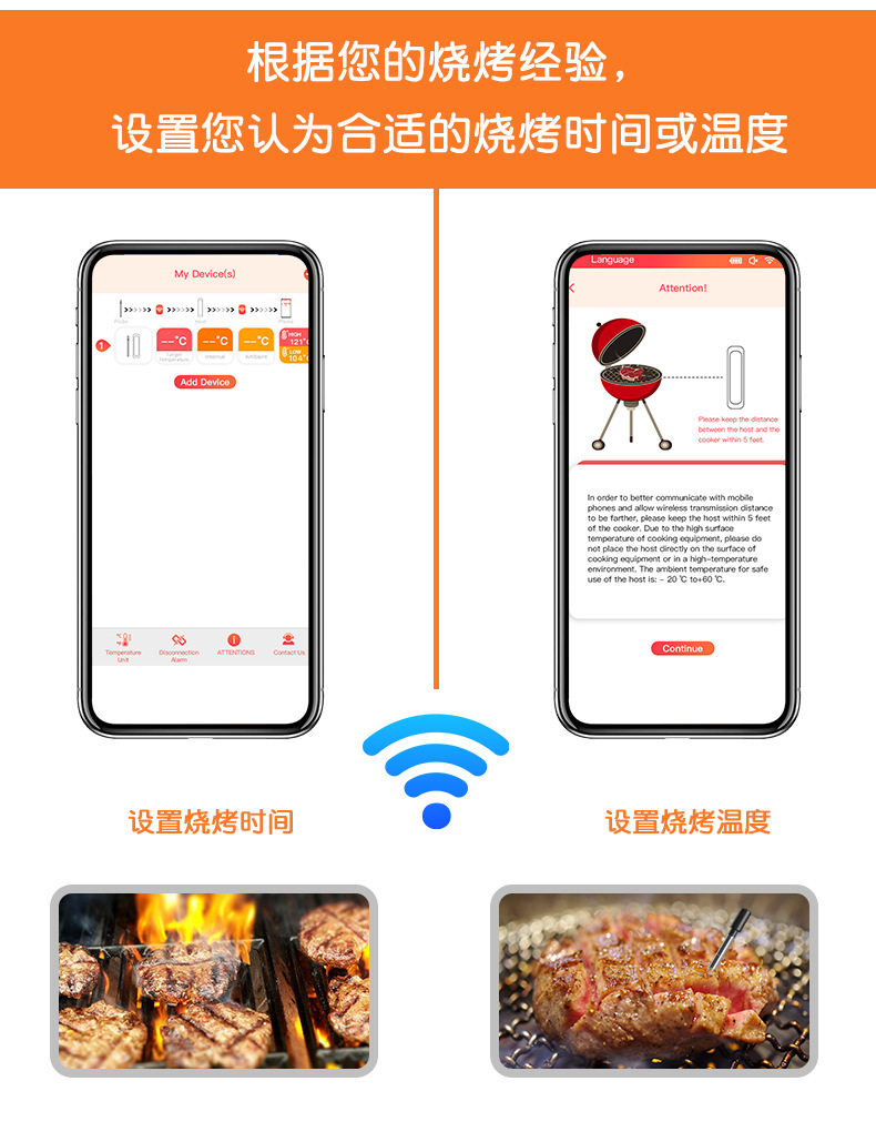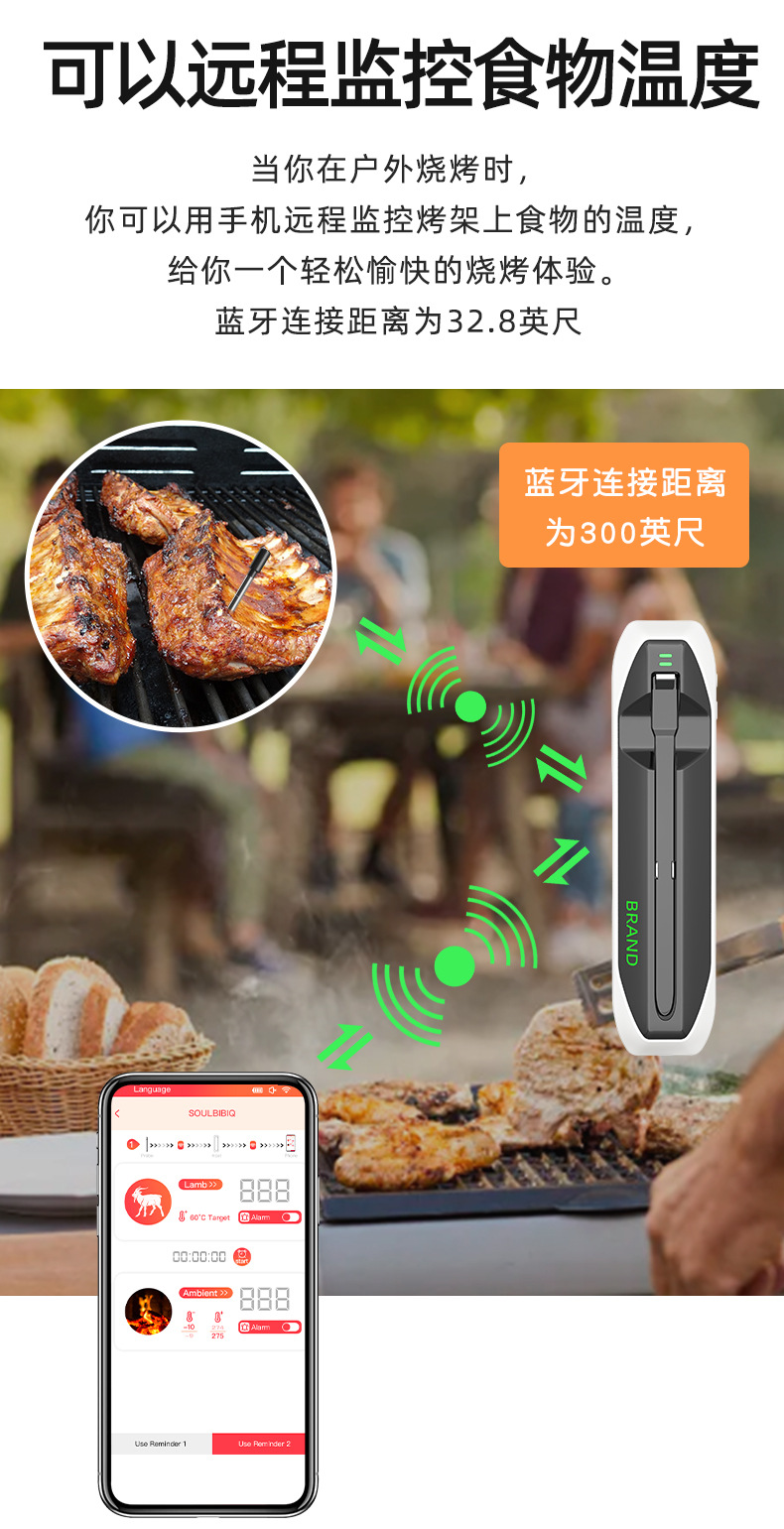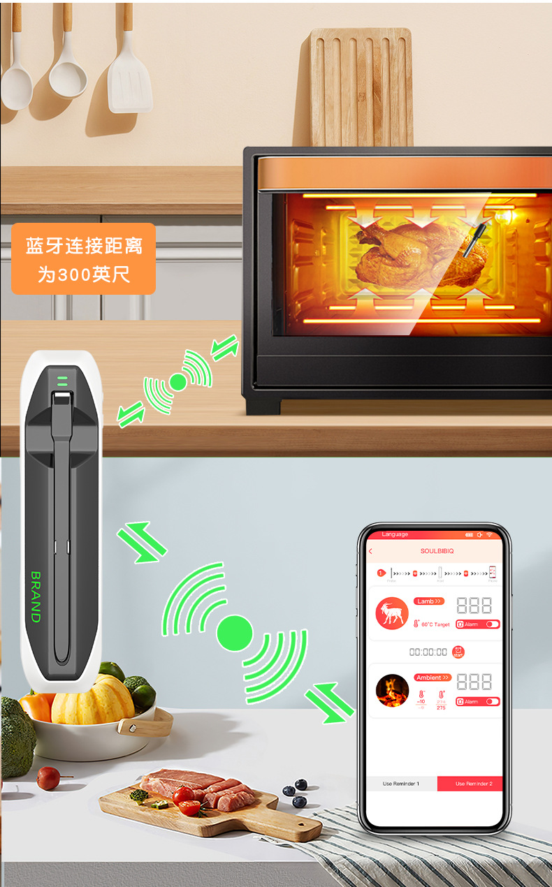 스마트 무선 BBQ 온도계 휴대 전화 APP 방수 BBQ 블루투스 고기 온도계 오븐 식품 온도계