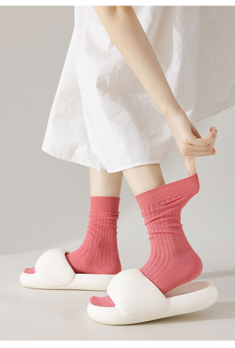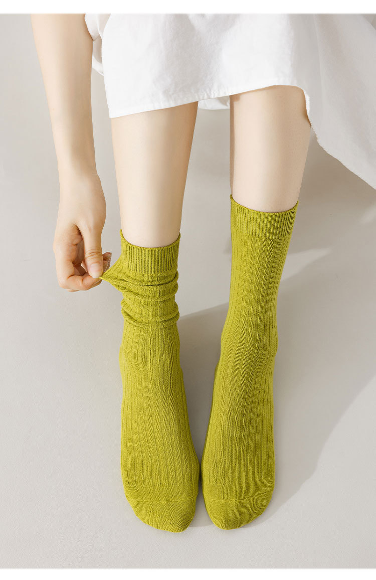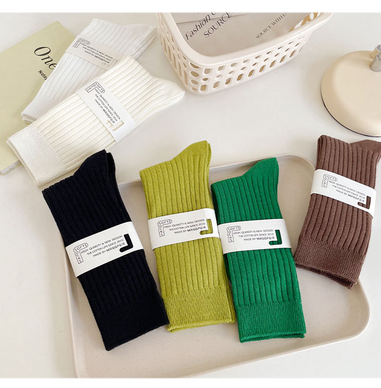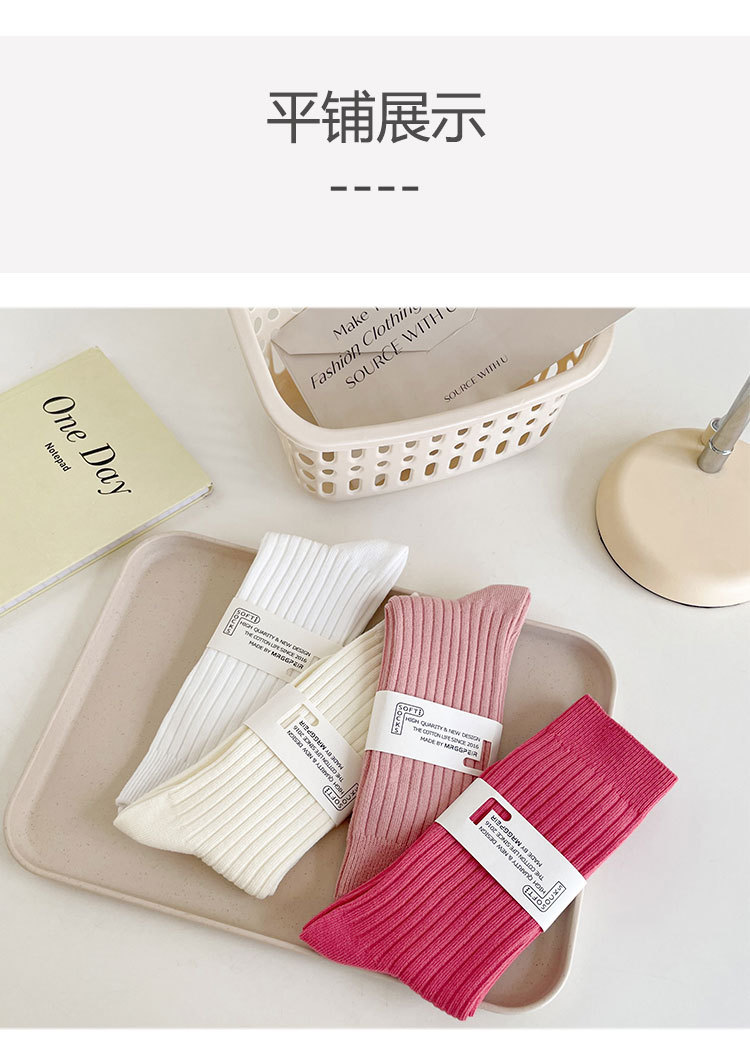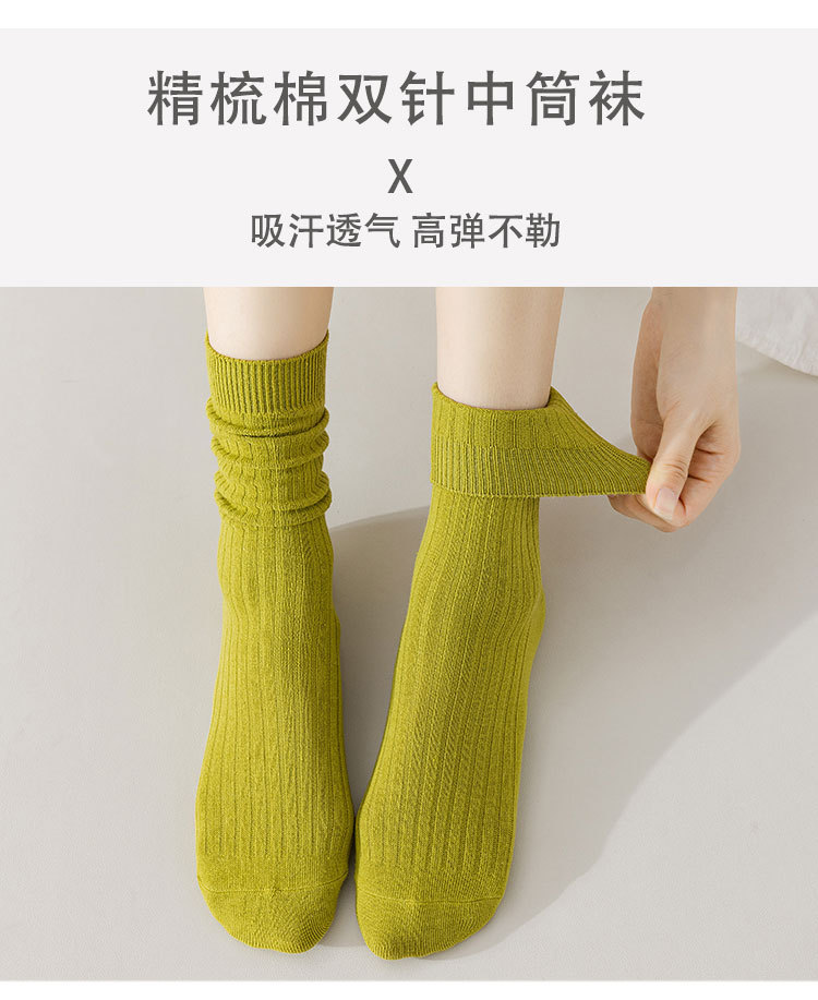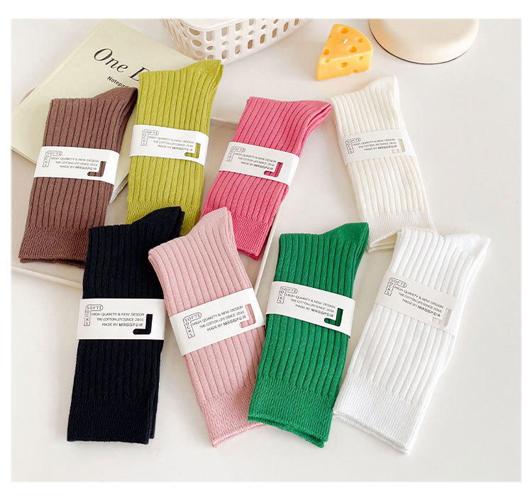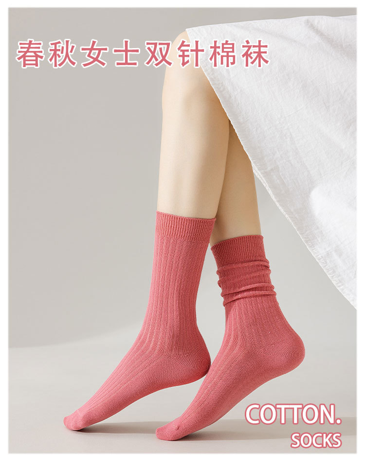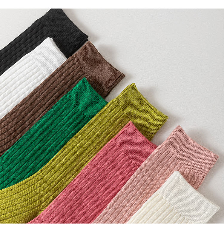 중간 튜브 양말 여성의 단색 면 양말 봄과 가을 여성 캔디 컬러 파일 양말 주지 여성 양말 더블 바늘 양말스토어 가기