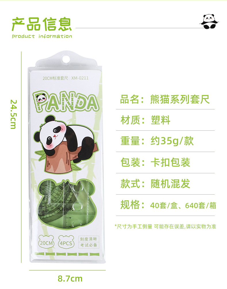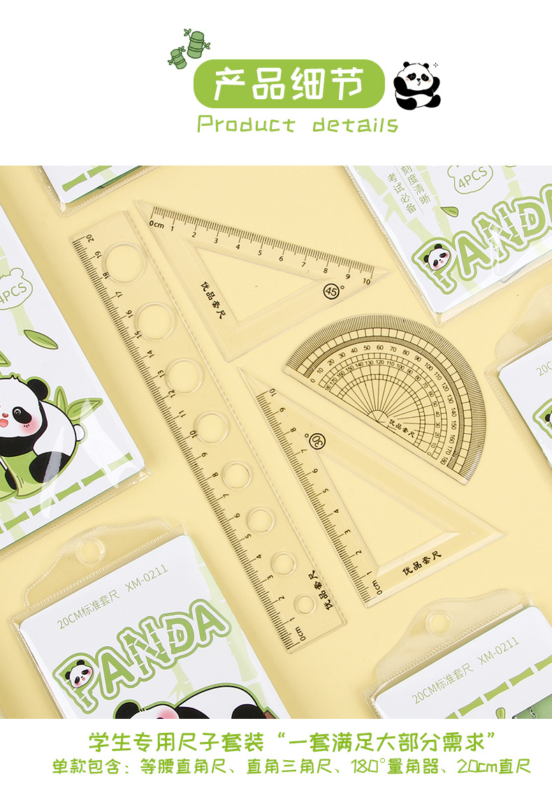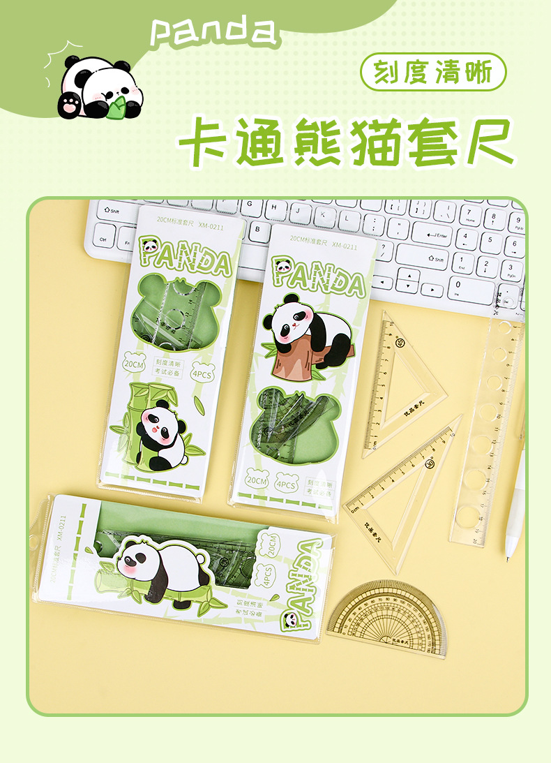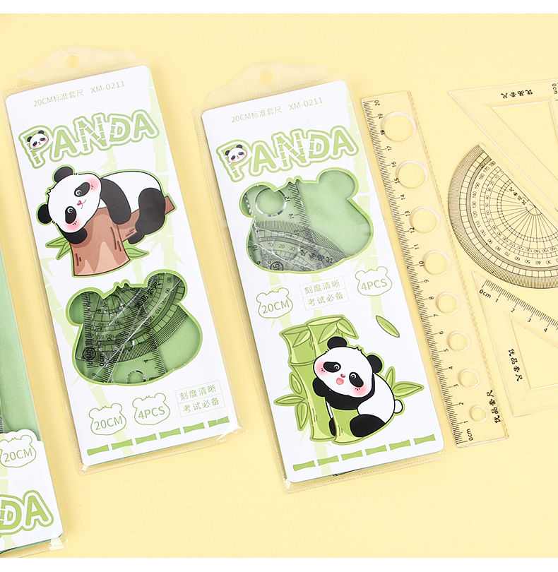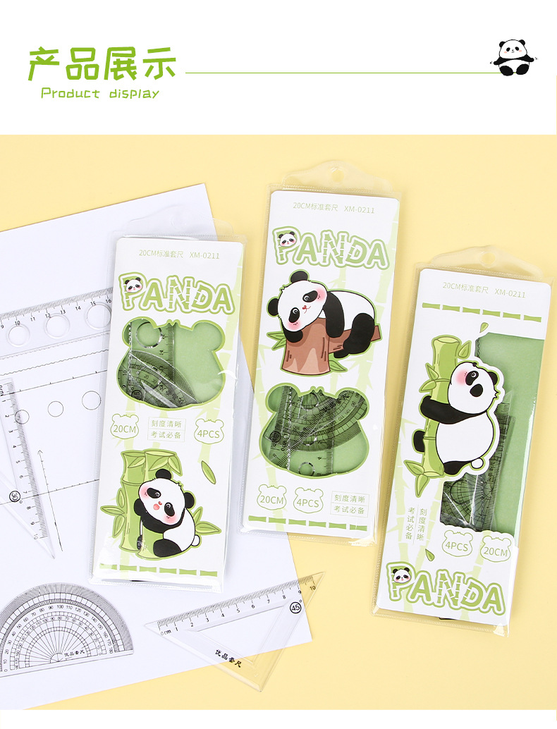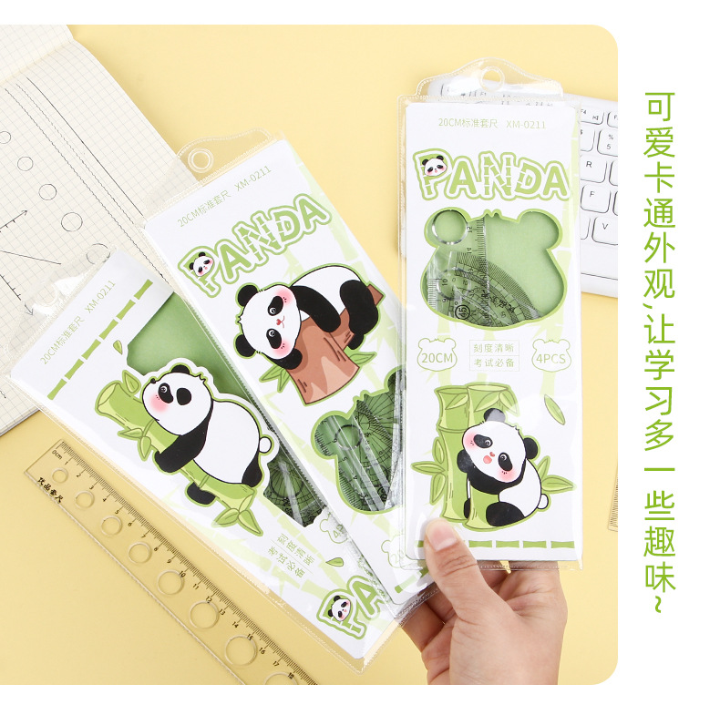 창조적 인 만화 팬더 통치자 세트 초등학교 학생 20cm 통치자 귀여운 학교 용품 4 조각 세트 통치자 문구 도매