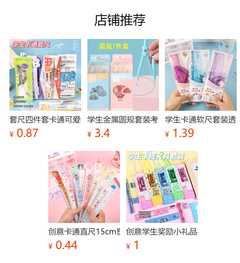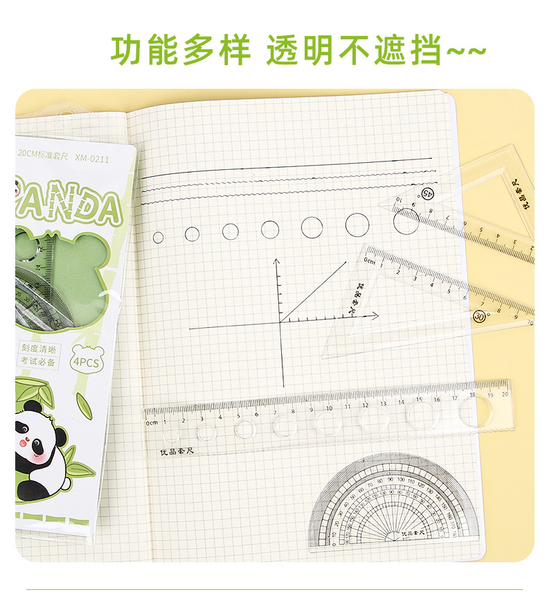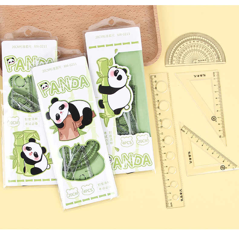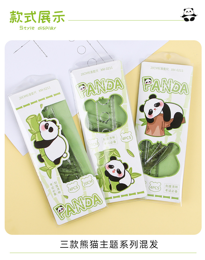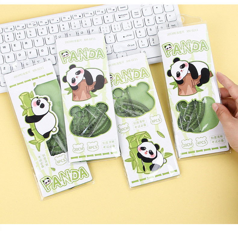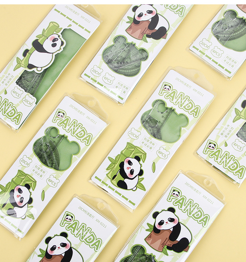 창조적 인 만화 팬더 통치자 세트 초등학교 학생 20cm 통치자 귀여운 학교 용품 4 조각 세트 통치자 문구 도매스토어 가기