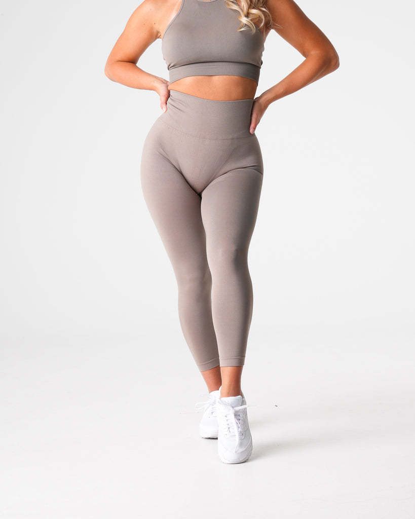 국경 간 단단한 엉덩이 주름이없는 대마 컬러 양이온 피트니스 바지 요가 바지 원활한 발목 길이 바지 전용스토어 가기