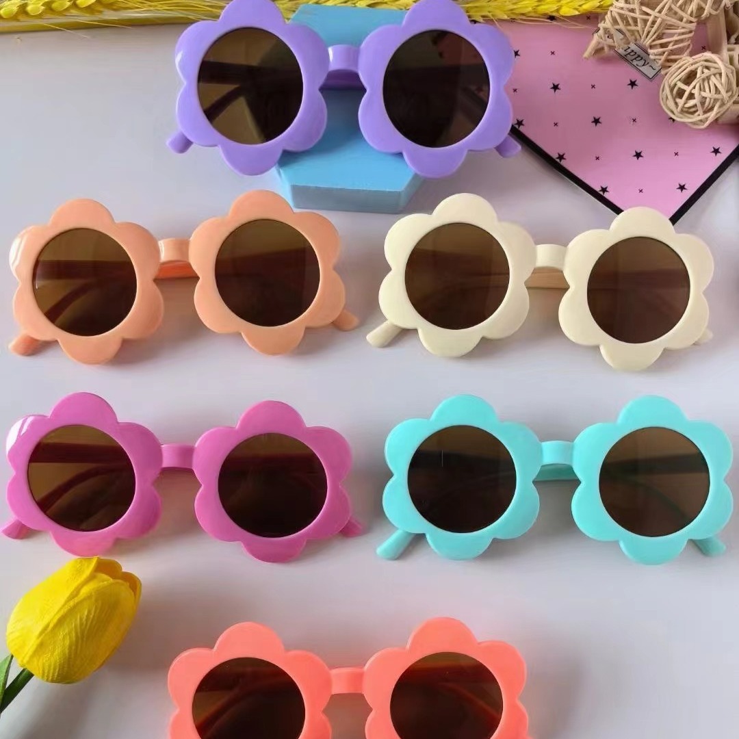 2024 새로운 어린이 선글라스 귀여운 꽃 원형 프레임 어린이 안경 태양 보호 자외선 보호 아기 선글라스 공장