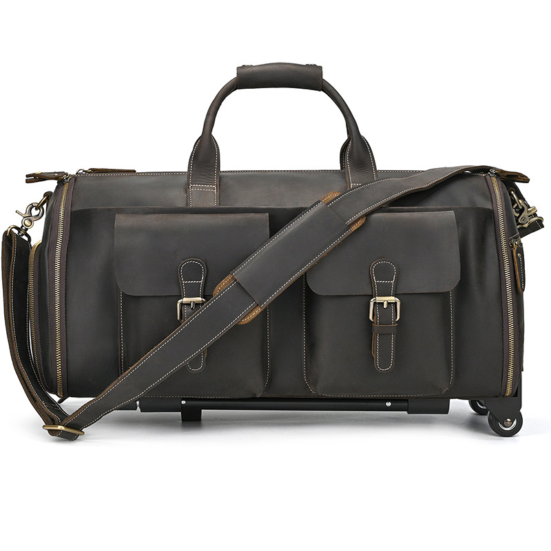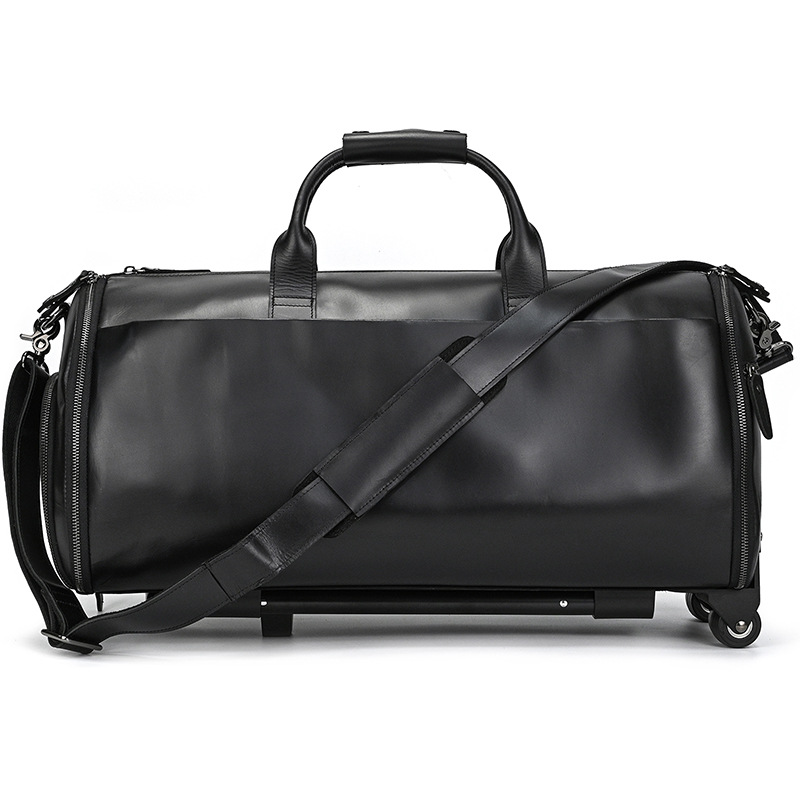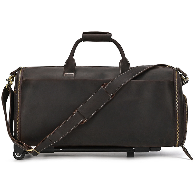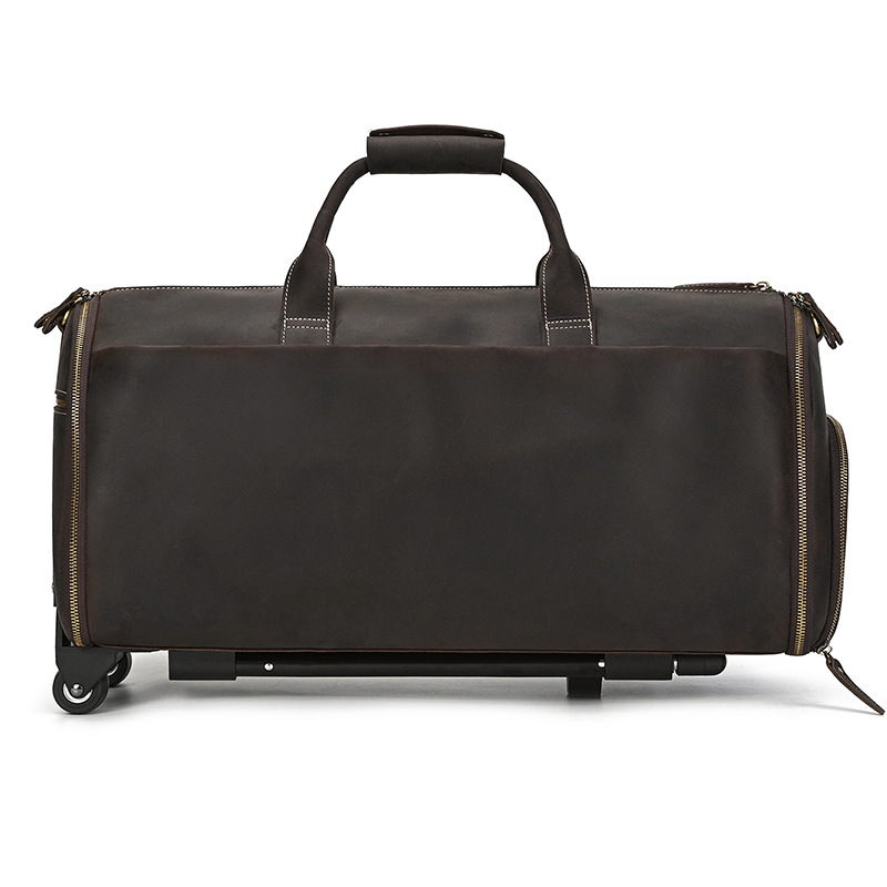 미친 말 가죽 트롤리 가방 22 인치 세트 가방 진짜 가죽 신발 Cowhide 휴대용 보관 남성용 가방