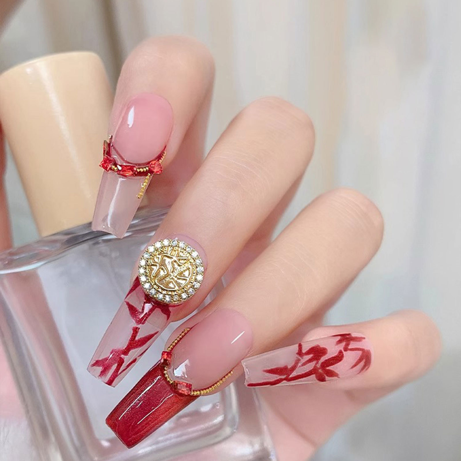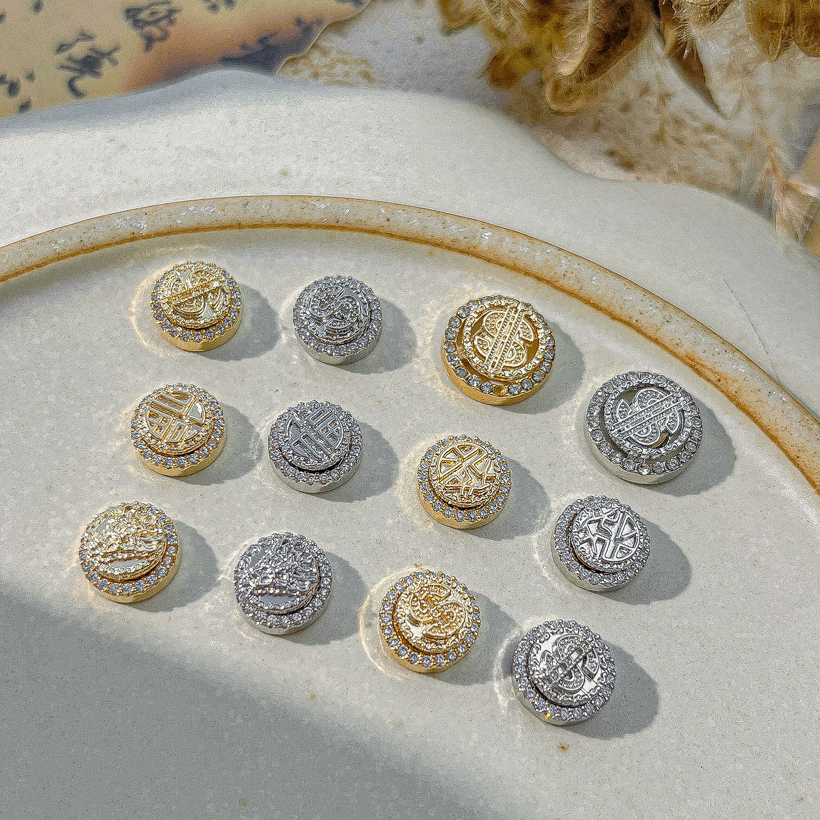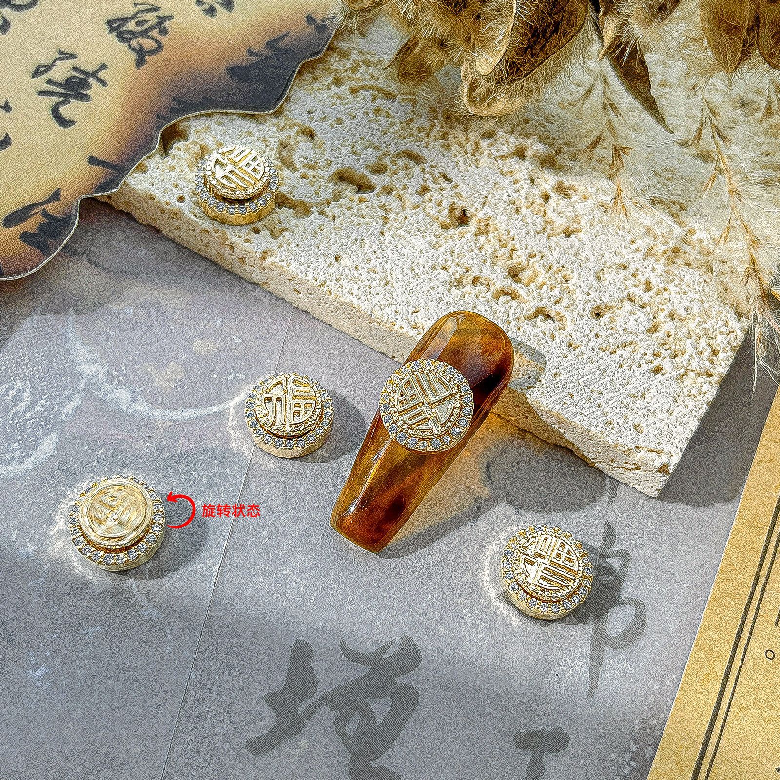 플래시 지르콘 행운의 구슬 네일 쥬얼리 다이아몬드 합금 행운의 단어 헤어 단어 드래곤 년 네일 장식 도매스토어 가기
