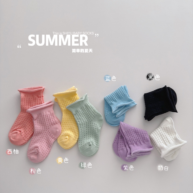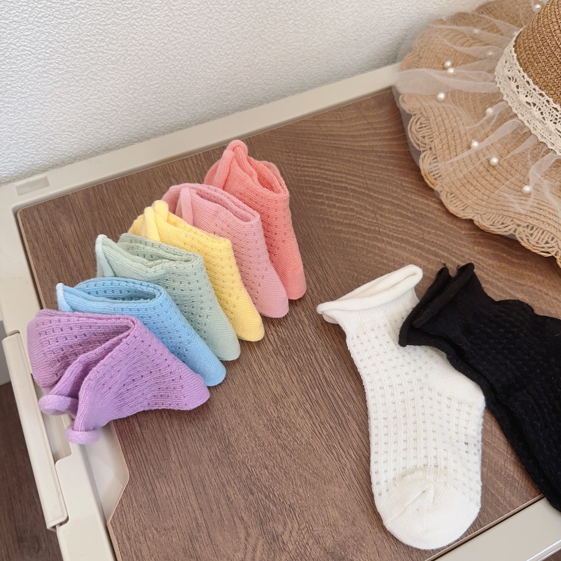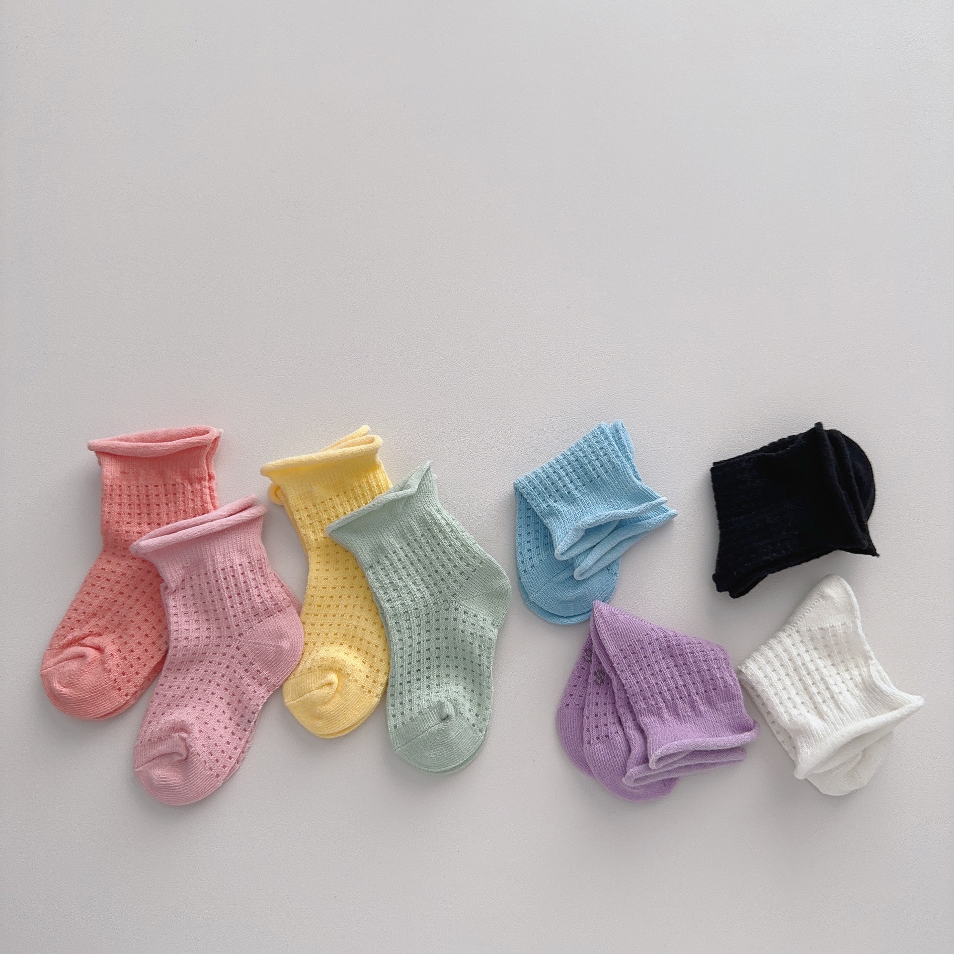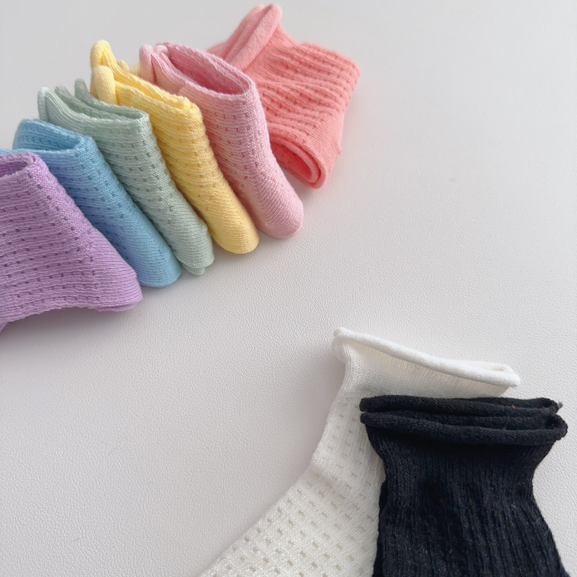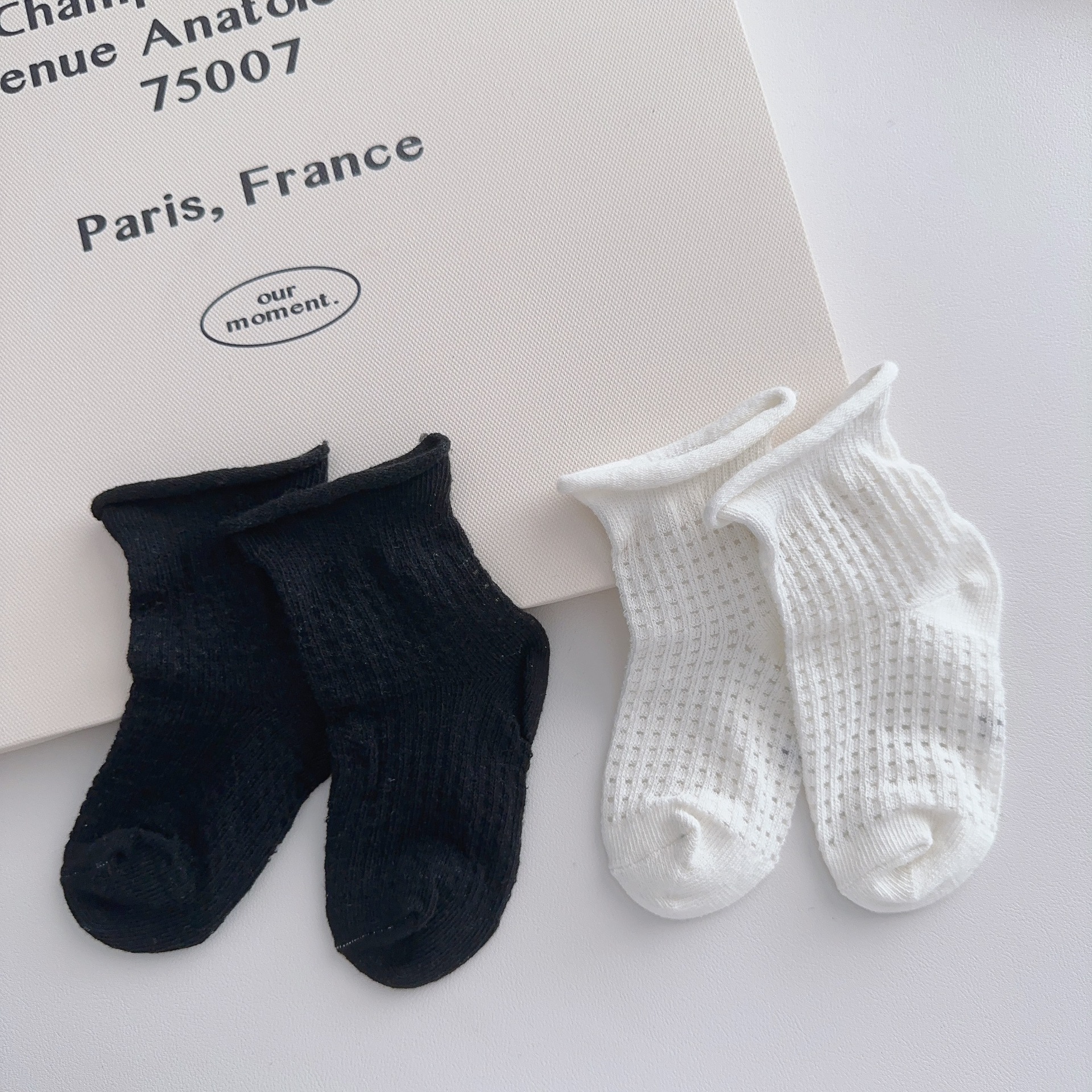 여름 어린이 메쉬 짧은 양말 솔리드 컬러 컬 올 매치 통기성 미드 튜브 양말 여름 흑백 유치원 아기 양말