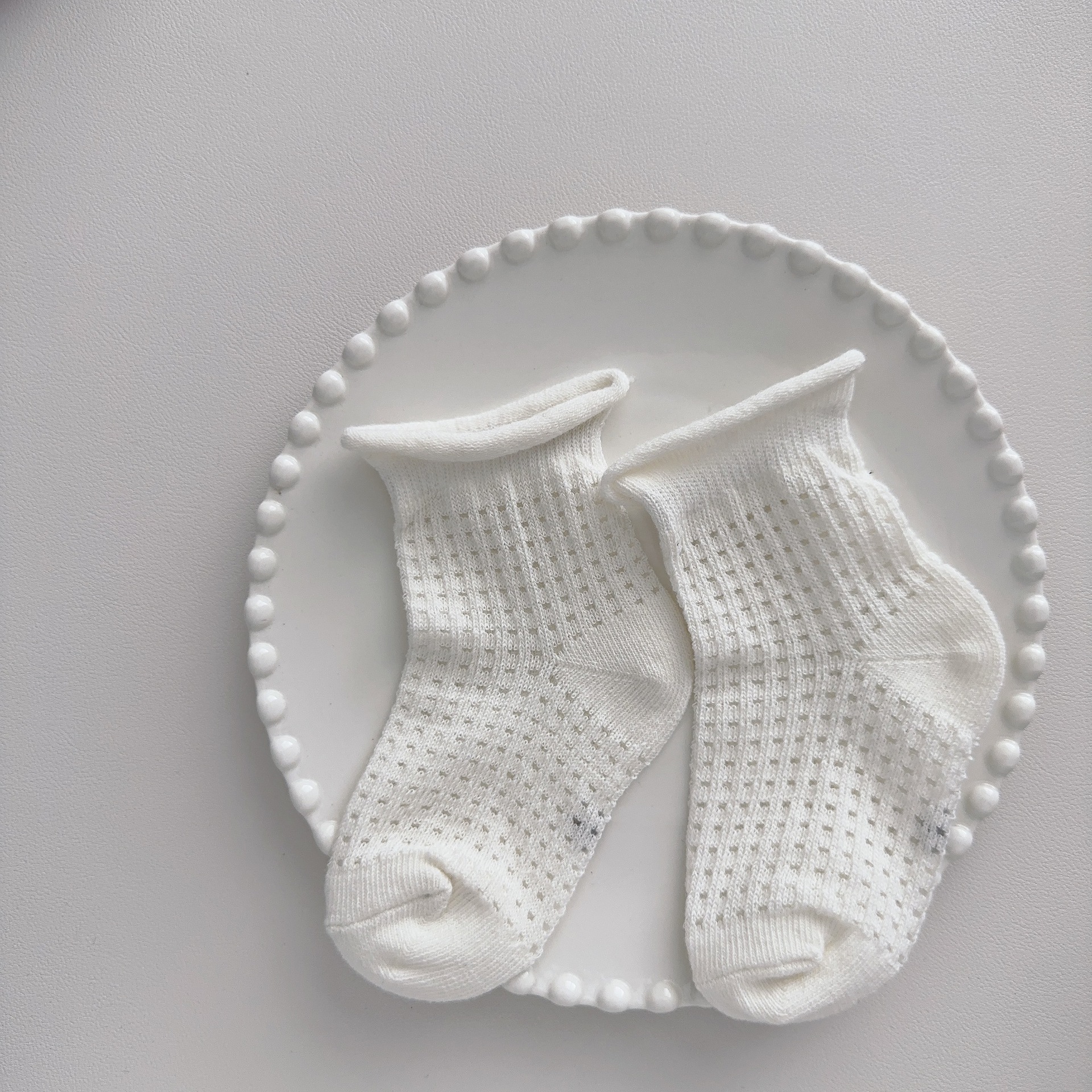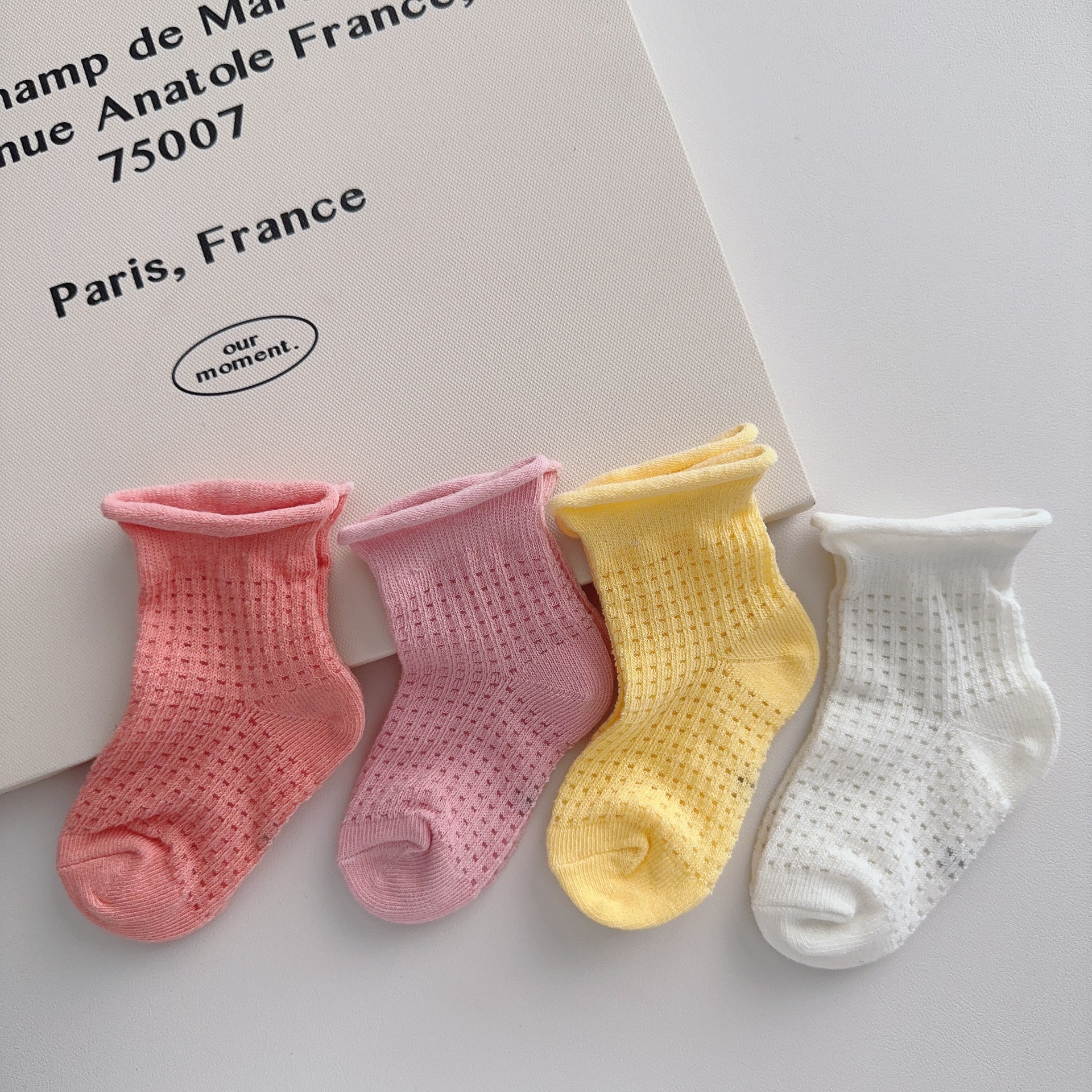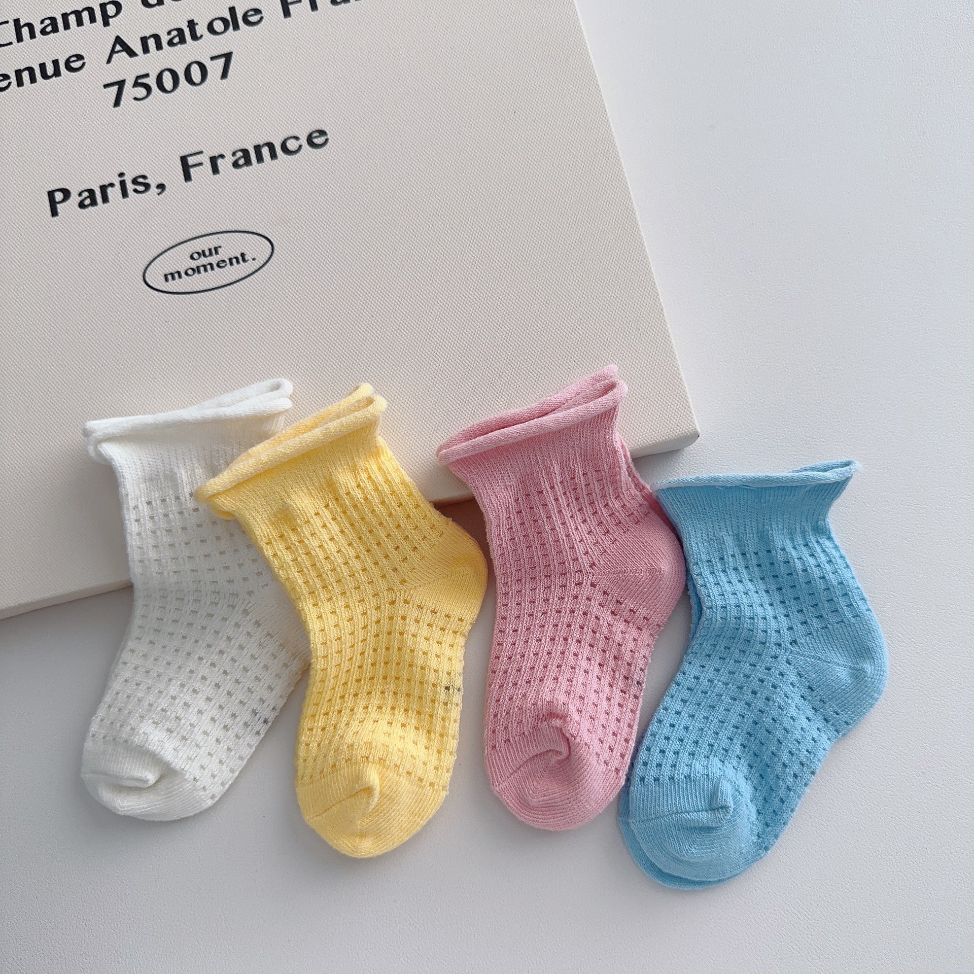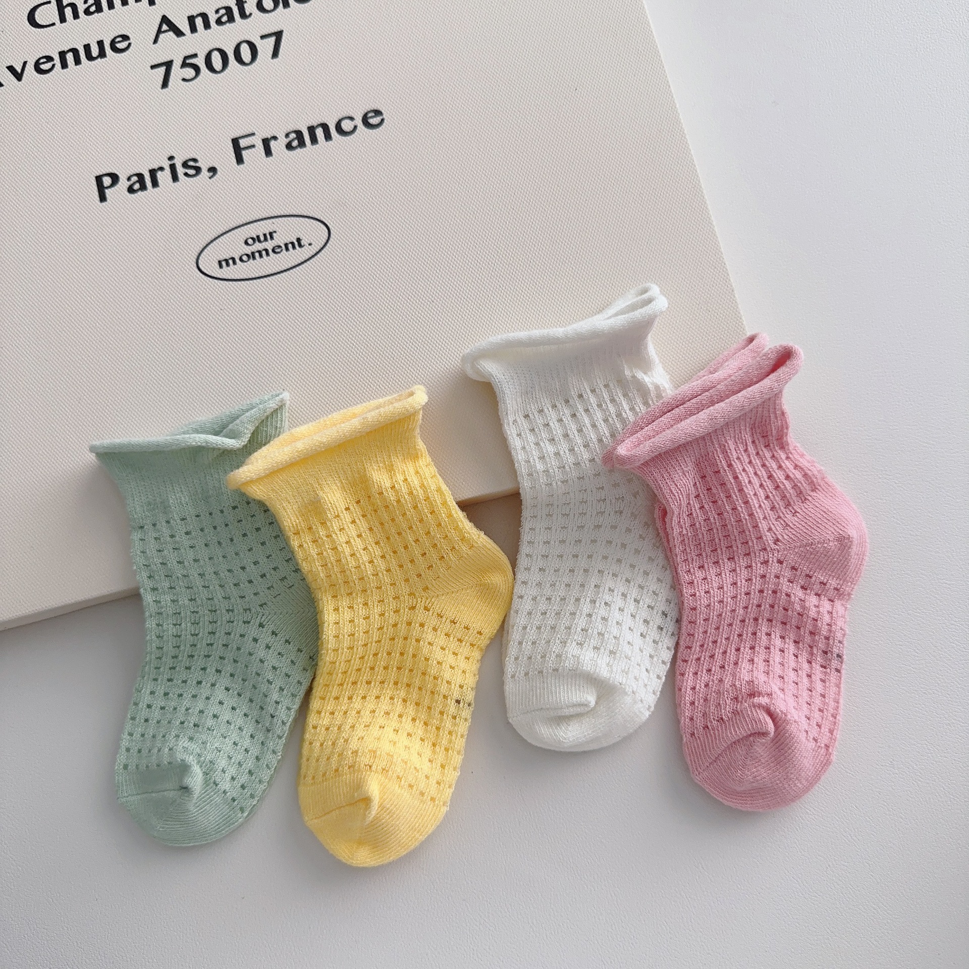 여름 어린이 메쉬 짧은 양말 솔리드 컬러 컬 올 매치 통기성 미드 튜브 양말 여름 흑백 유치원 아기 양말
