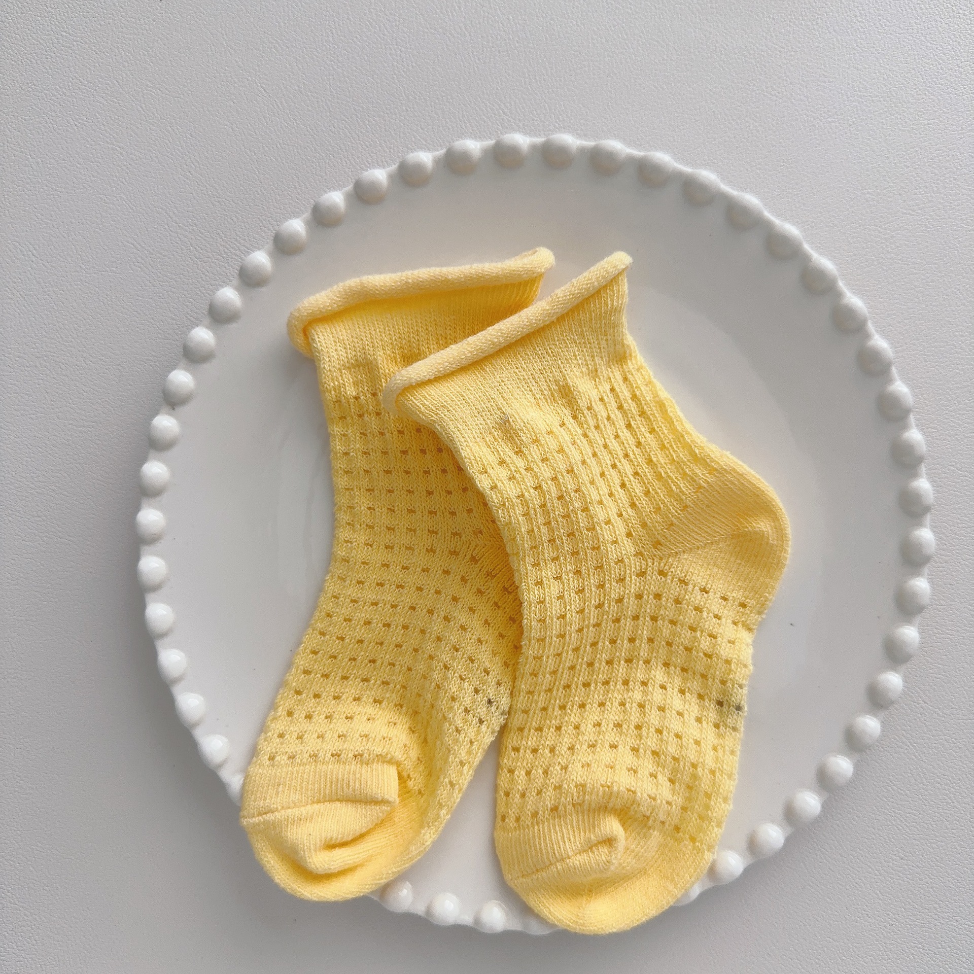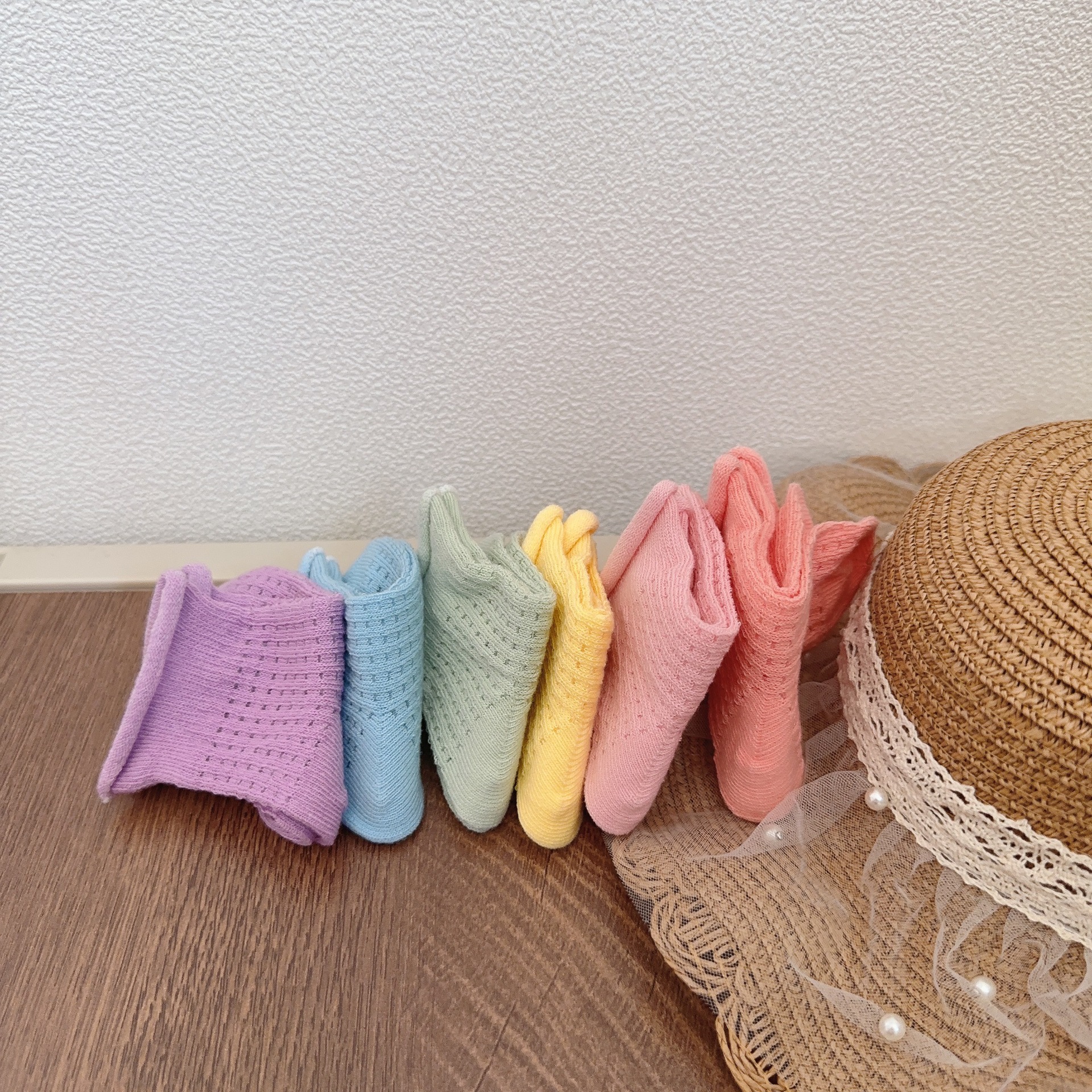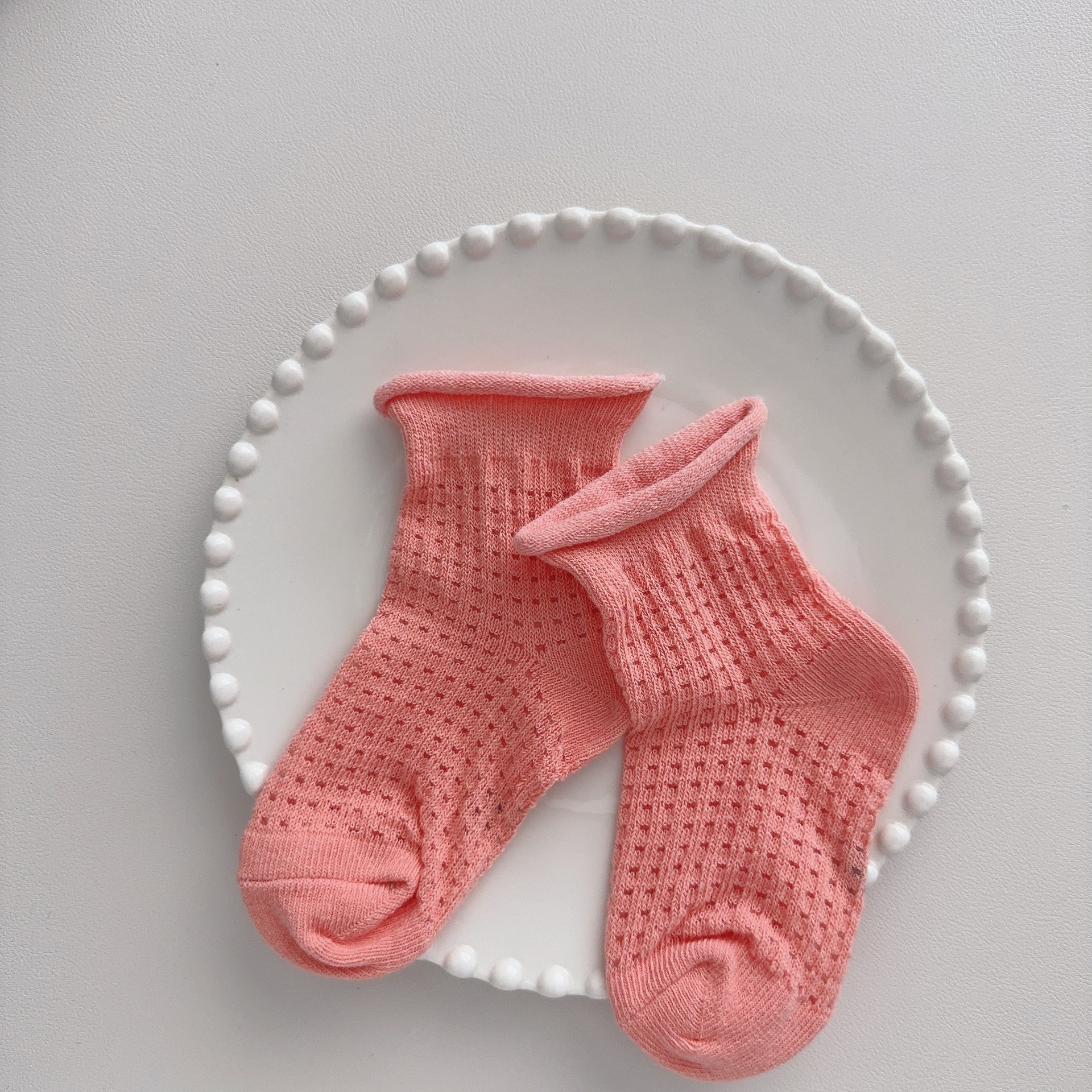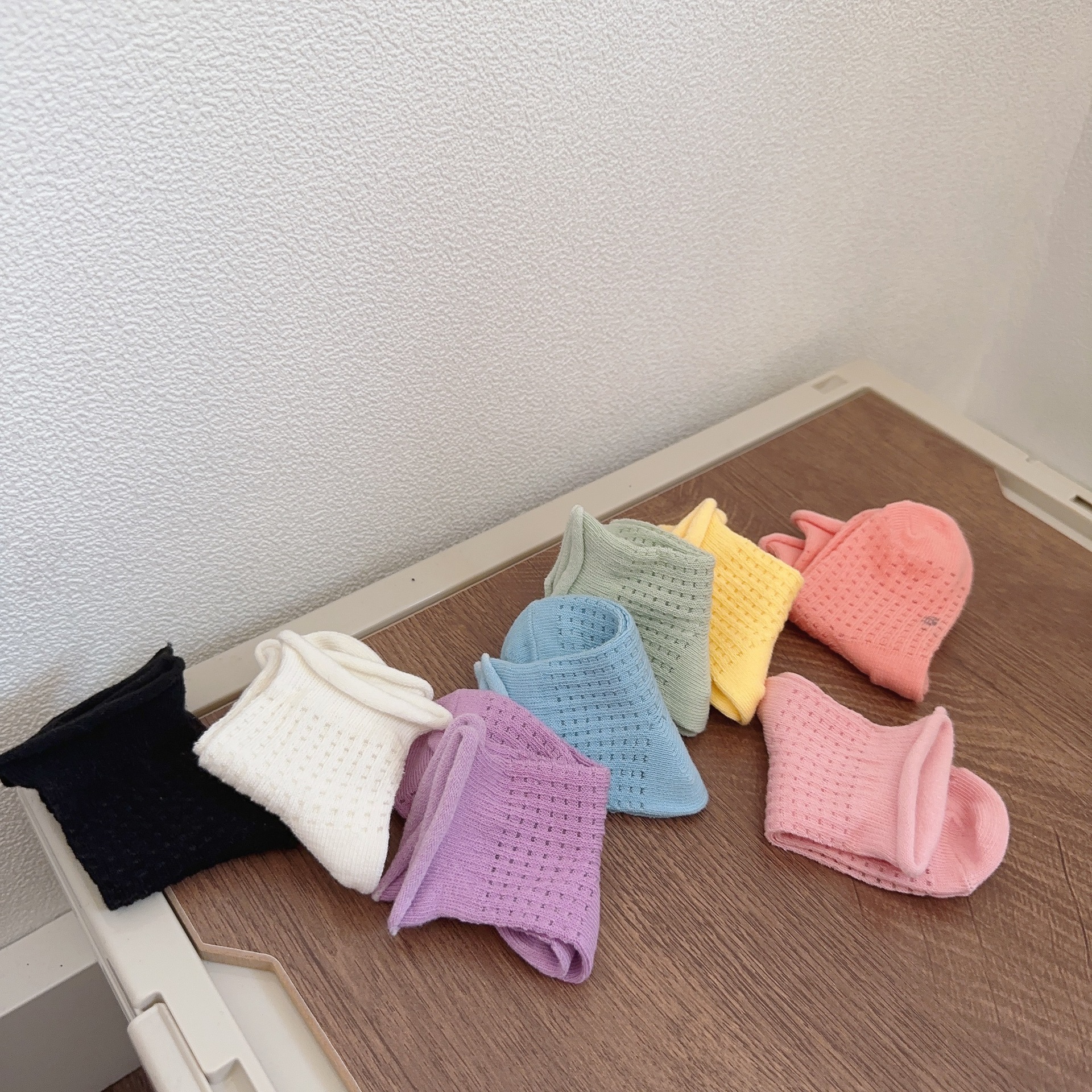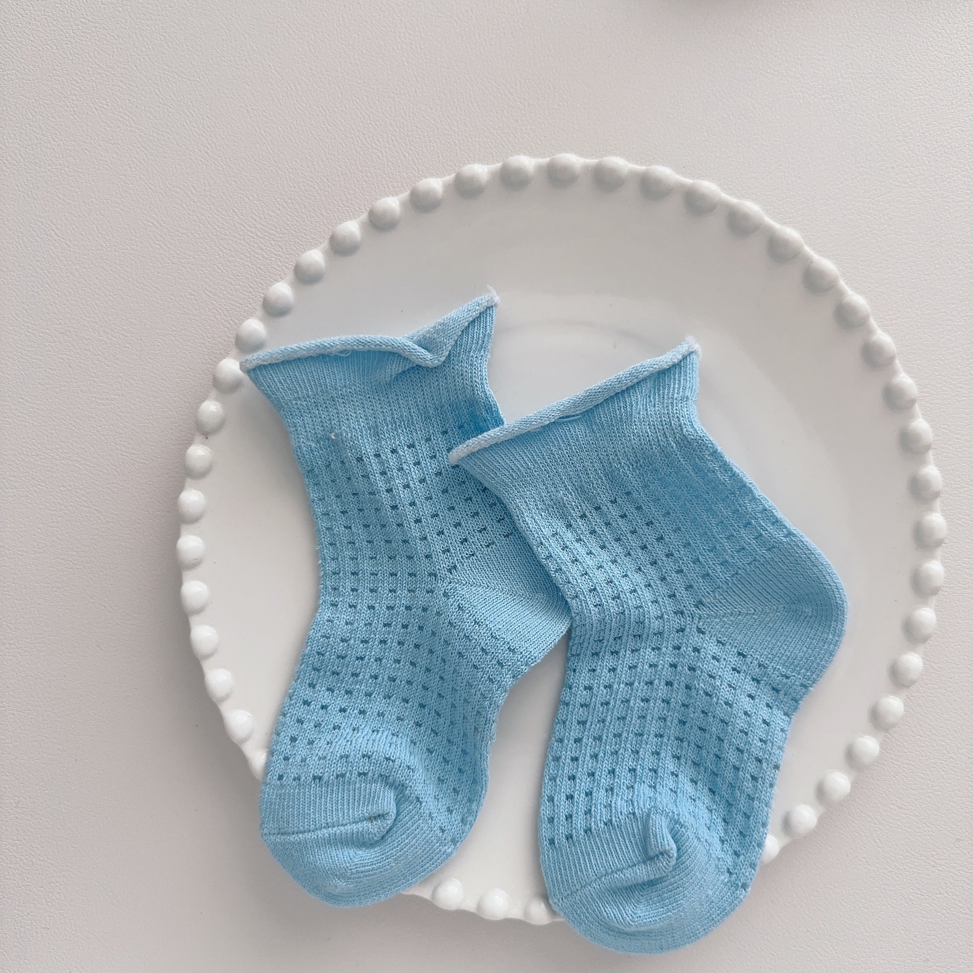 여름 어린이 메쉬 짧은 양말 솔리드 컬러 컬 올 매치 통기성 미드 튜브 양말 여름 흑백 유치원 아기 양말