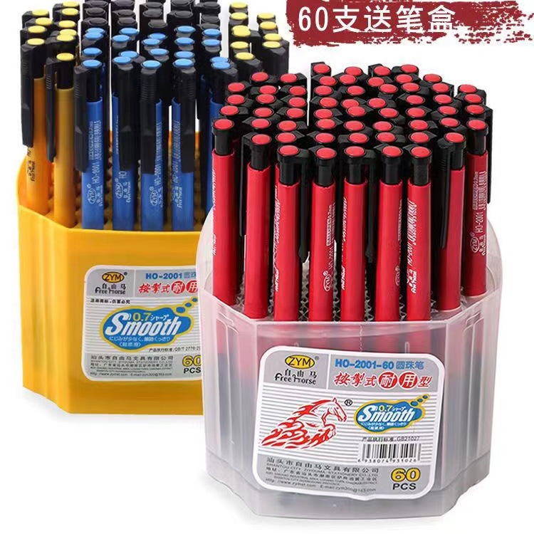 무료 말 프레스 블루 볼펜은 잉크 3 색 오일 프레스 볼펜 스프링 오일 펜의 세대 누출되지 않습니다.스토어 가기