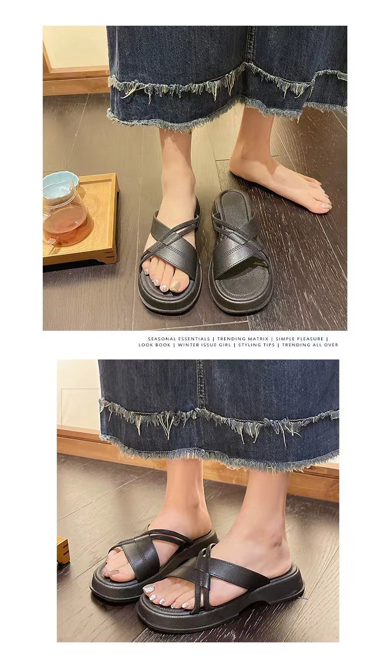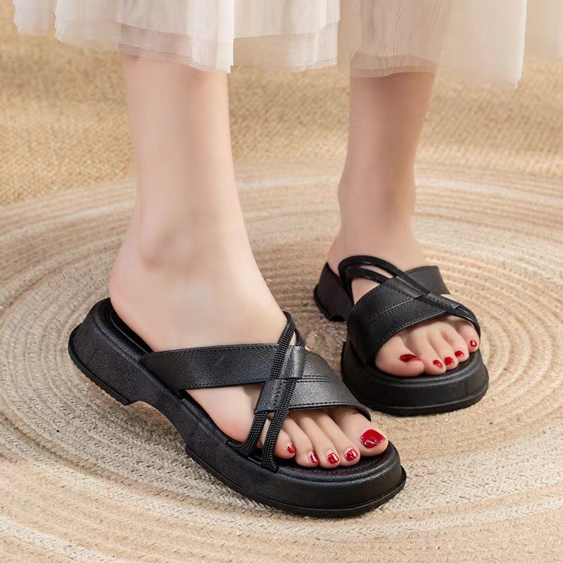 국경 간 인기 2024 새로운 슬리퍼 여성 여름 두꺼운 바닥 미끄럼 방지 패션 올 매치 샌들 여성 대외 무역스토어 가기
