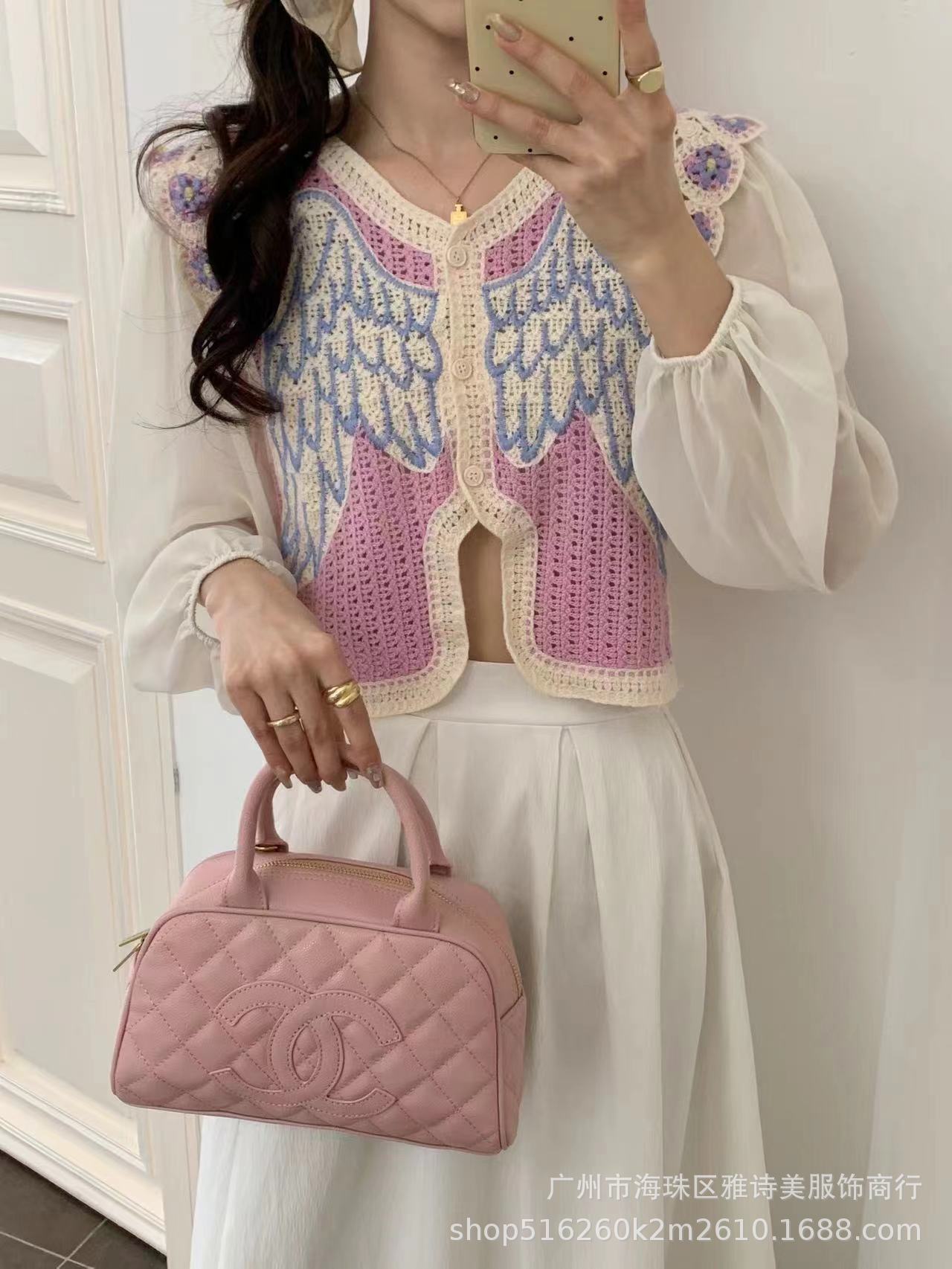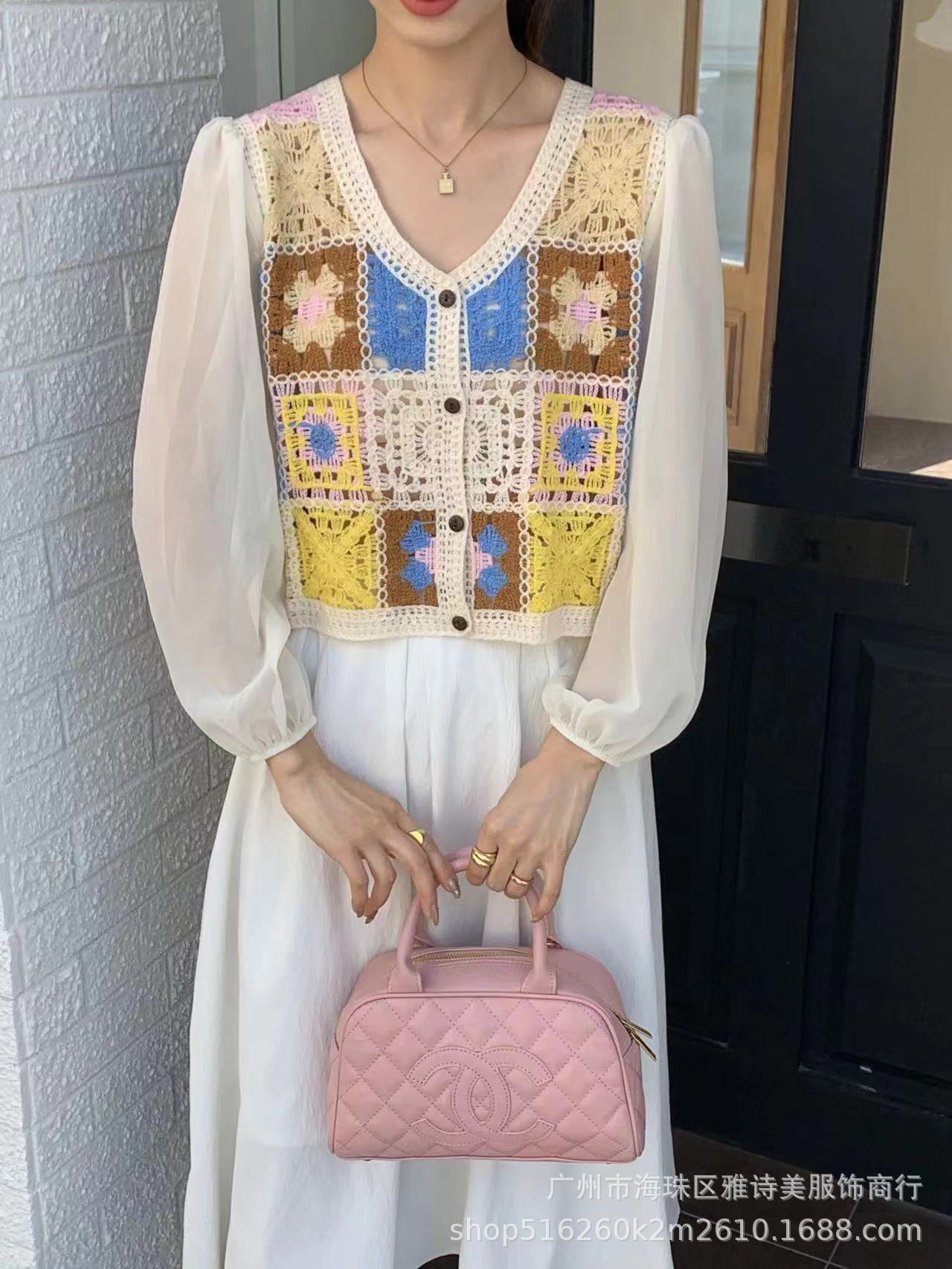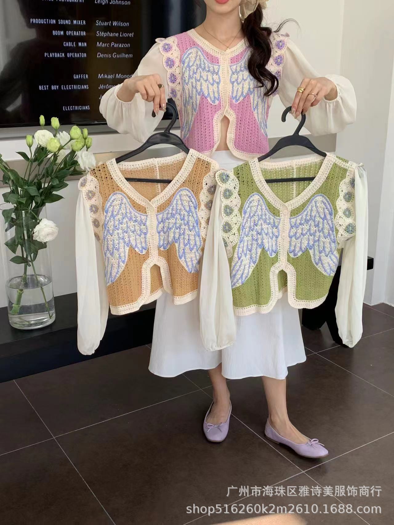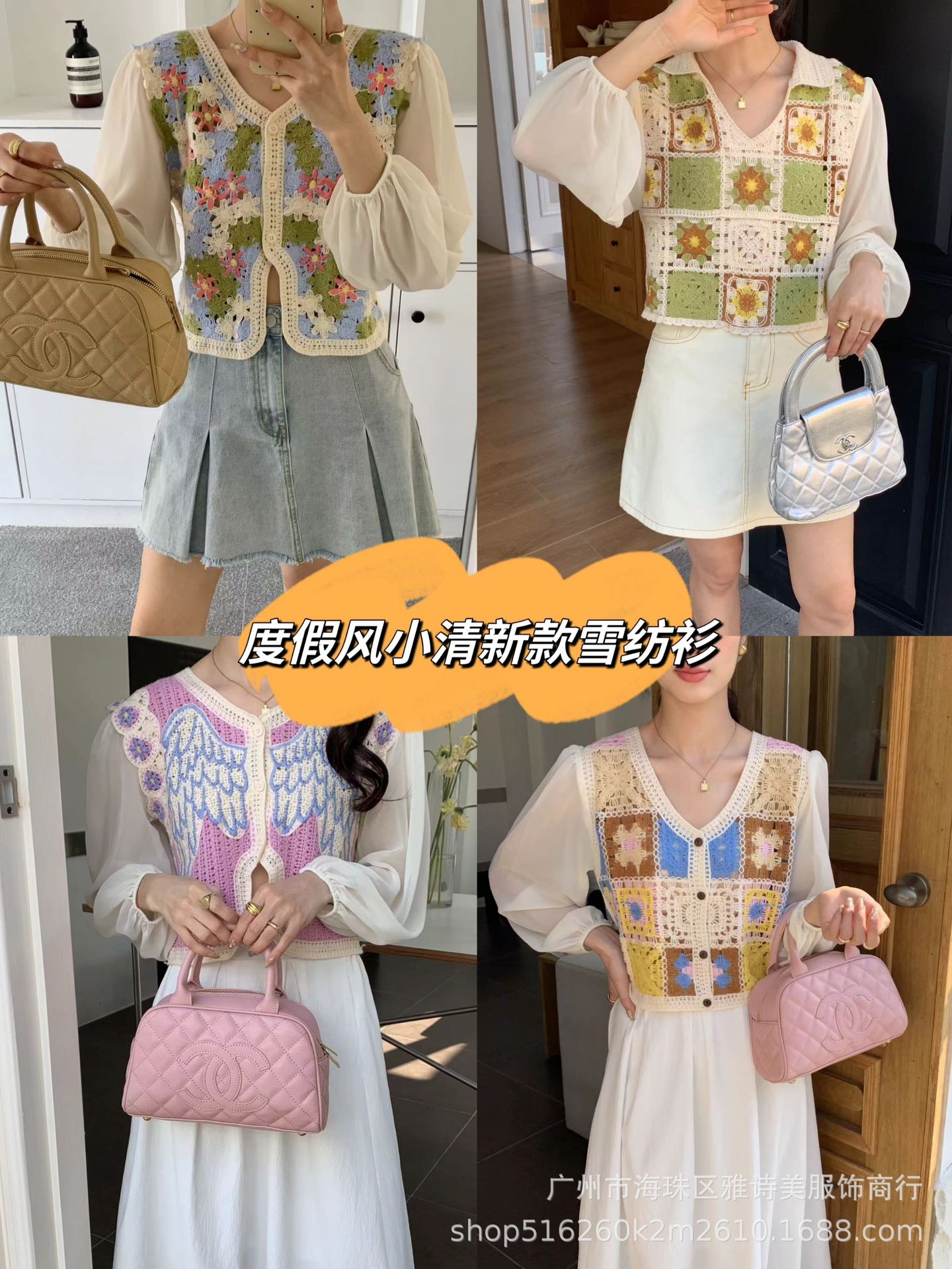 프랑스의 세련된 서양식 나이를 줄이는 쉬폰 셔츠 여성의 새로운 V 넥 크로 셰 뜨개질 속이 빈 퍼프 소매 달콤한 긴 소매 최고 패션스토어 가기