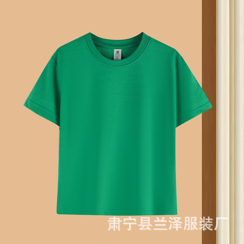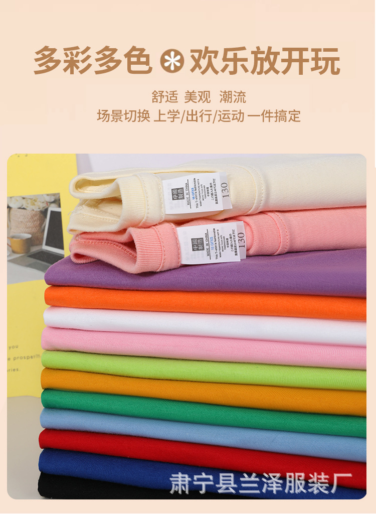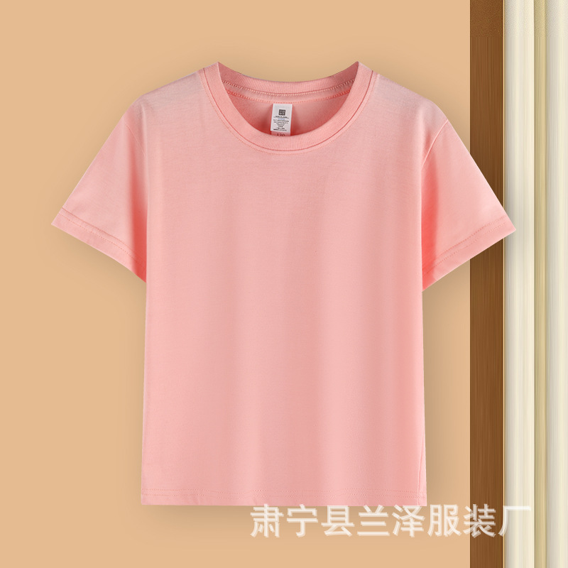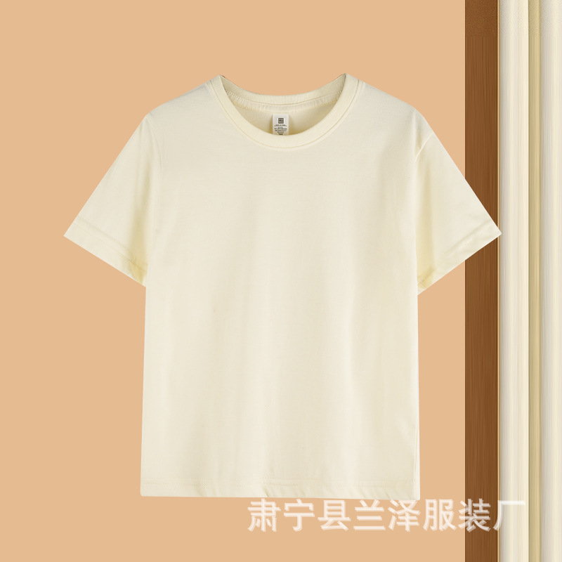 여름 빗질면 어린이 둥근 목 짧은 소매 도매 단색 얇은 기본 셔츠 클래스 셔츠 티셔츠 맞춤형 DIY스토어 가기