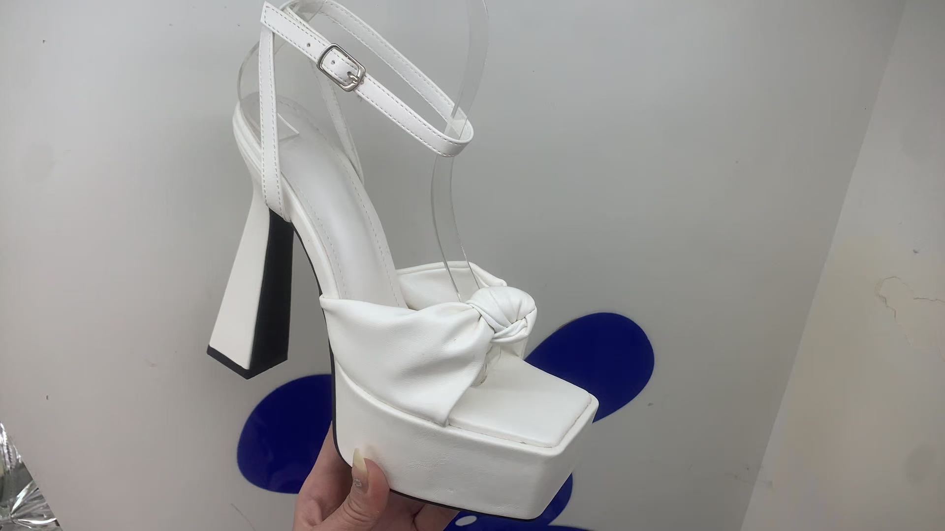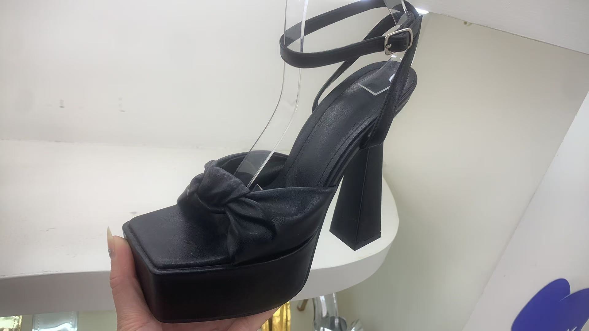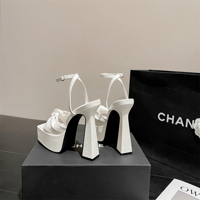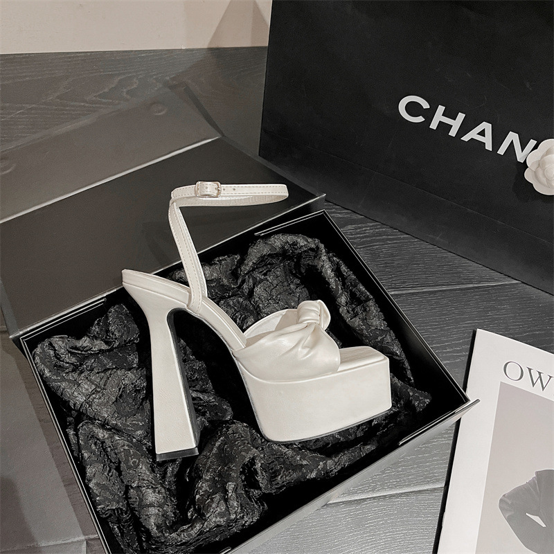 하이힐 플랫폼 활 오픈 발가락 여성 신발 2024 봄과 여름 뉴 스퀘어 발가락 한 줄 청키 힐 샌들스토어 가기