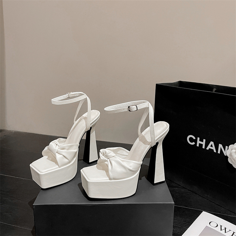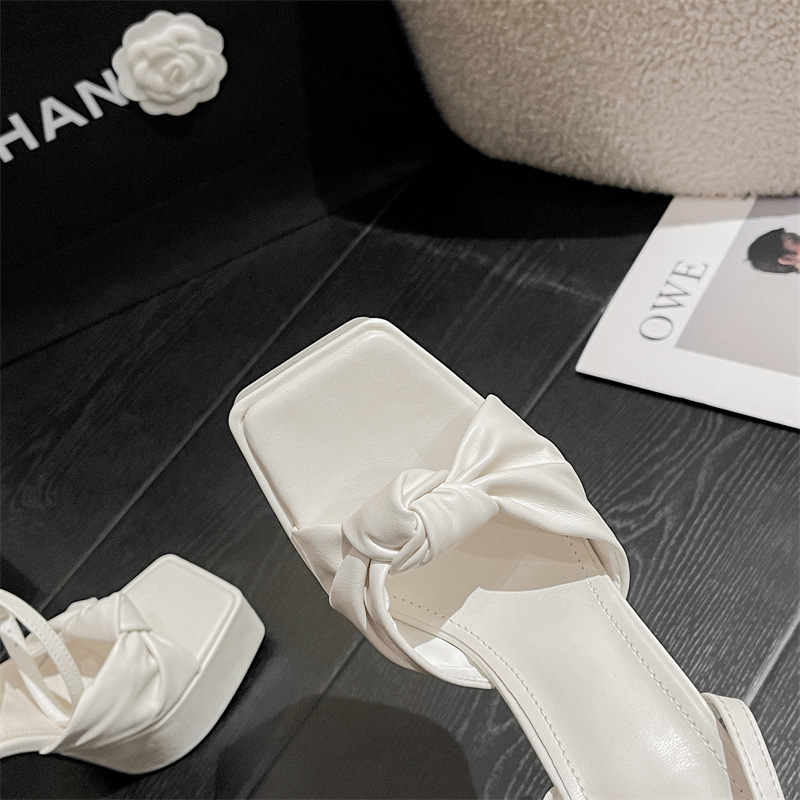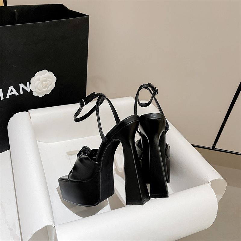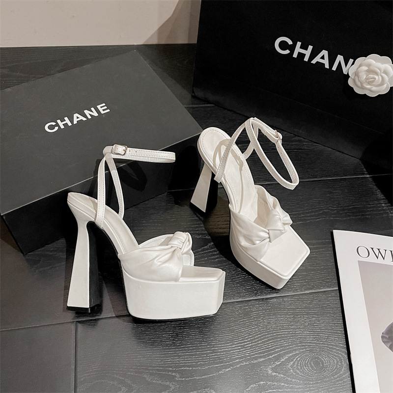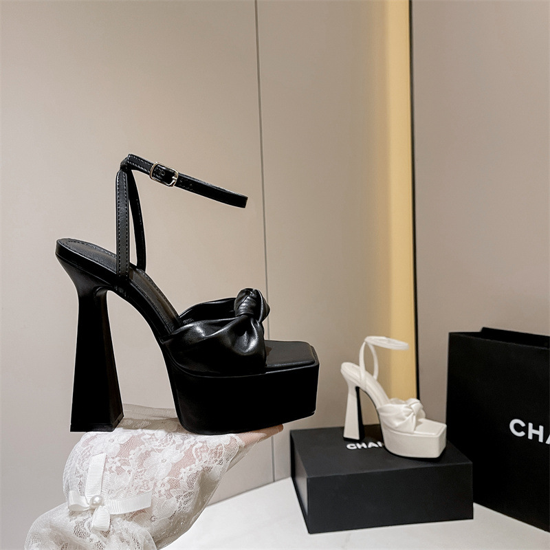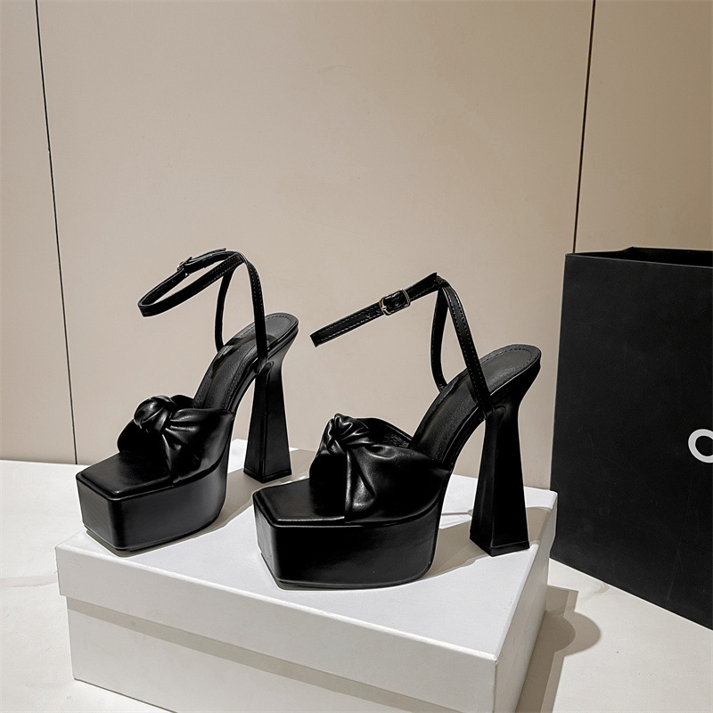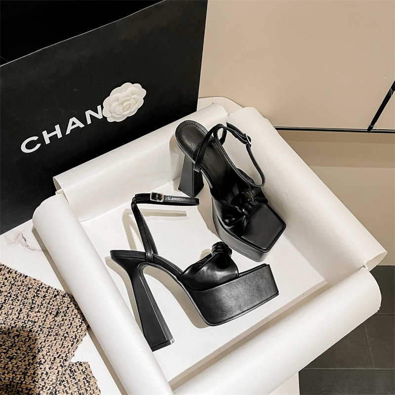 하이힐 플랫폼 활 오픈 발가락 여성 신발 2024 봄과 여름 뉴 스퀘어 발가락 한 줄 청키 힐 샌들