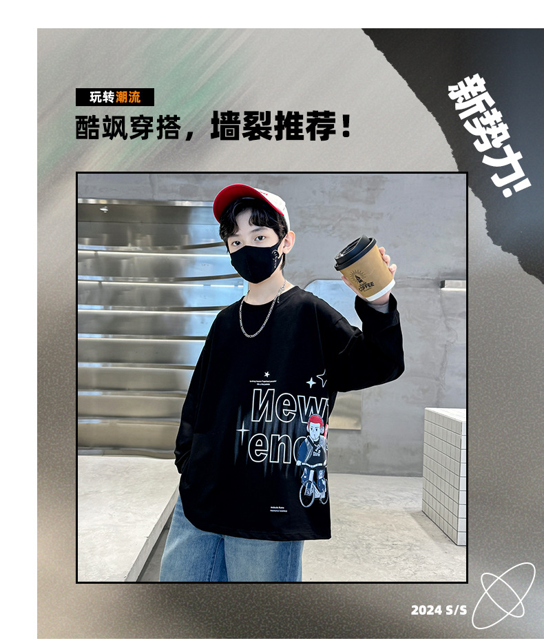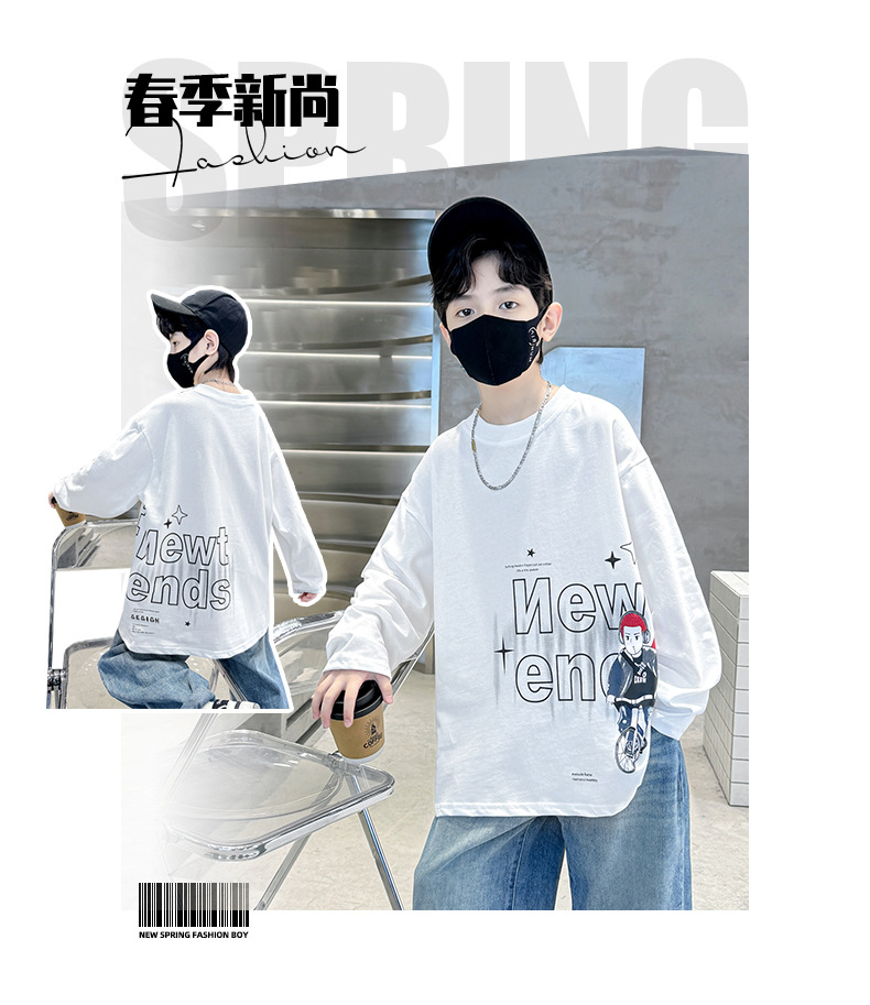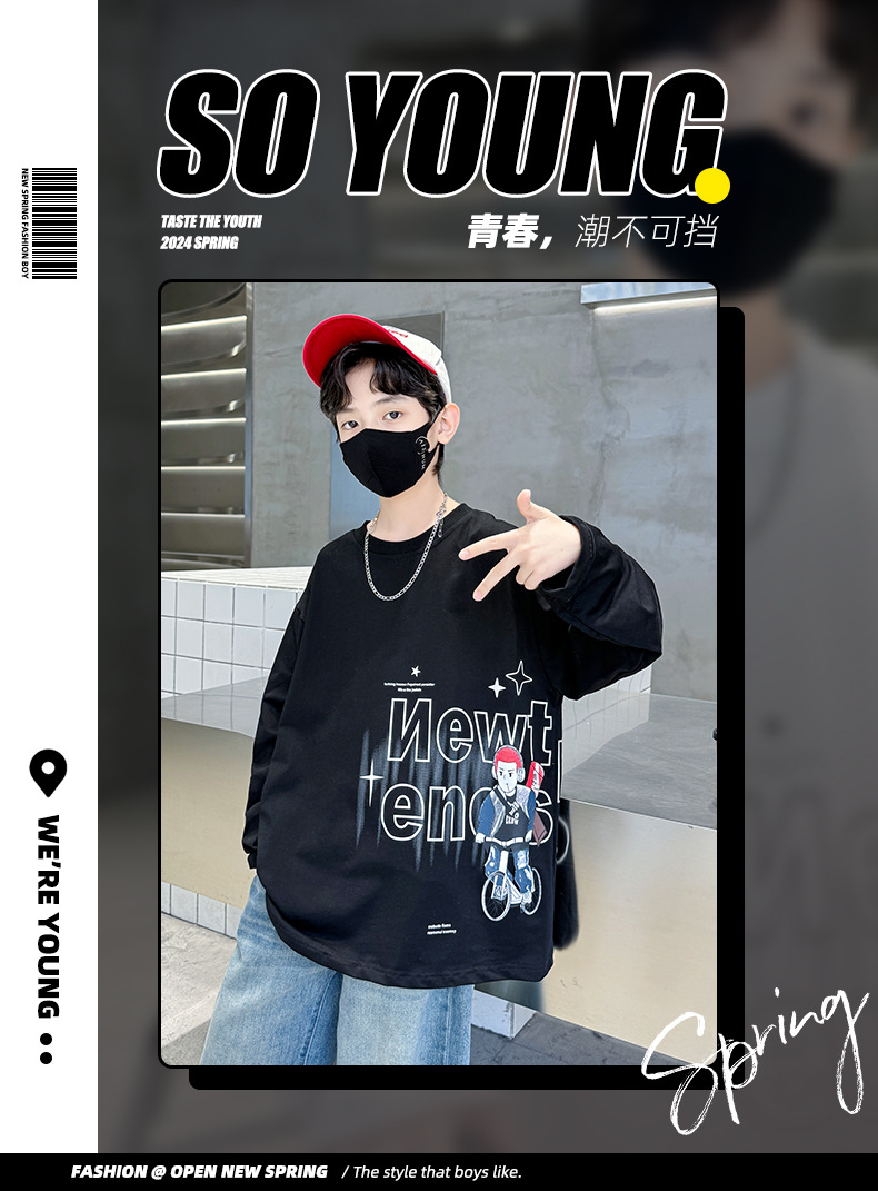 소년의 봄 스웨터 새로운 2024 중형 및 대형 어린이 소년 캐주얼 느슨한 바닥 셔츠 탑 어린이 봄 아동복스토어 가기