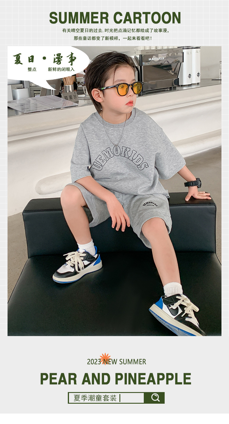 아동복 남아 여름 반팔 세트 면 100% 2026년 신상 중대형 아동 여름옷 스포츠 캐주얼 투피스 세트 트렌디스토어 가기