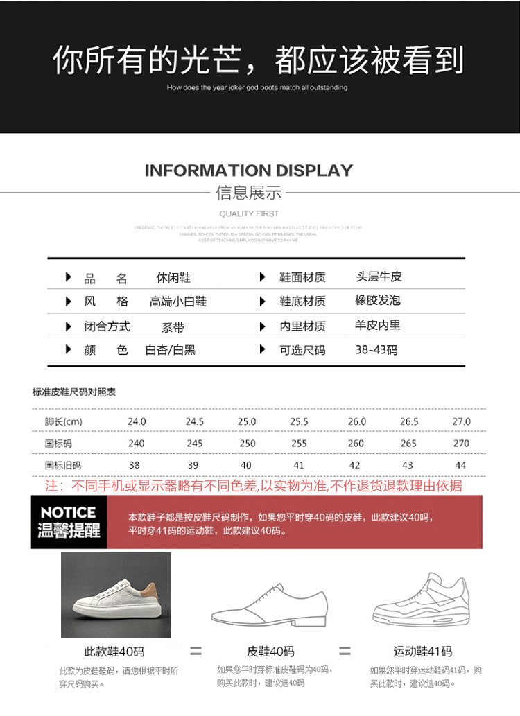 7:猪皮或羊皮内里和鞋垫,汗脚褪色属正常现象,非质量问题,建议穿深色袜子