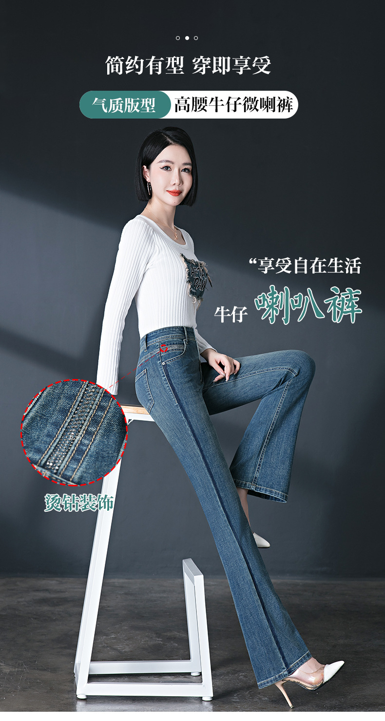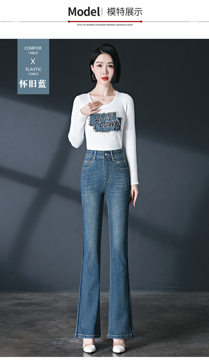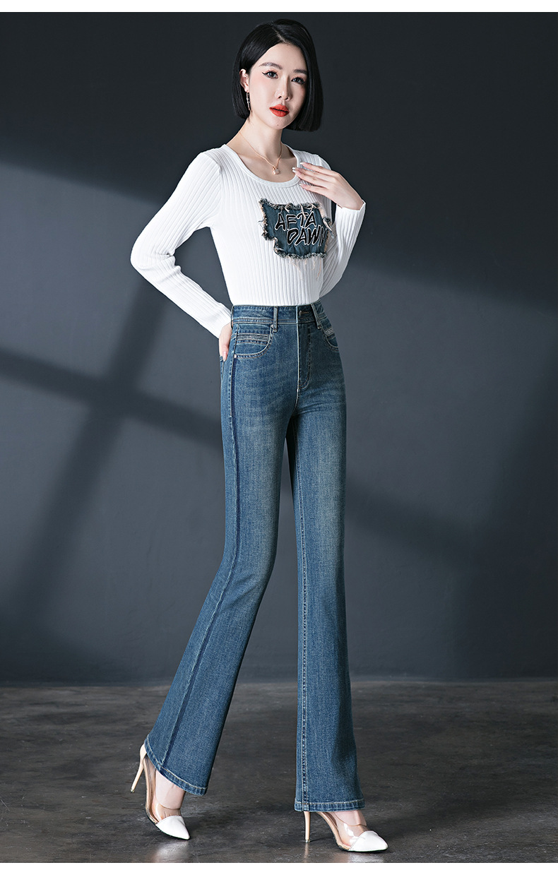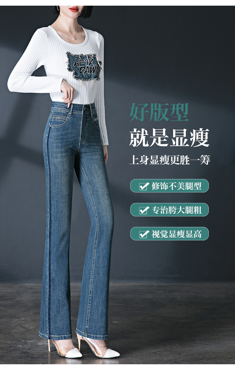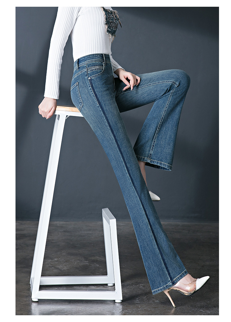레트로 스타일 여성용 마이크로 플레어 진, 인기 하이웨이스트 2026 봄/가을 신상 슬림핏 신축성 있는 롱 플레어 팬츠스토어 가기