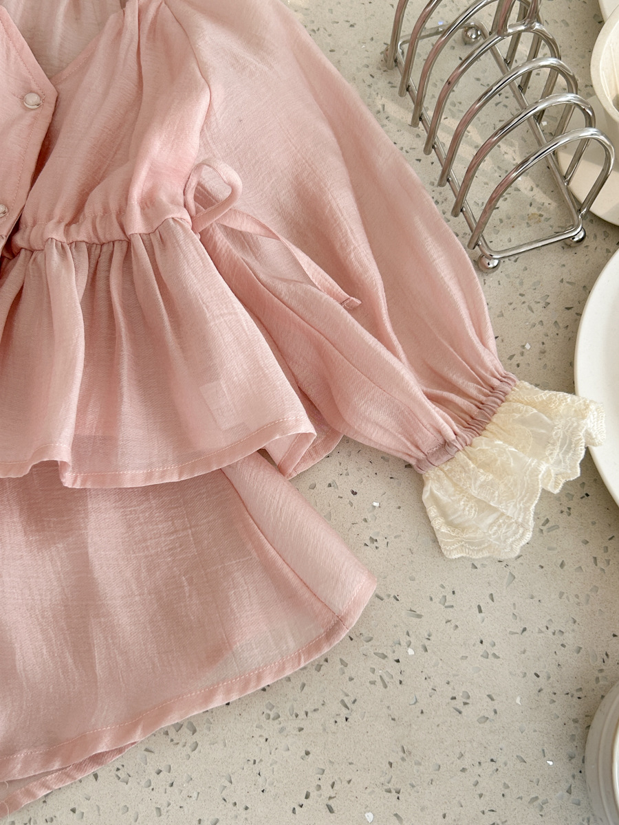 하이 엔드 사교계 기질 소녀 세트 여름 2024 하이 엔드 태양 보호 셔츠 티 브레이크 스커트 인기있는 두 조각