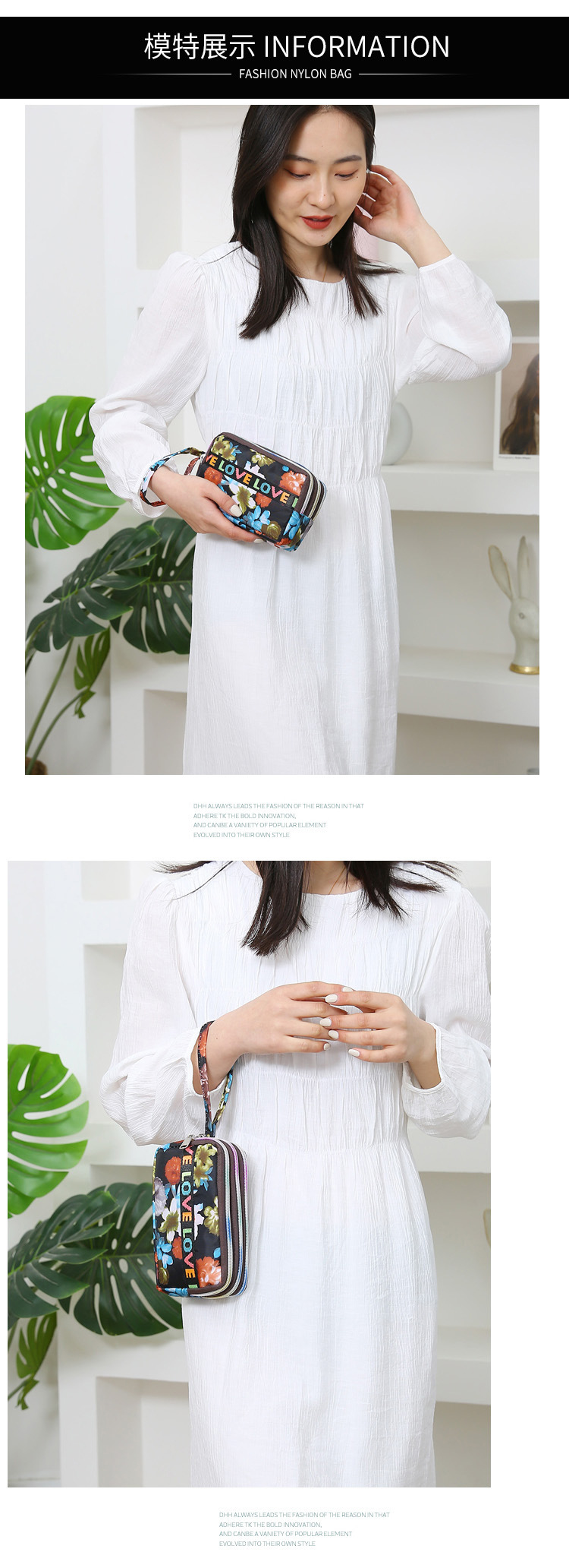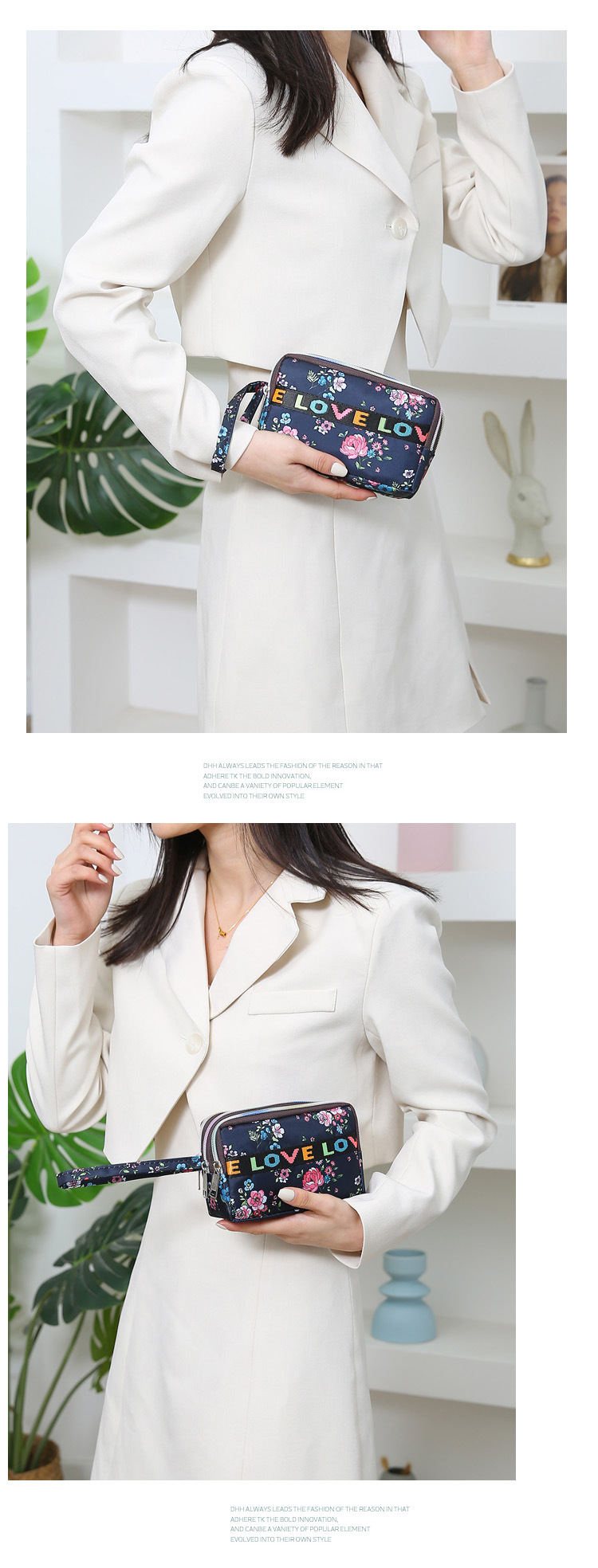 유행 인쇄 3 풀 클러치 백 2024 새로운 여성 핸드백 휴대 전화 가방 키 저장 가방 동전 지갑