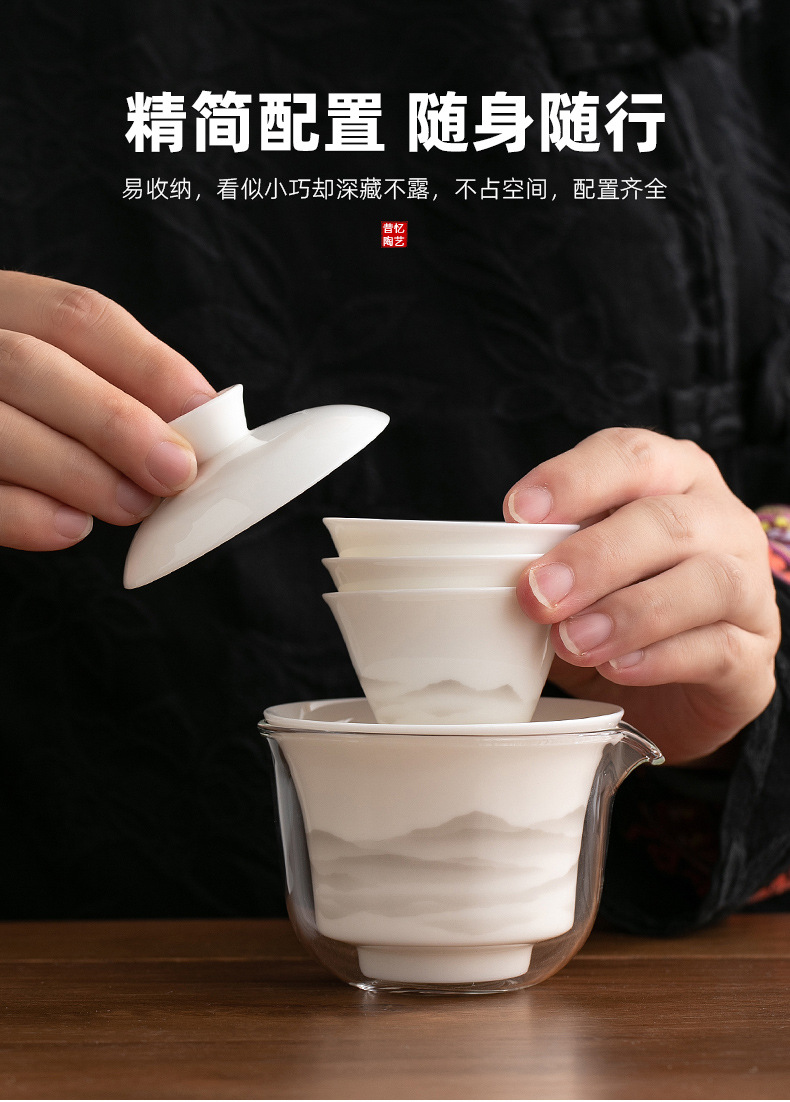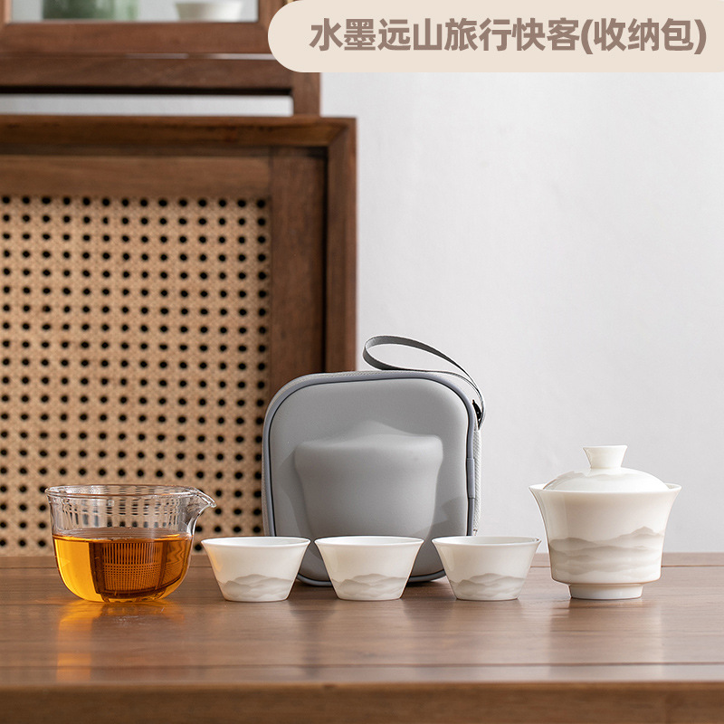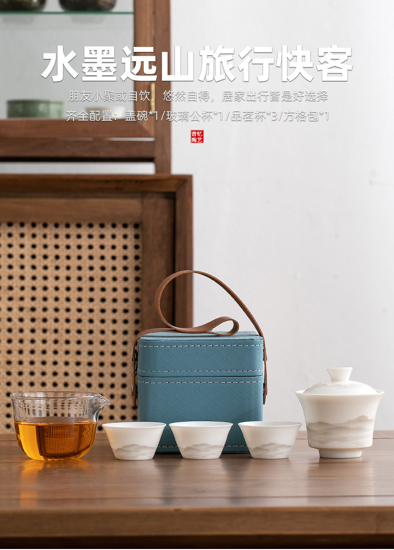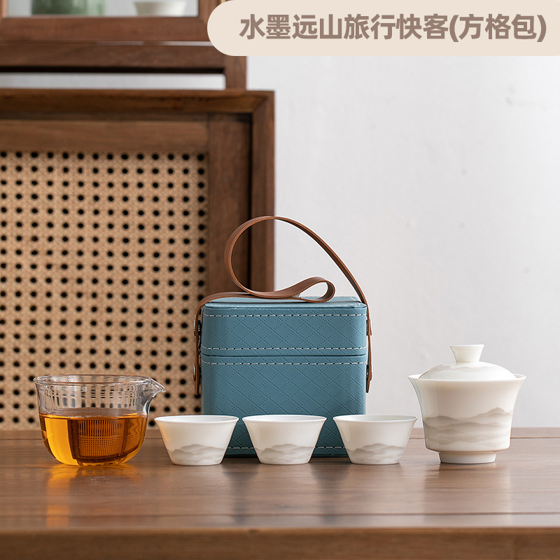 중국 휴대용 여행 차 세트 세트 익스프레스 컵 티 컵 저장 가방 캠핑 야외 여행 1 포트 3 컵스토어 가기